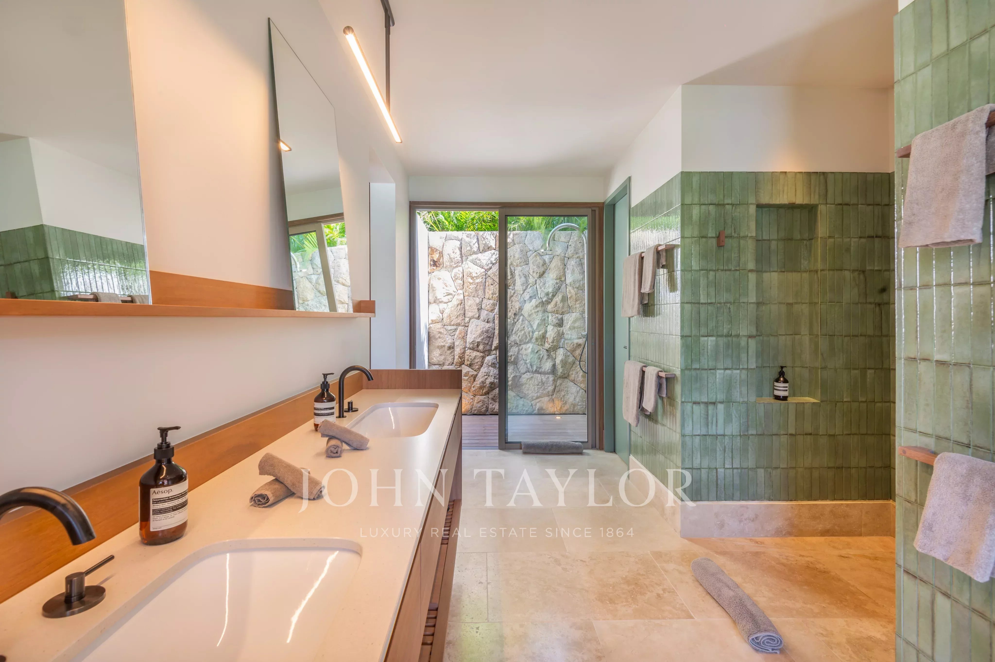 Access is via a beautiful landscaped garden, from which a magnificent view over the bay begins to emerge, as well as from all the rooms of the villa.