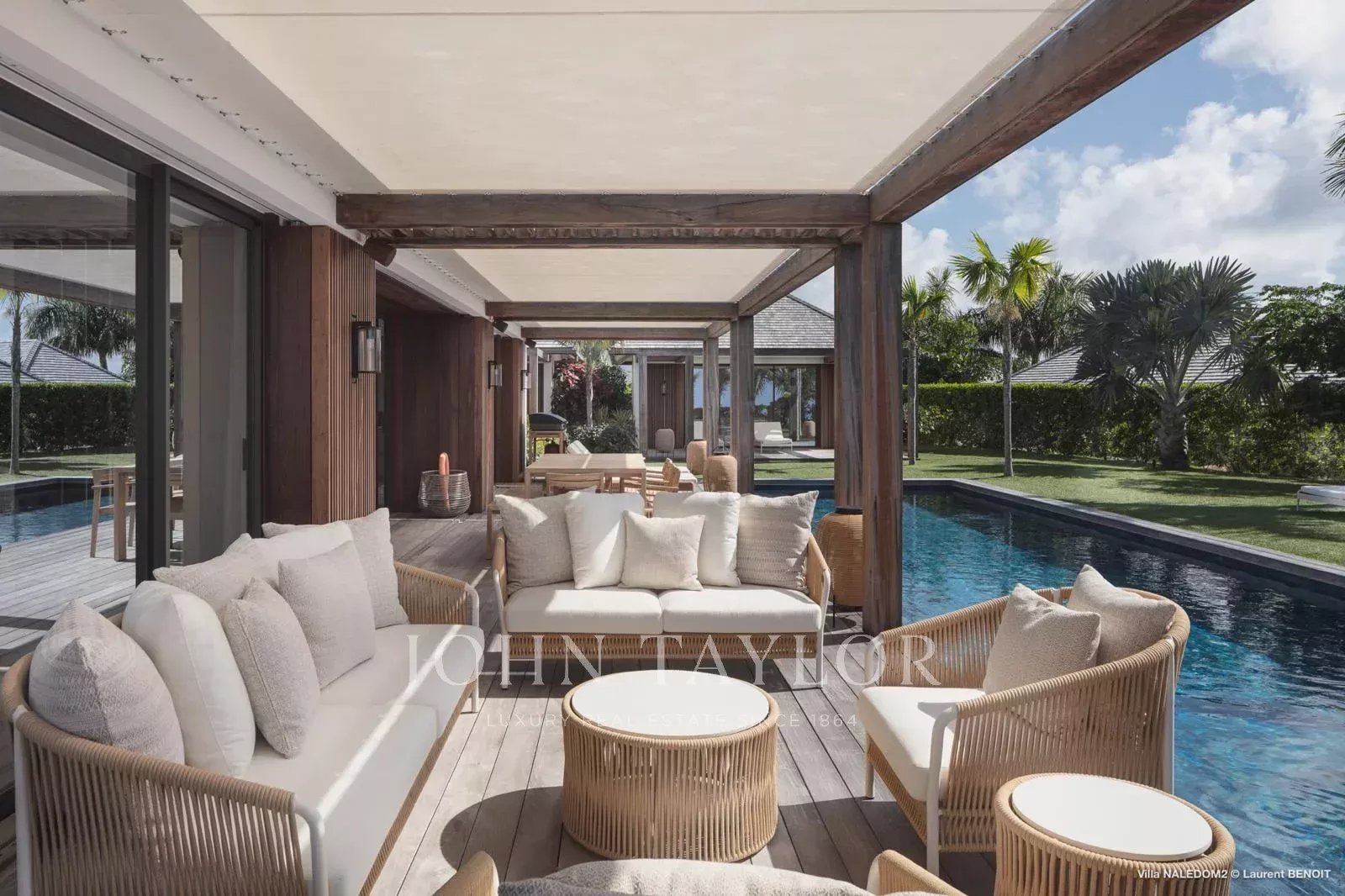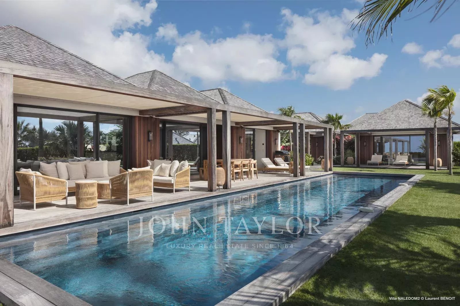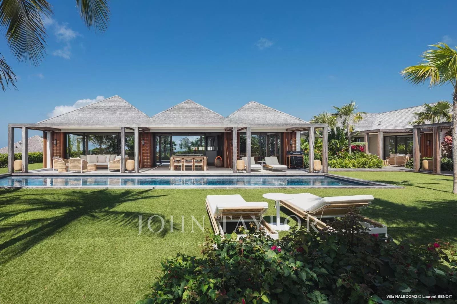 This contemporary four-bedroom villa draws inspiration from Antillean architecture through a layout composed of independent bungalows, offering a modern and refined interpretation of local design.