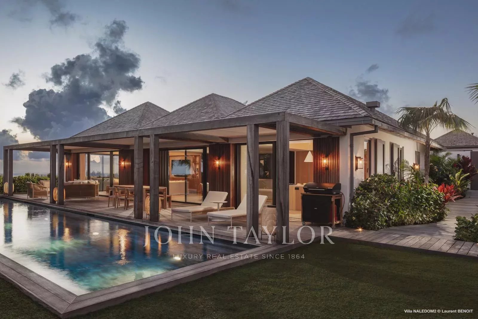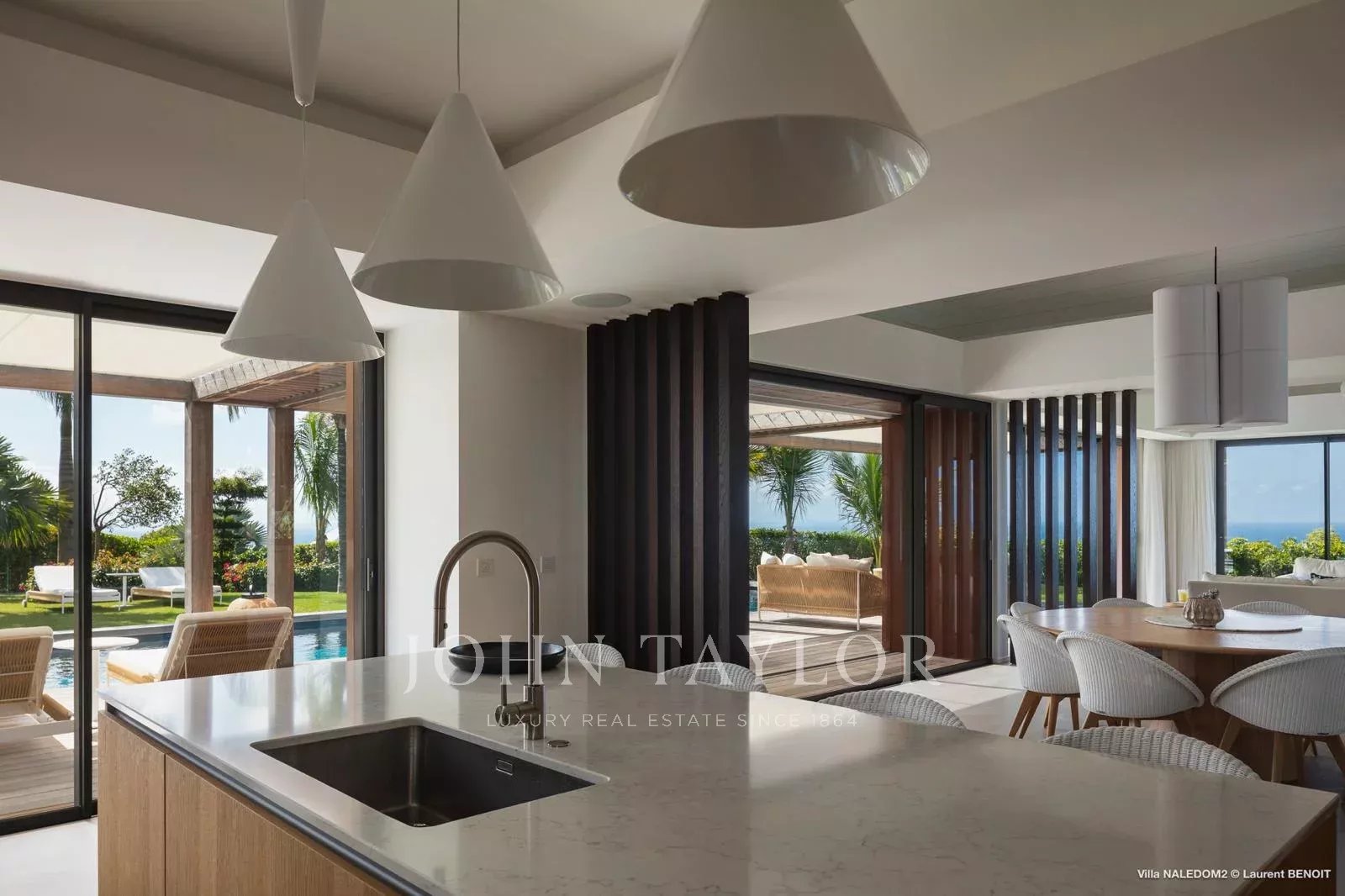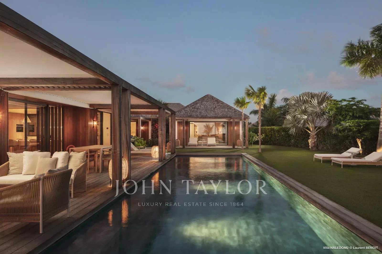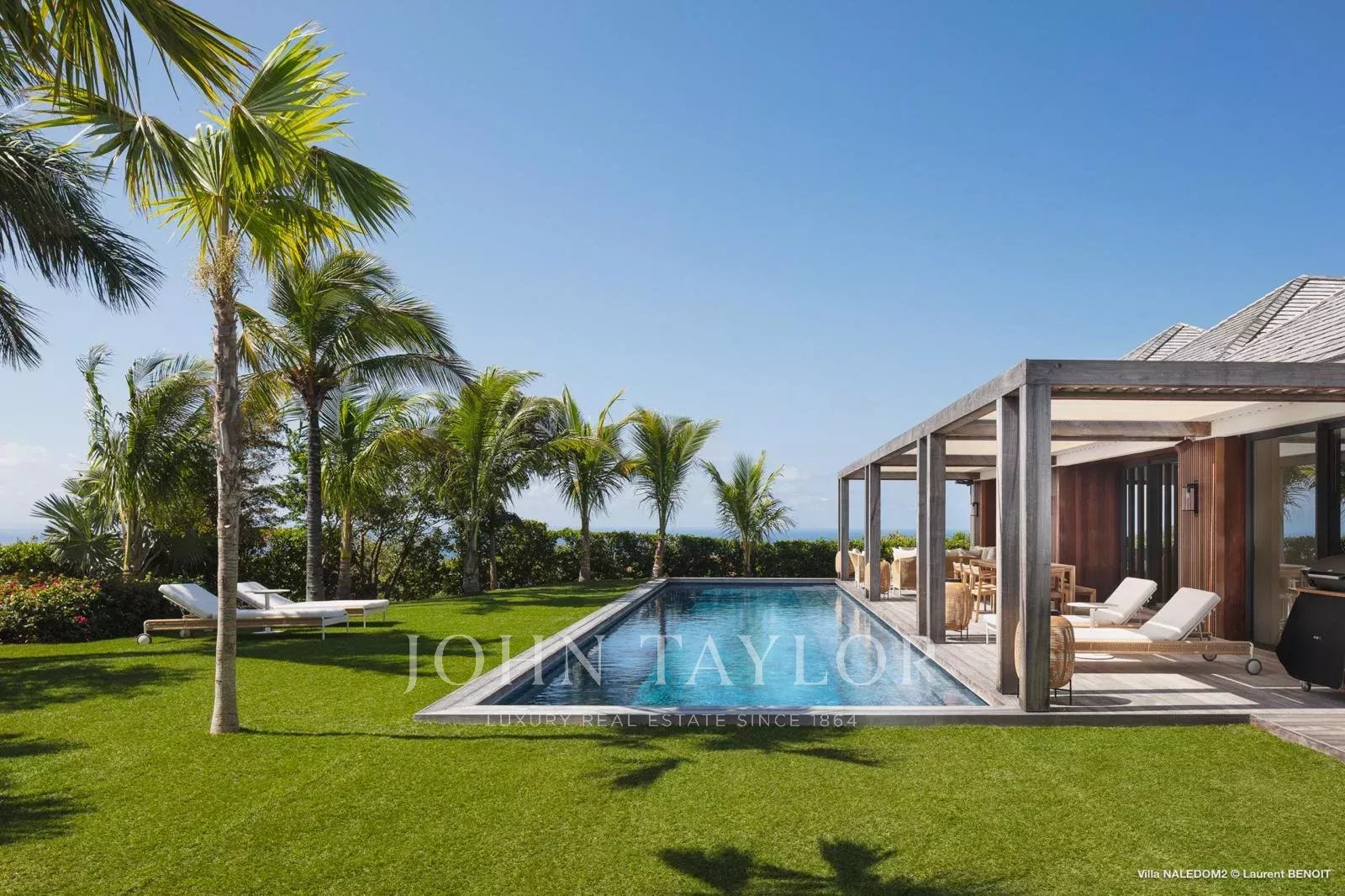 This contemporary four-bedroom villa draws inspiration from Antillean architecture through a layout composed of independent bungalows, offering a modern and refined interpretation of local design.