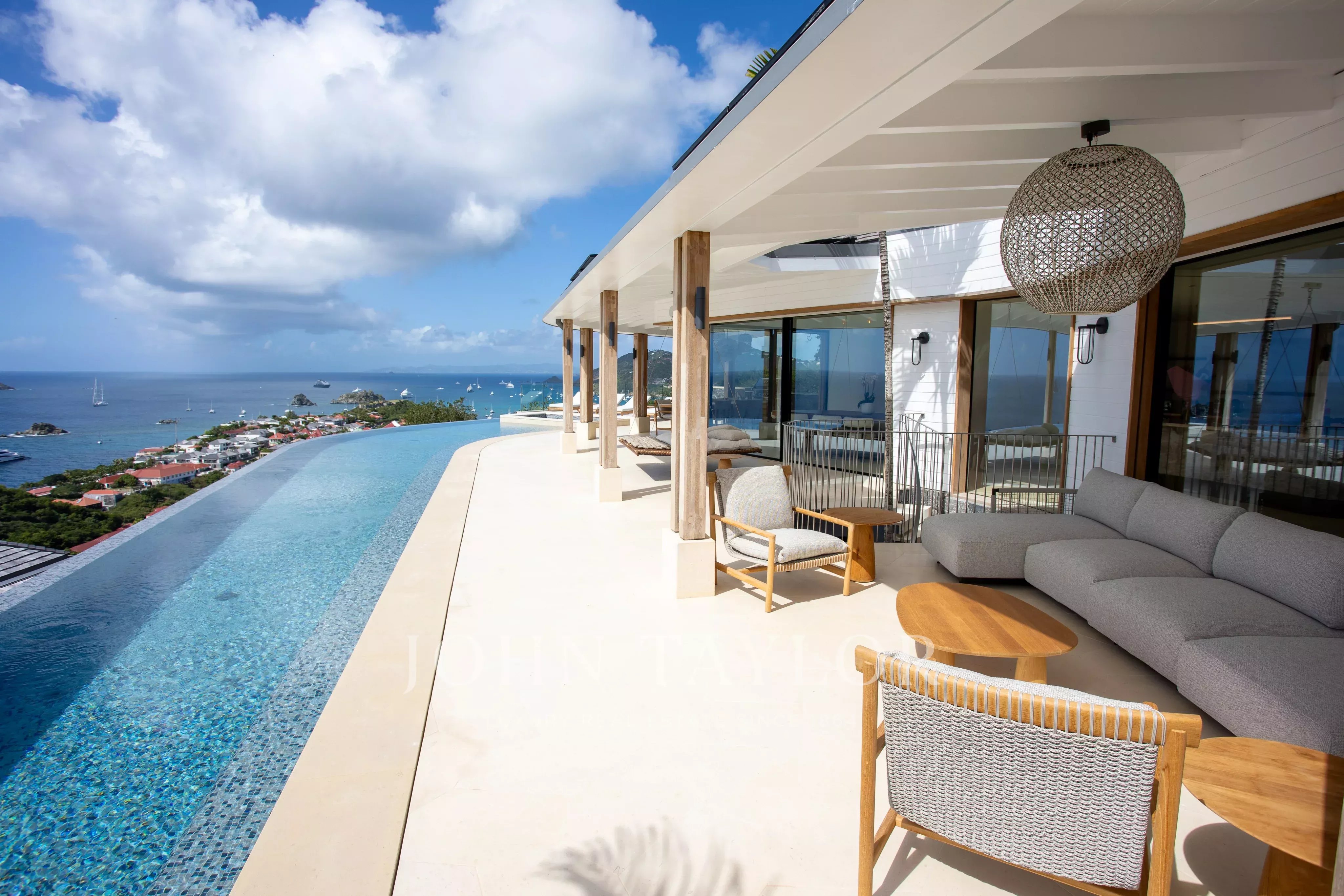 Villa SEL is an elegant luxury property featuring four beautifully appointed bedrooms and a private fitness room. Perched high above the island, the villa enjoys one of the most breathtaking panoramic views in St. Barth, offering an atmosphere of rare exclusivity.