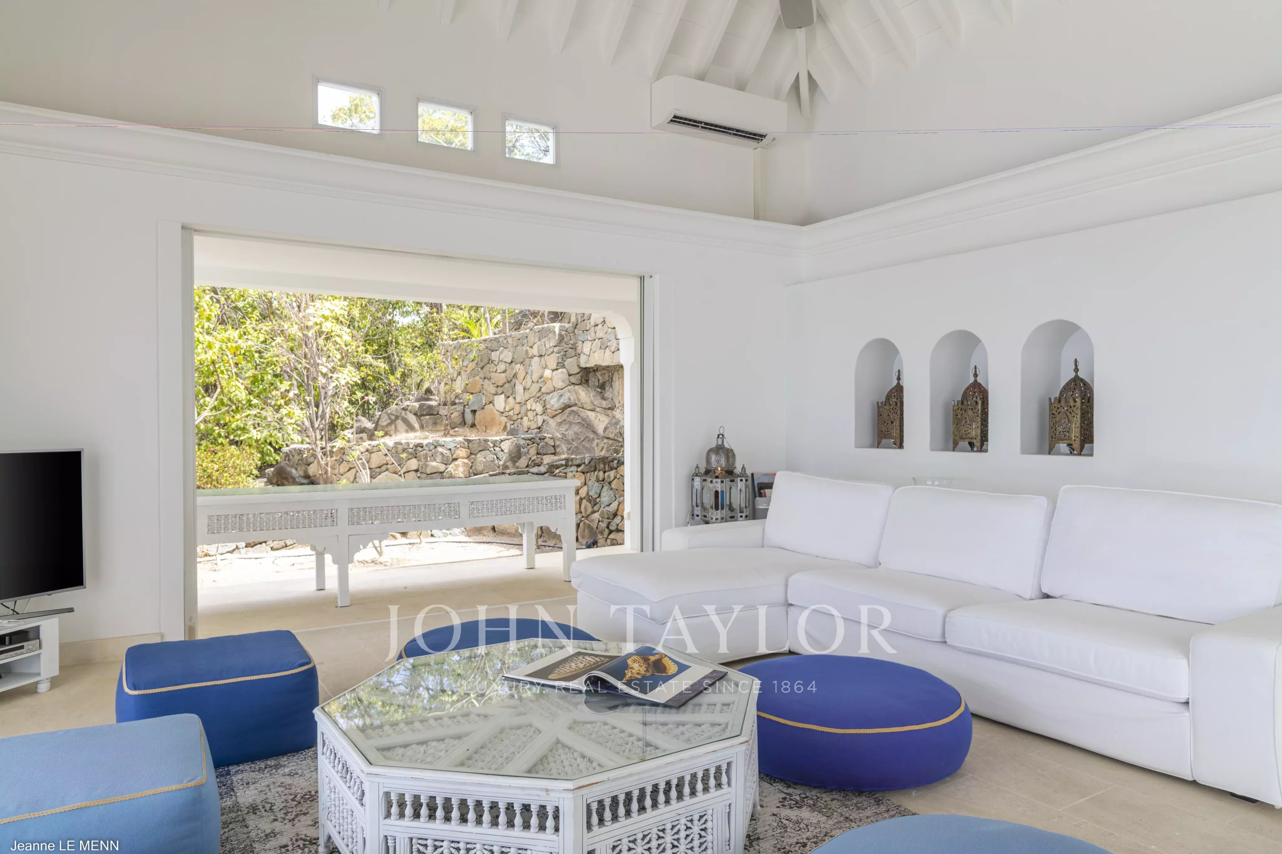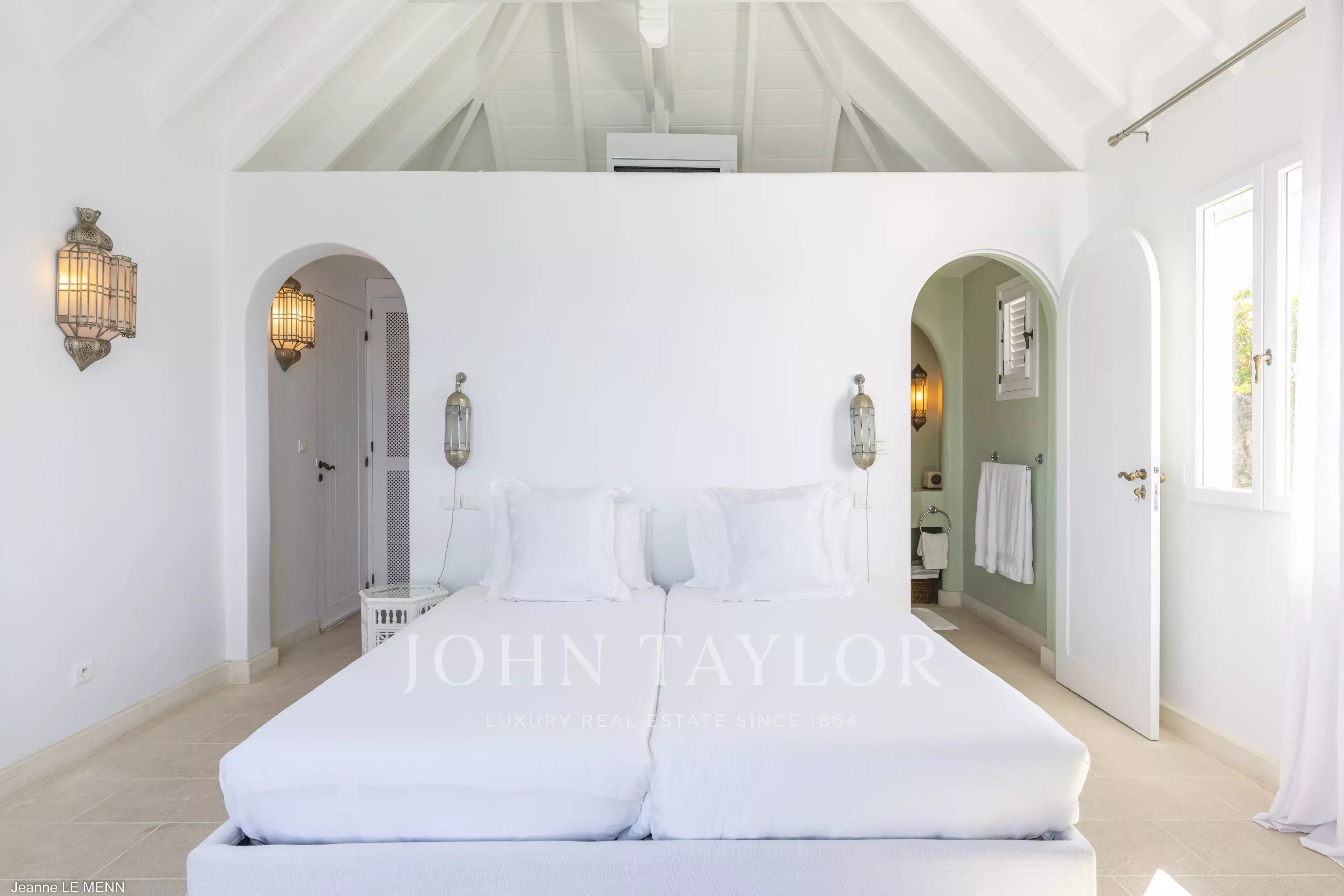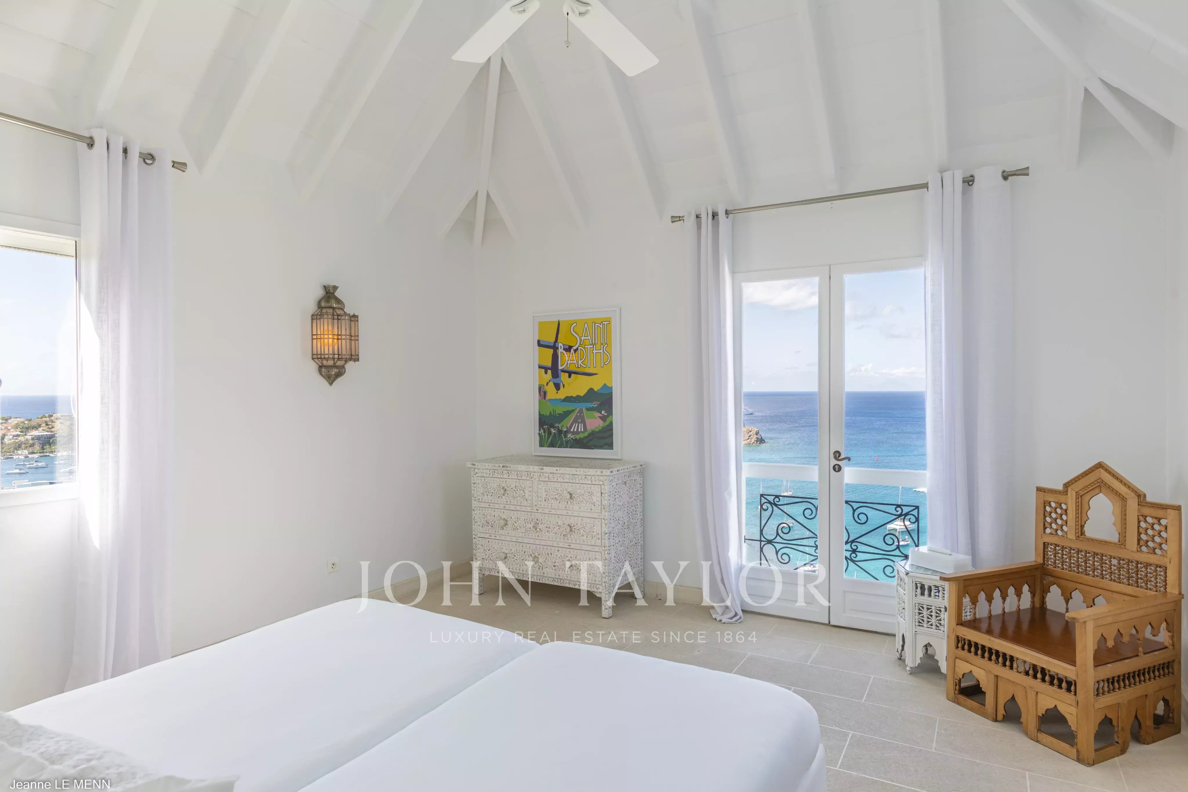 The villa features four air-conditioned bedrooms with sea views, each located in an independent pavilion. Three bedrooms offer king-size beds with en-suite bathrooms, while the fourth bedroom includes twin beds and a private bathroom. Villa MAURESQUE is an exceptional retreat in St. Barth, combining charm, privacy, and spectacular scenery.
