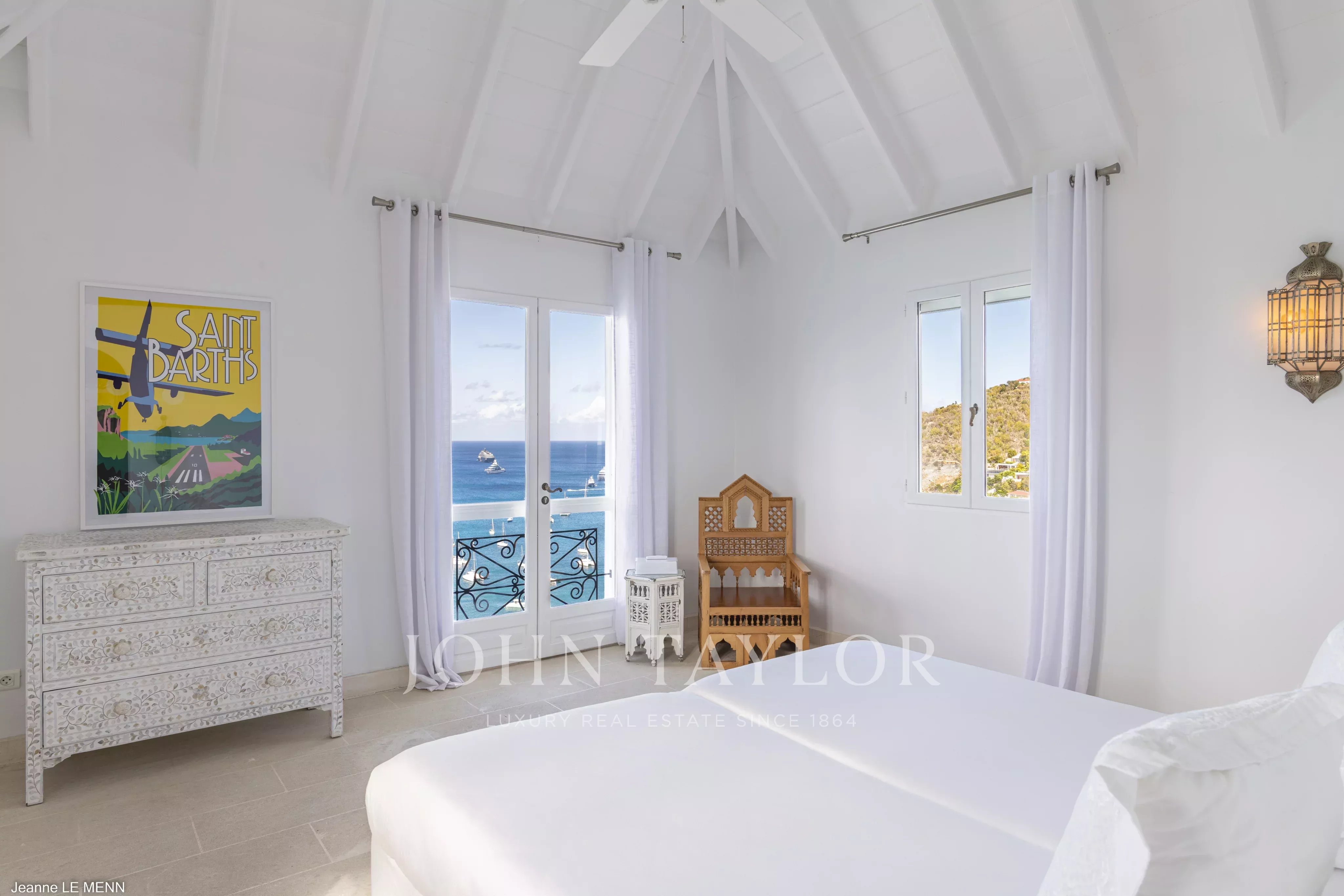 Villa MAURESQUE is an elegant four-bedroom rental property enjoying a prime location close to Gustavia, the beaches, the airport, and restaurants. The villa boasts exceptional panoramic views over the harbor of Gustavia, with its sailing yachts, as well as breathtaking sunsets.