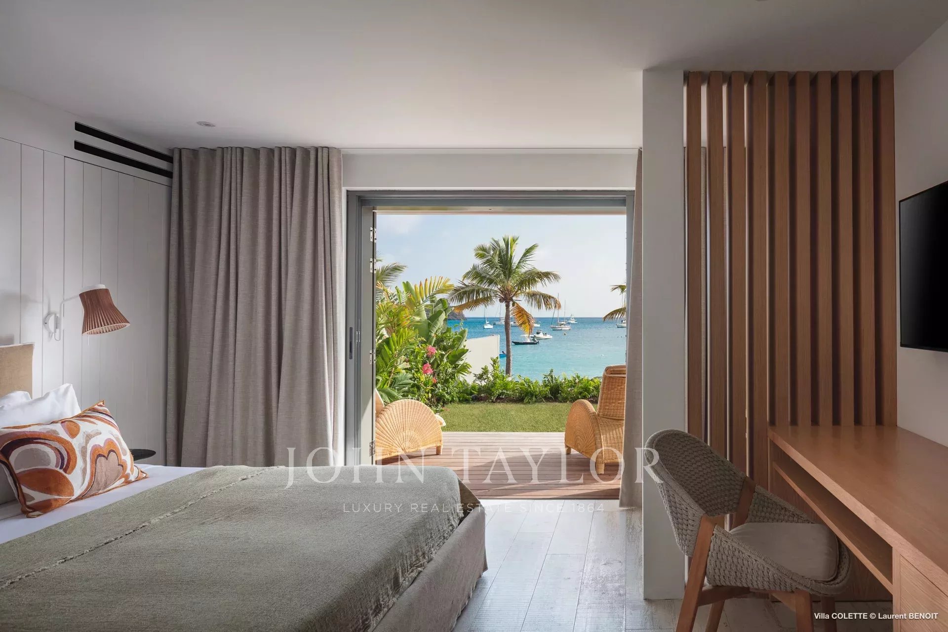 Located on the seafront opposite the picturesque port of Corossol, Villa COLETTE enjoys a rare and sought-after location in St. Barths. This luxury property boasts superb ocean views, a heated swimming pool and spacious open-plan living areas, just a few minutes from Gustavia, its stores and restaurants.