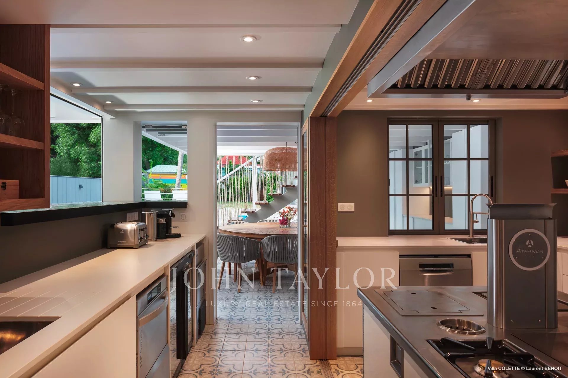 The villa consists of two separate buildings linked by terraces and a heated pool, offering an ideal organization for preserving everyone's privacy. The living room, bright and open to the sea, opens onto an elegantly furnished terrace. The fully-equipped kitchen with central island blends harmoniously into the living space, creating a refined, convivial atmosphere.
