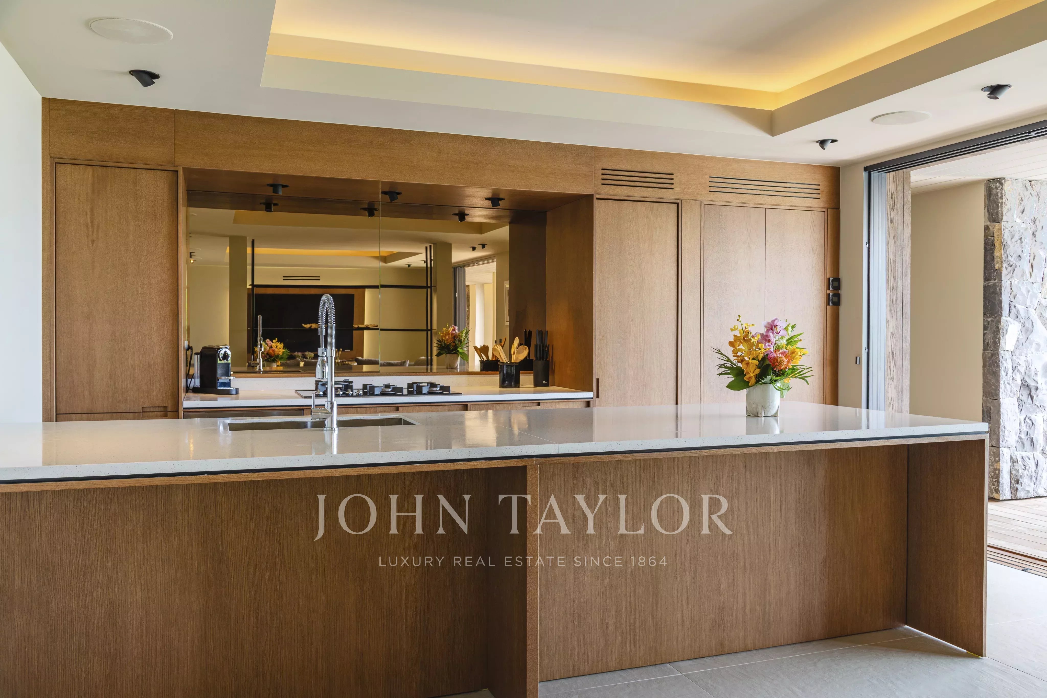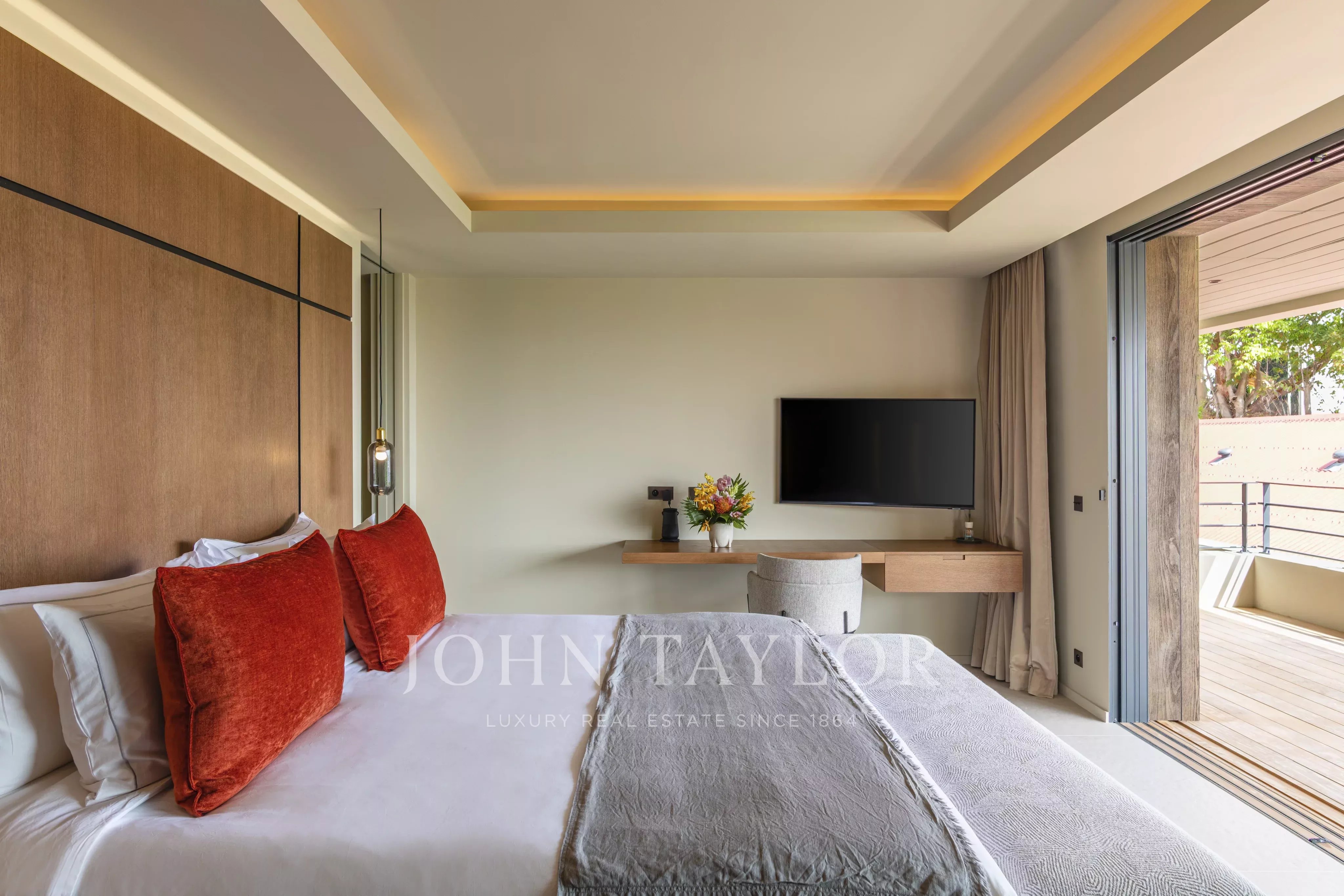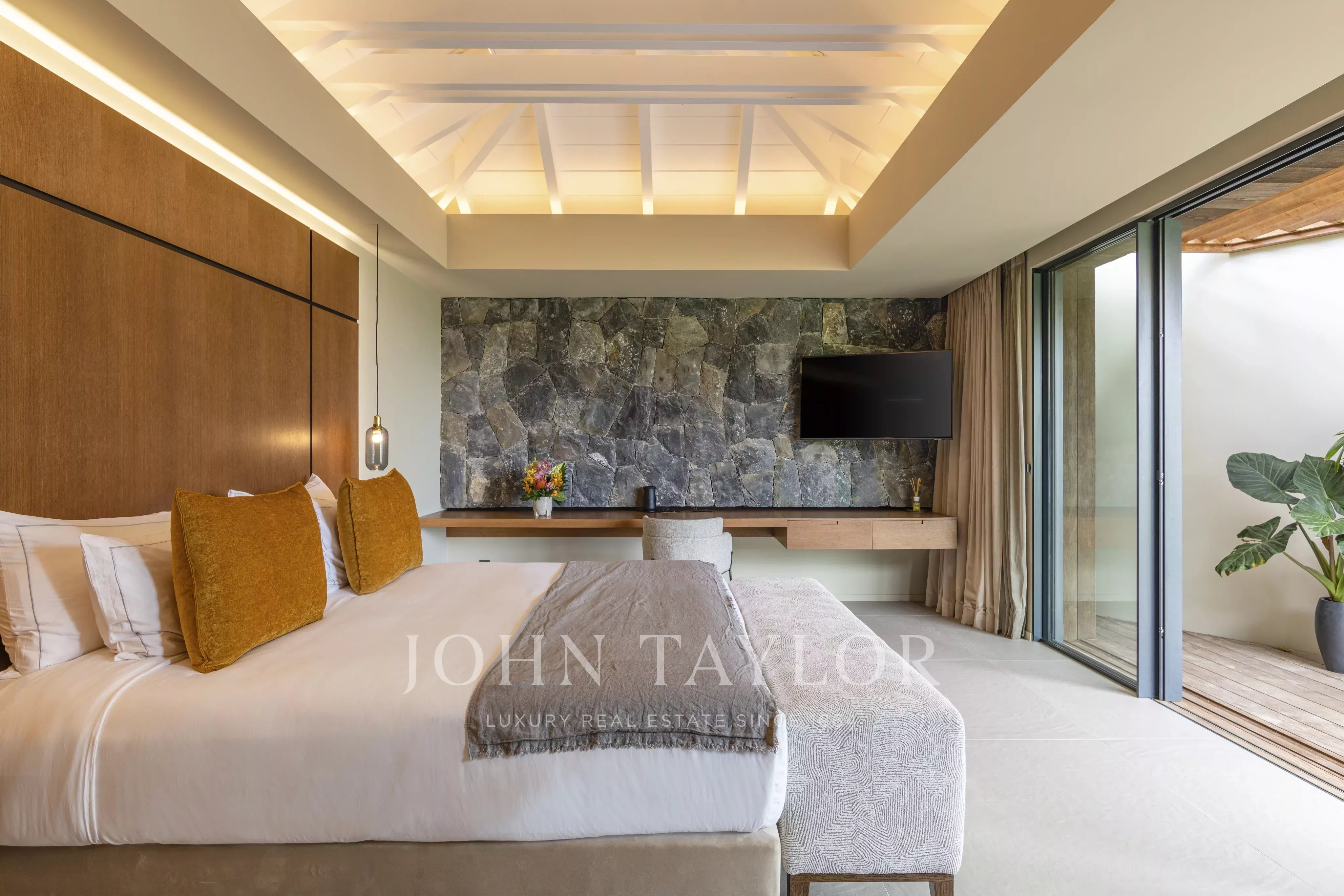 Villa Eva offers five bedrooms, including a private master suite set slightly apart, nestled within the garden below, ensuring privacy and tranquility. The remaining bedrooms are located within the main villa and provide elegant comfort throughout.
