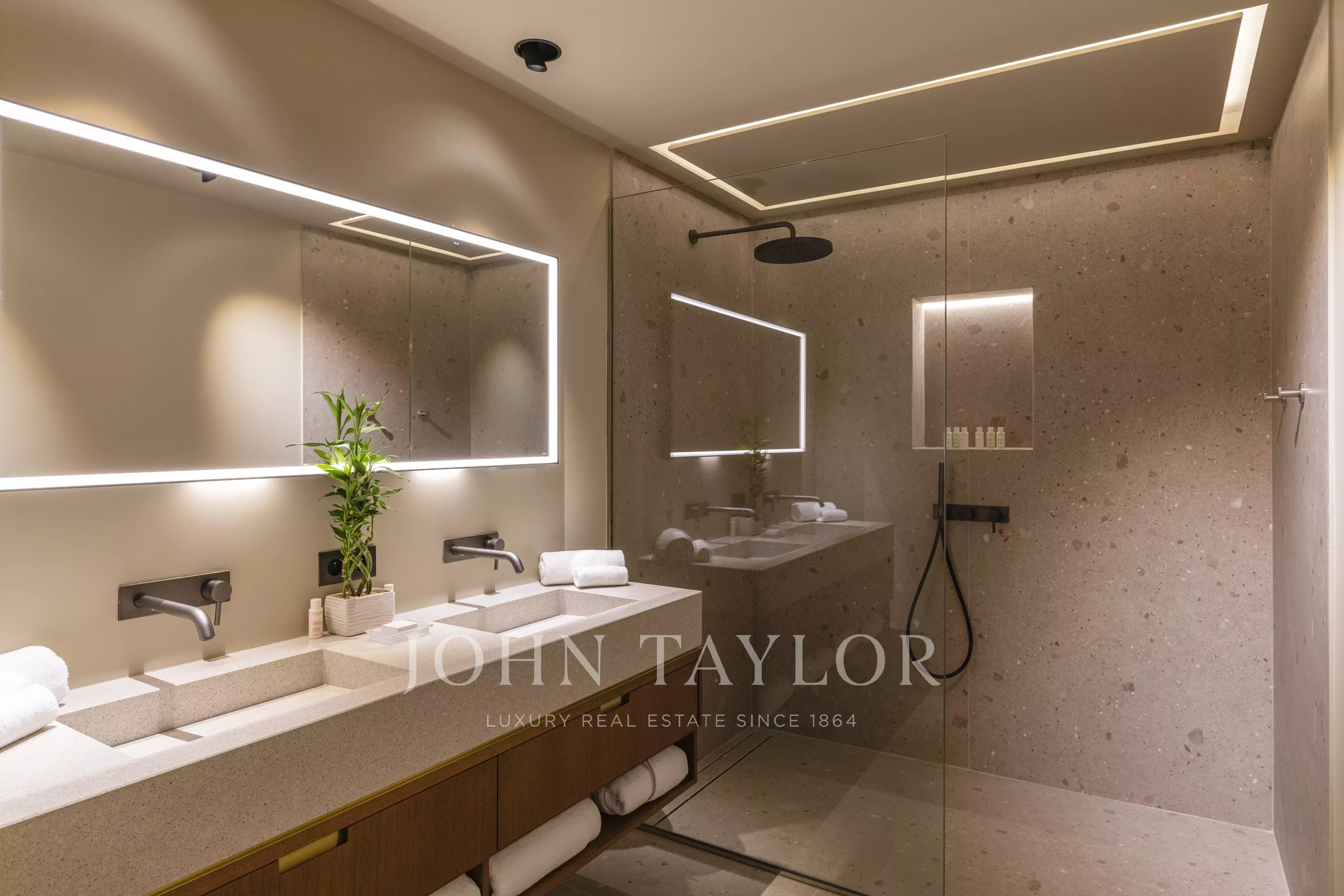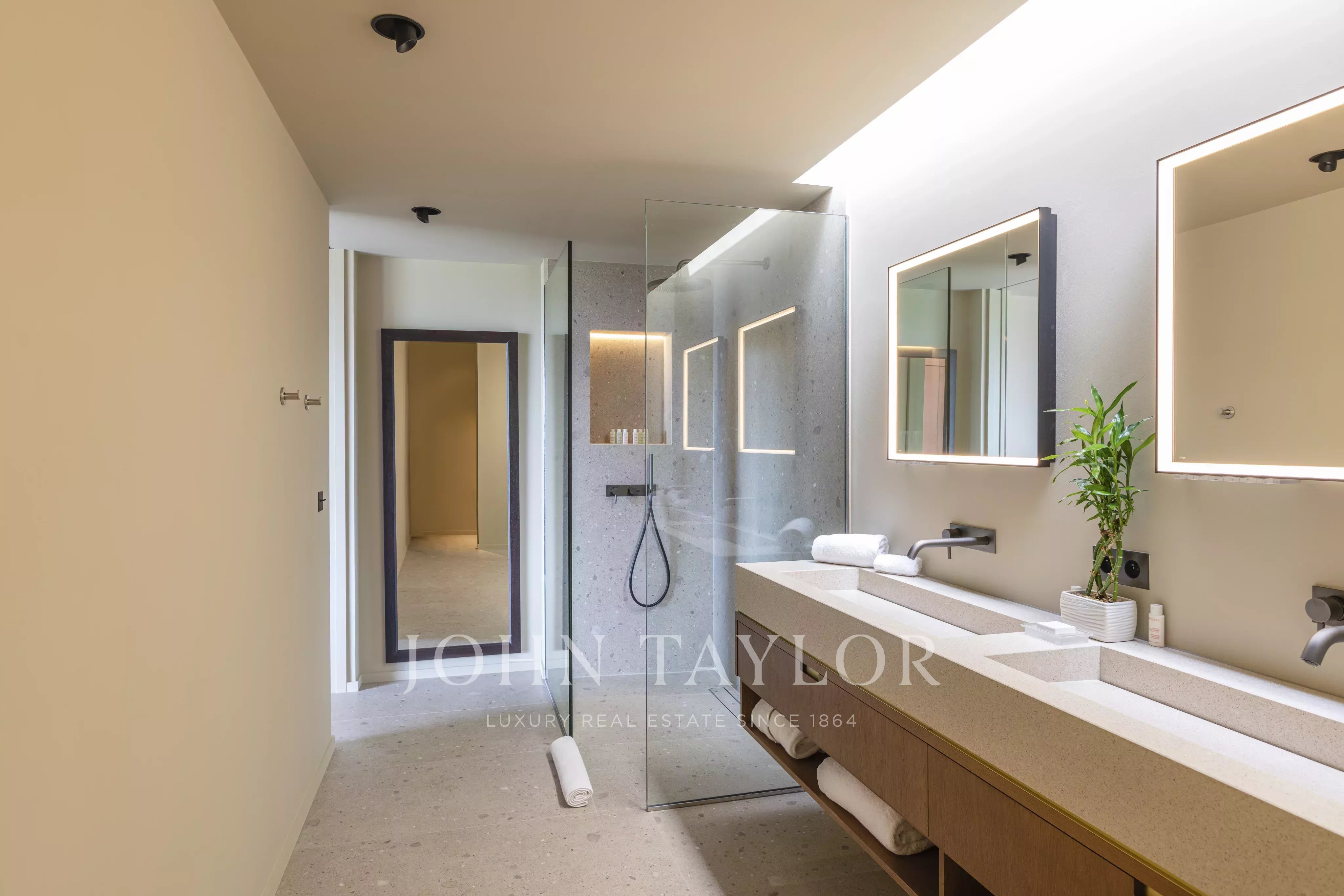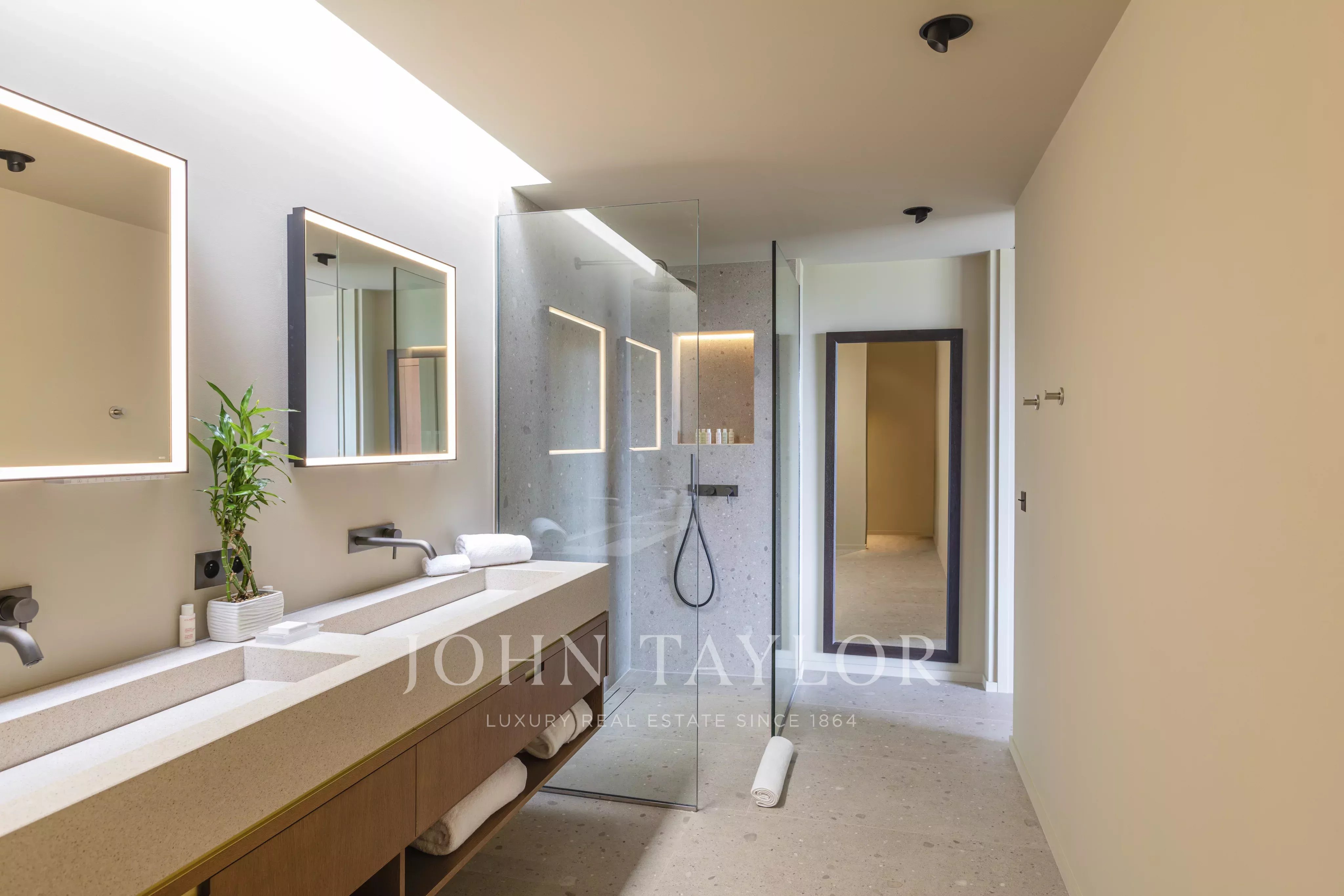 Villa Eva offers five bedrooms, including a private master suite set slightly apart, nestled within the garden below, ensuring privacy and tranquility. The remaining bedrooms are located within the main villa and provide elegant comfort throughout.