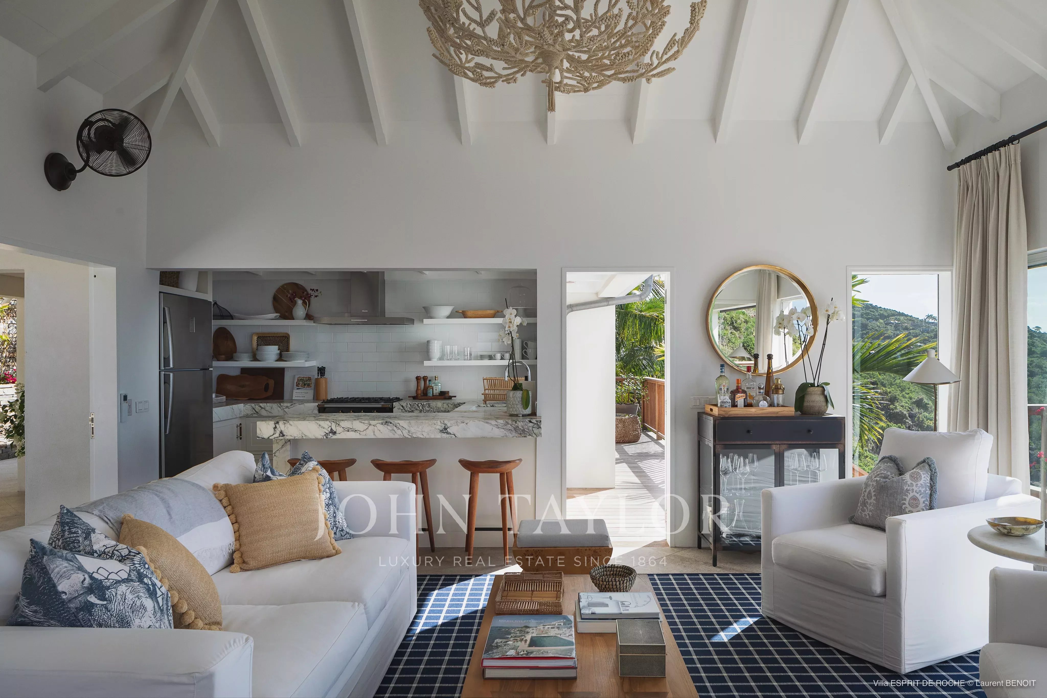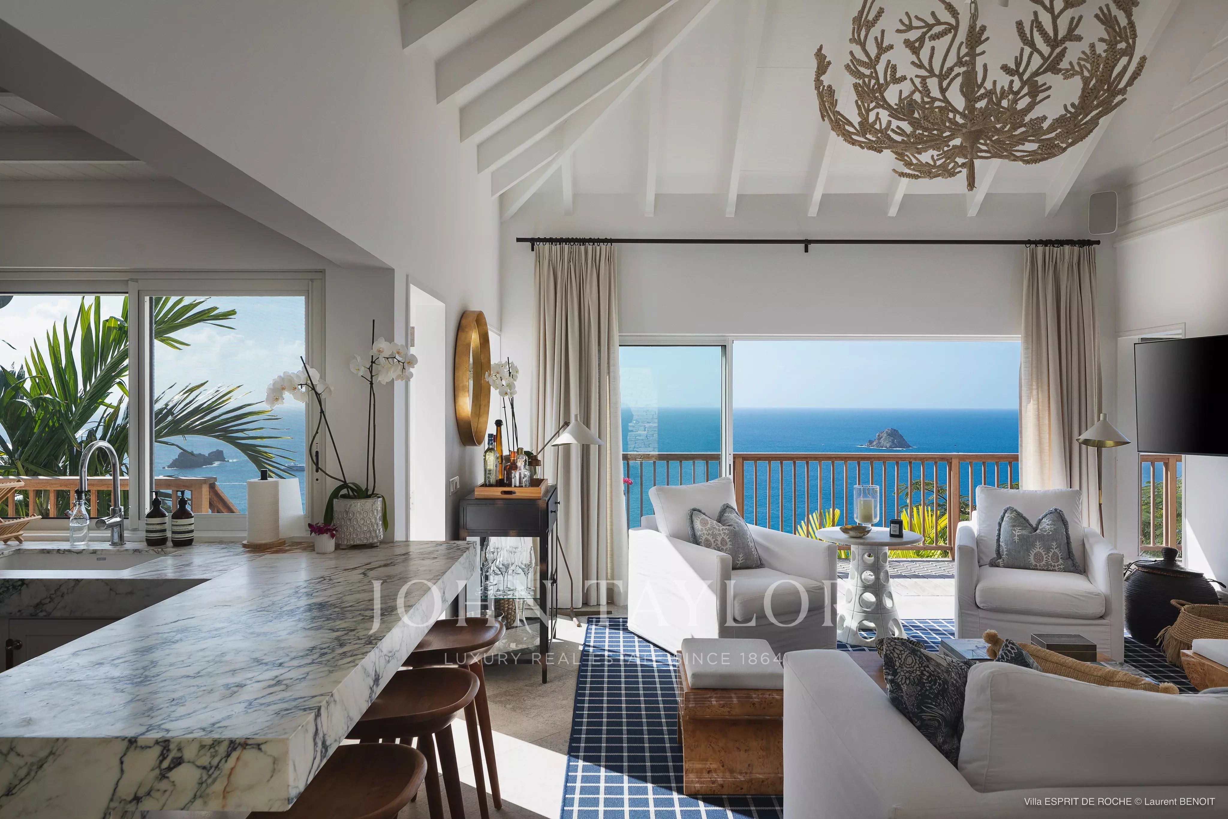 Facing a spectacular setting where sky and sea blend, the ESPRIT DE ROCHE villa establishes itself as an exclusive address for an unforgettable experience in Saint Barthélemy, combining discreet luxury and island living.