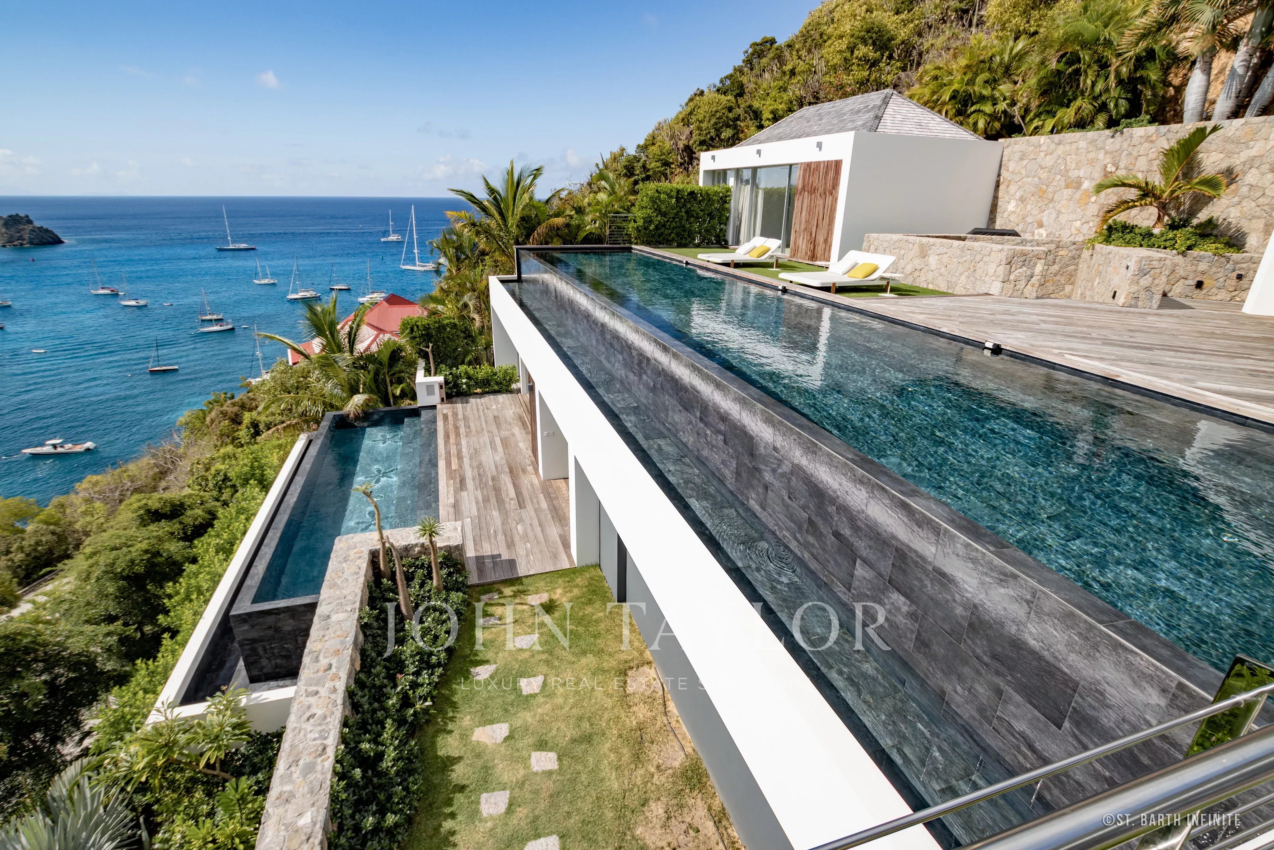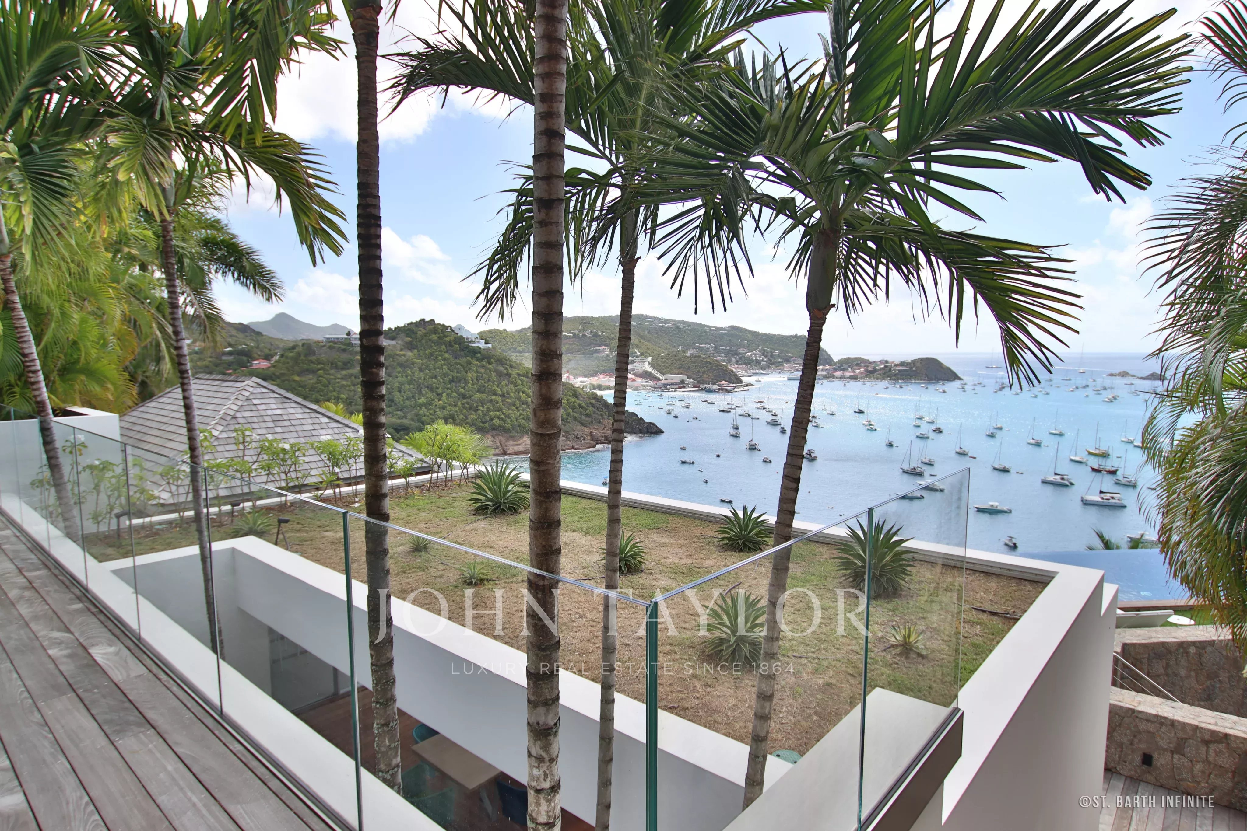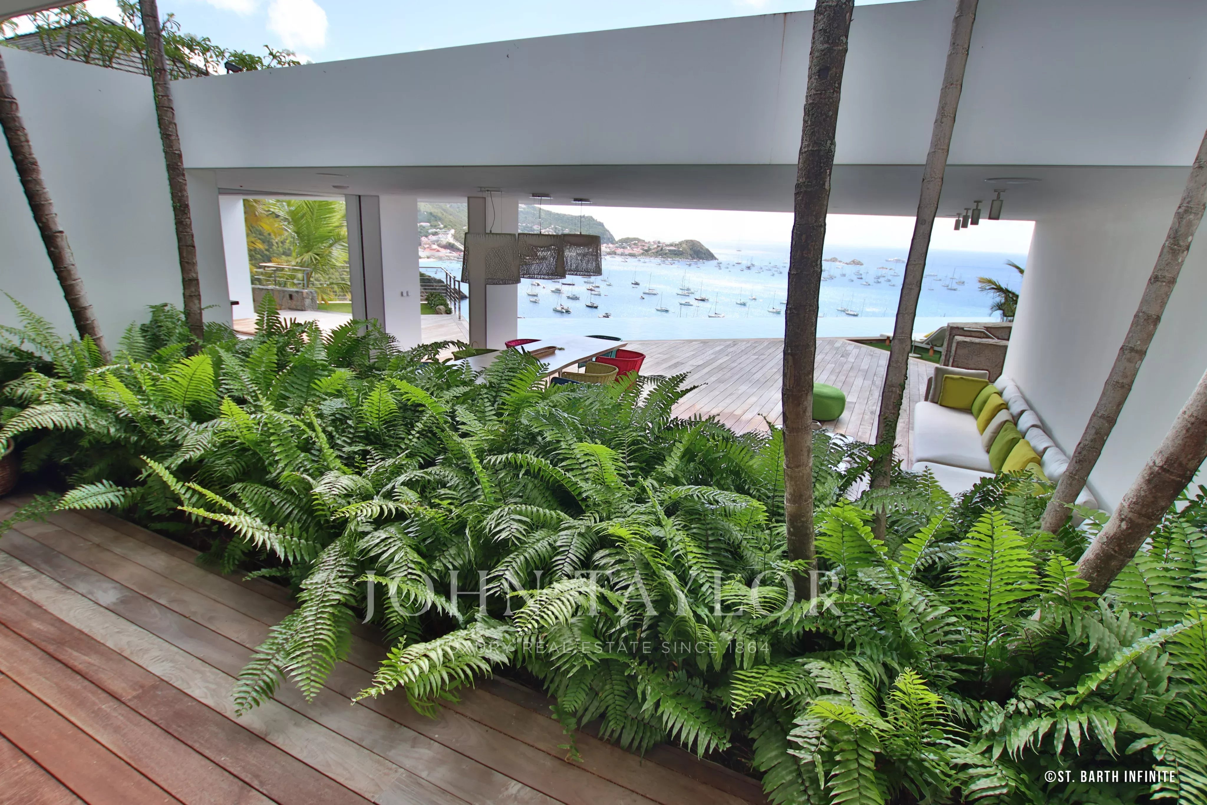 Built on three levels along a hillside, the villa overlooks the charming harbor of Corossol and its sparkling waters dotted with boats.