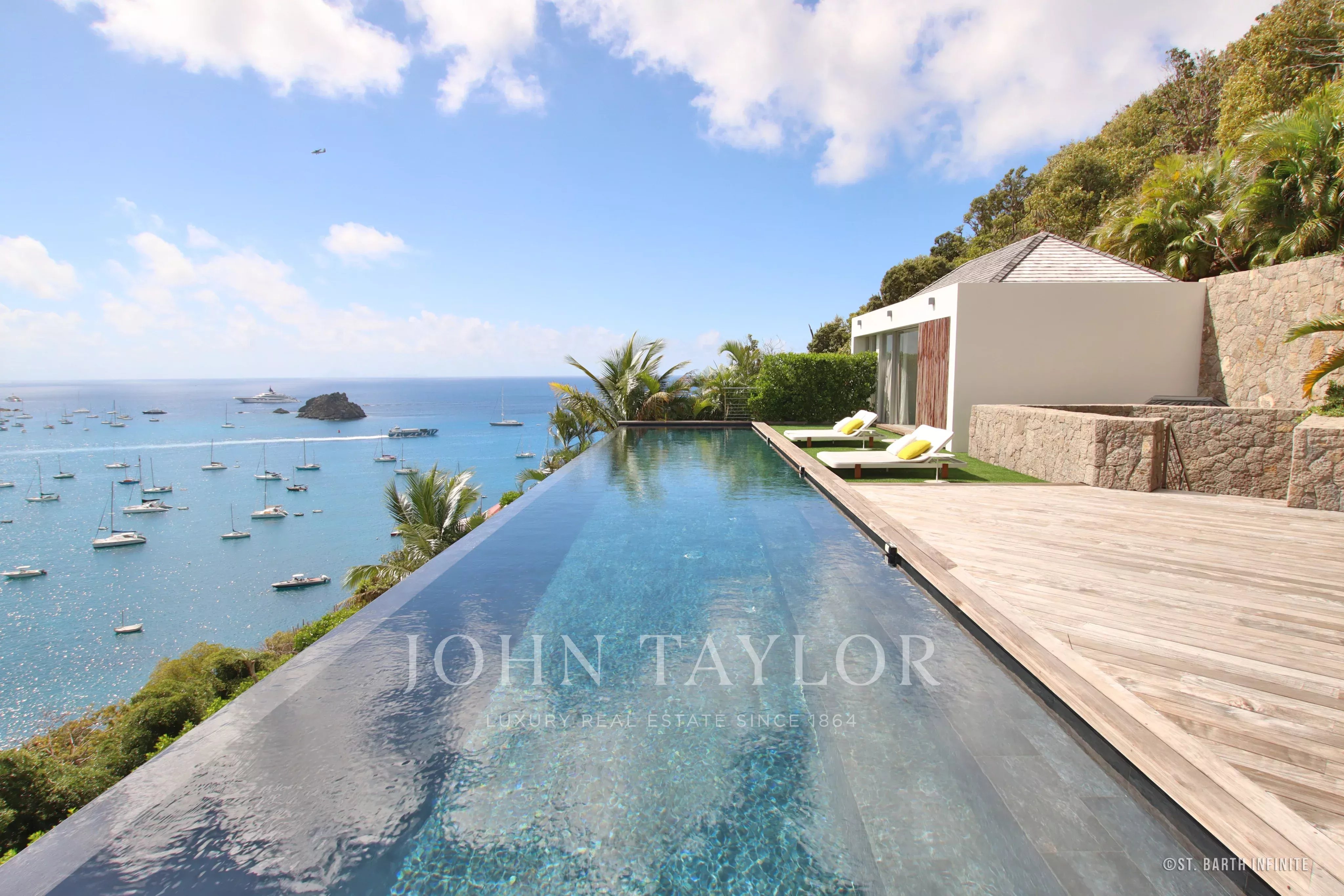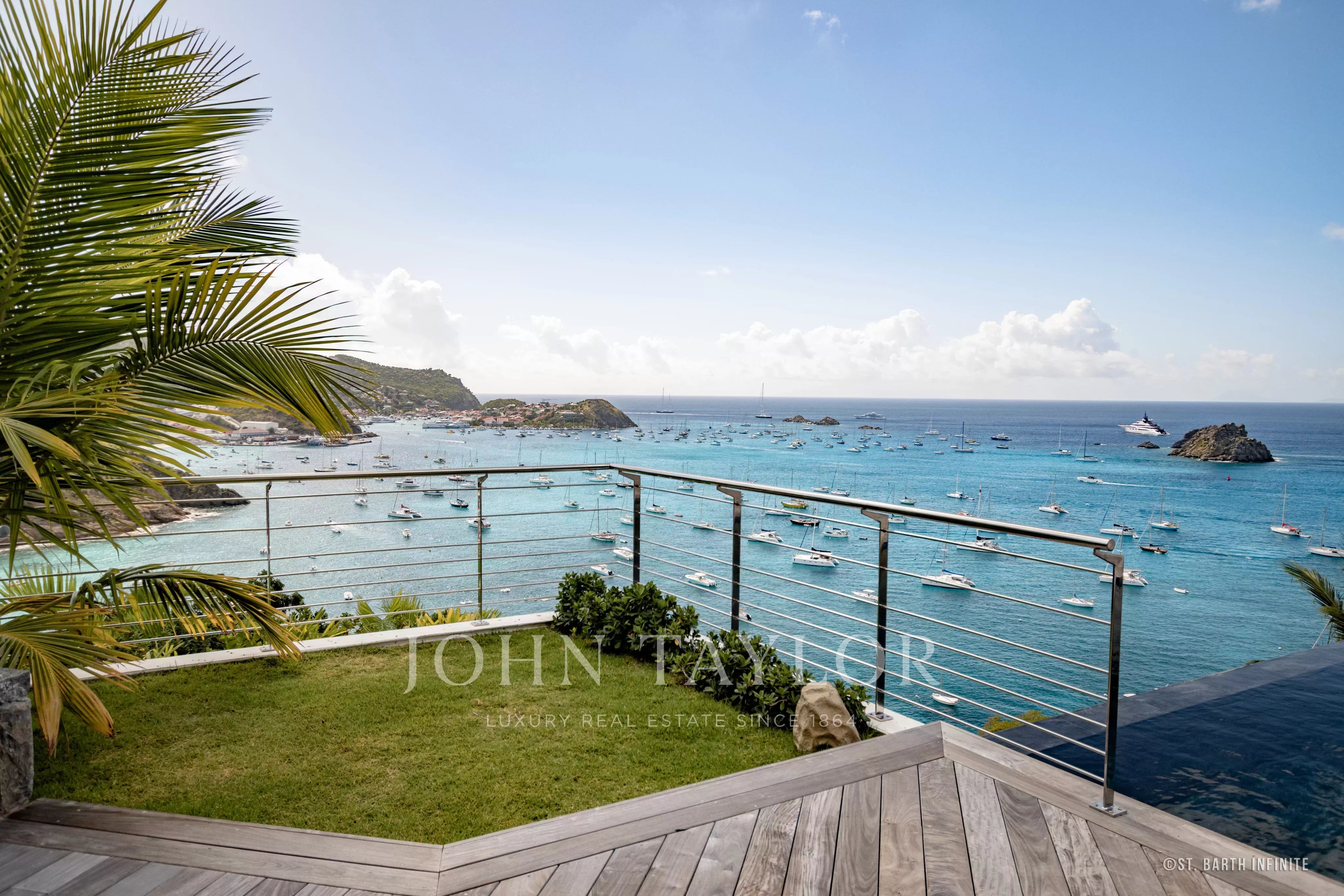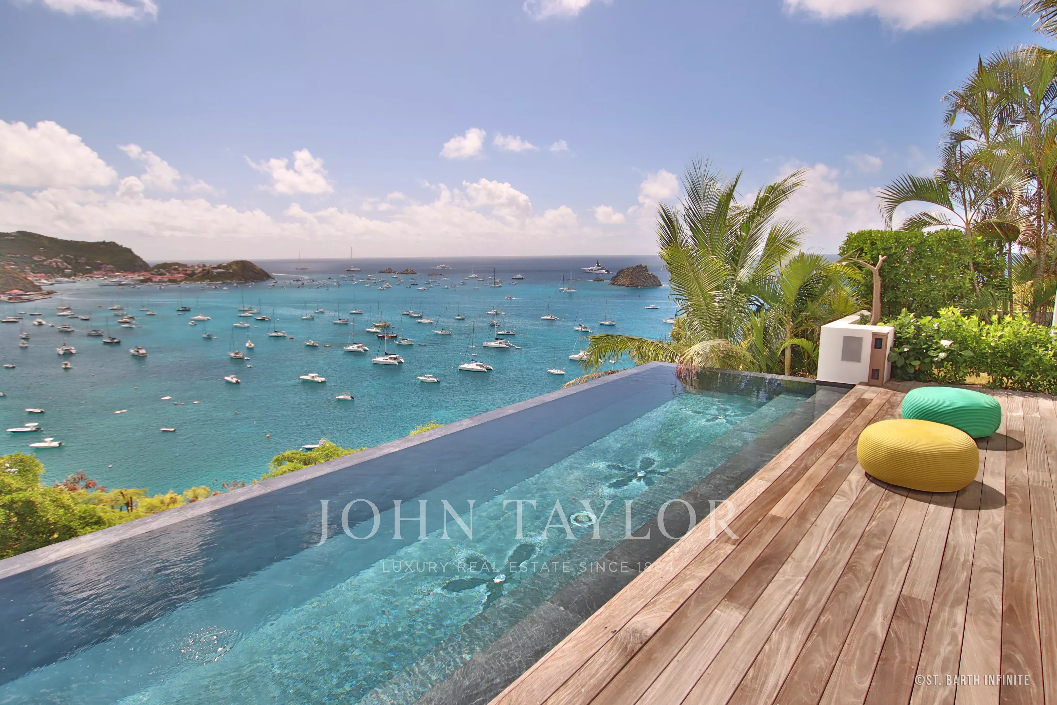 Built on three levels along a hillside, the villa overlooks the charming harbor of Corossol and its sparkling waters dotted with boats.