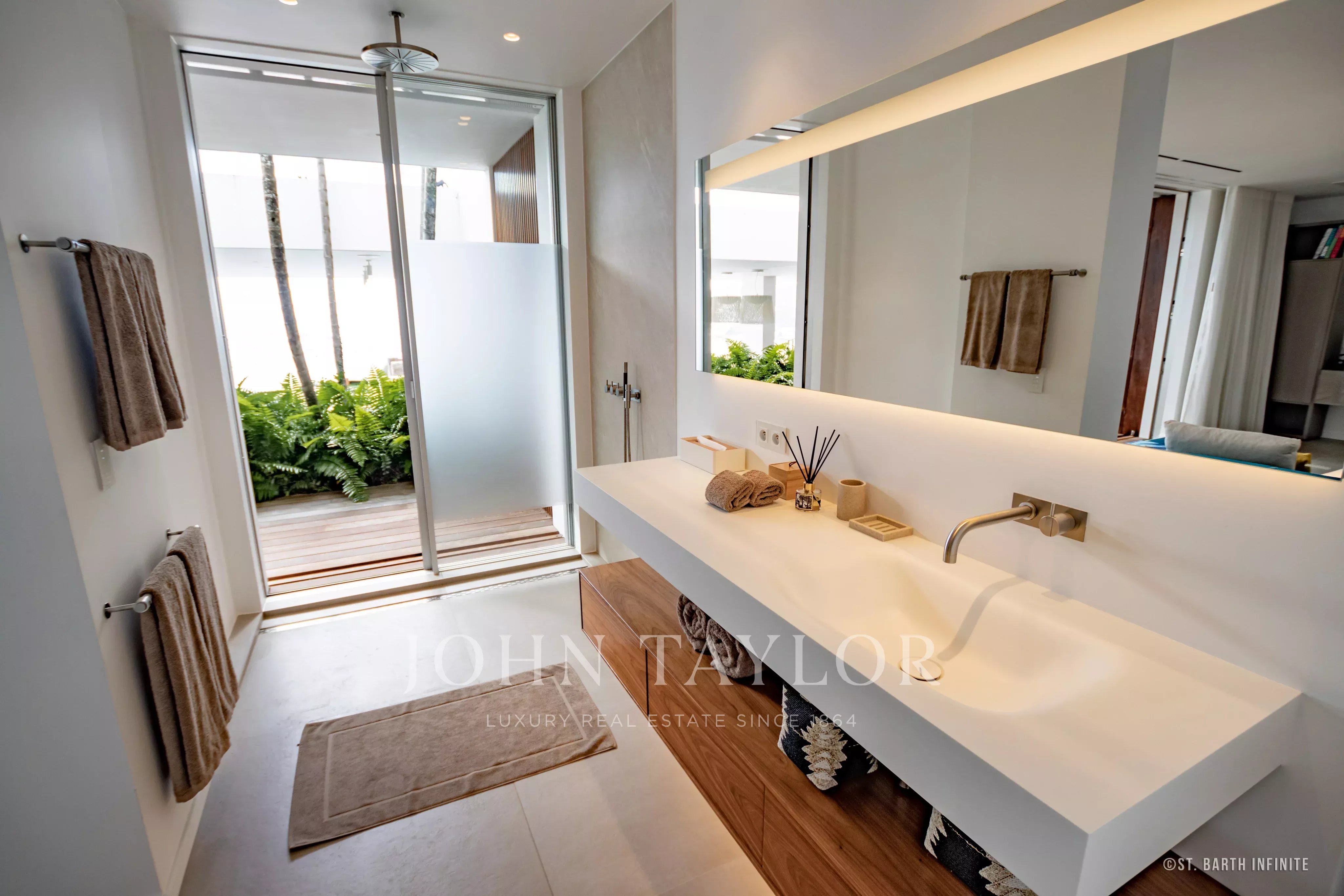 A secondary lounge at the rear of the living space, with plush seating and a large HD screen, is ideal for relaxed movie nights. Swept by the Caribbean trade winds, MAISON DE LA LUZ is an invitation to pure relaxation in a luxurious setting.