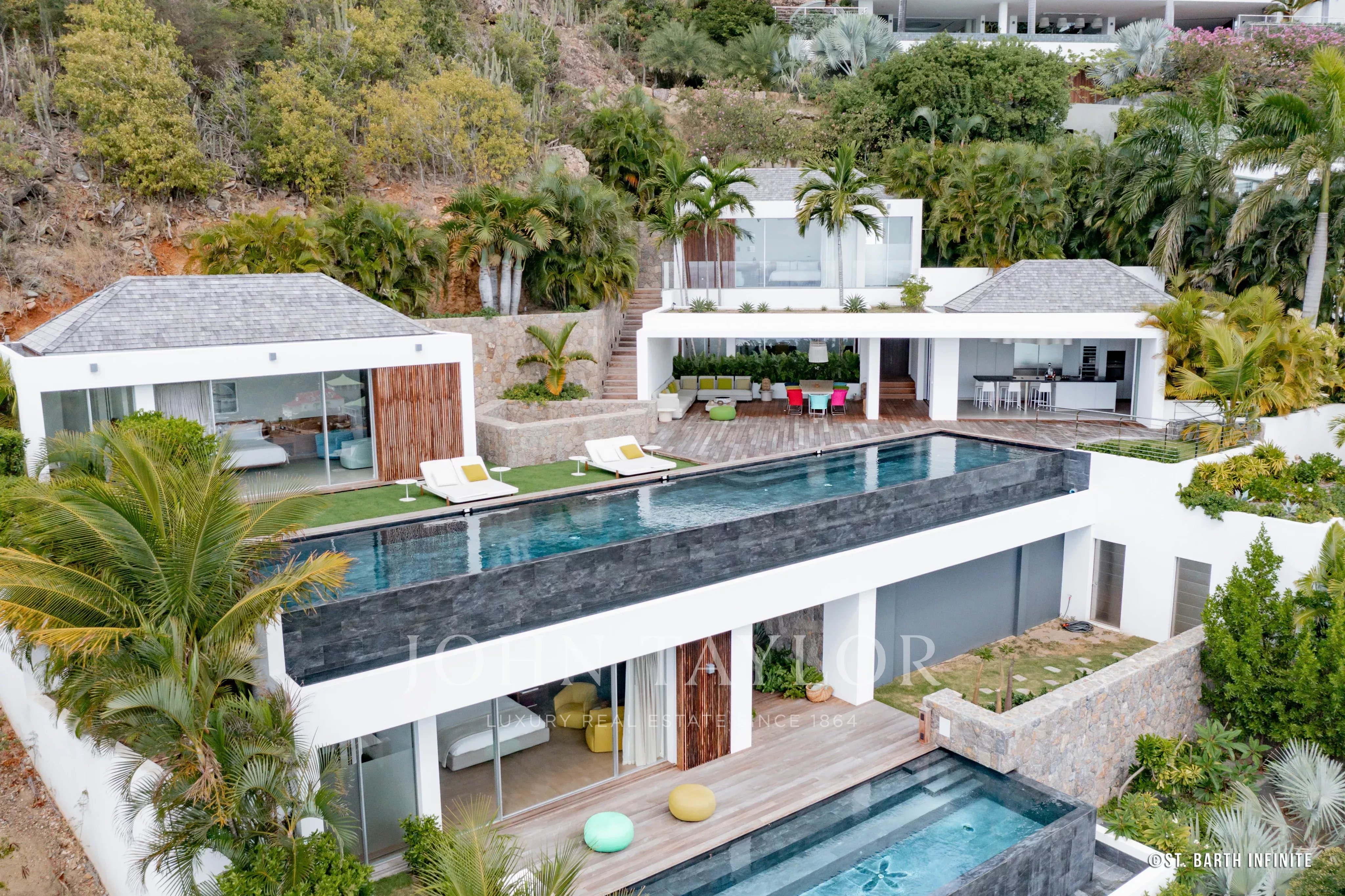 MAISON DE LA LUZ is a stunning four-bedroom rental villa located in Corossol, boasting breathtaking panoramic views. With two swimming pools, light-filled interiors, and a privileged setting within lush tropical surroundings, it is an exceptional retreat for up to eight guests in St. Barth.
