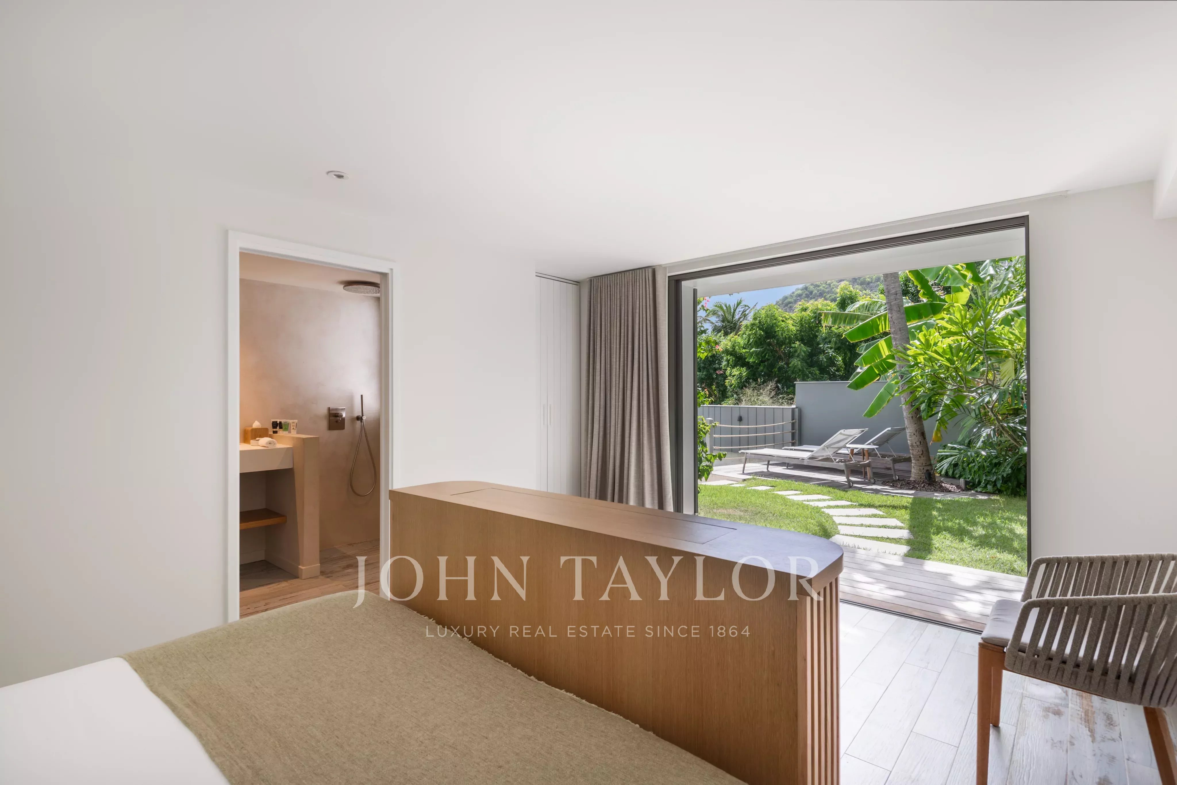 Villa COLETTE has six air-conditioned bedrooms, all with en-suite bathrooms. Four rooms are located in the main building, three of which have sea views, while two additional rooms occupy an independent pavilion, ideal for families.