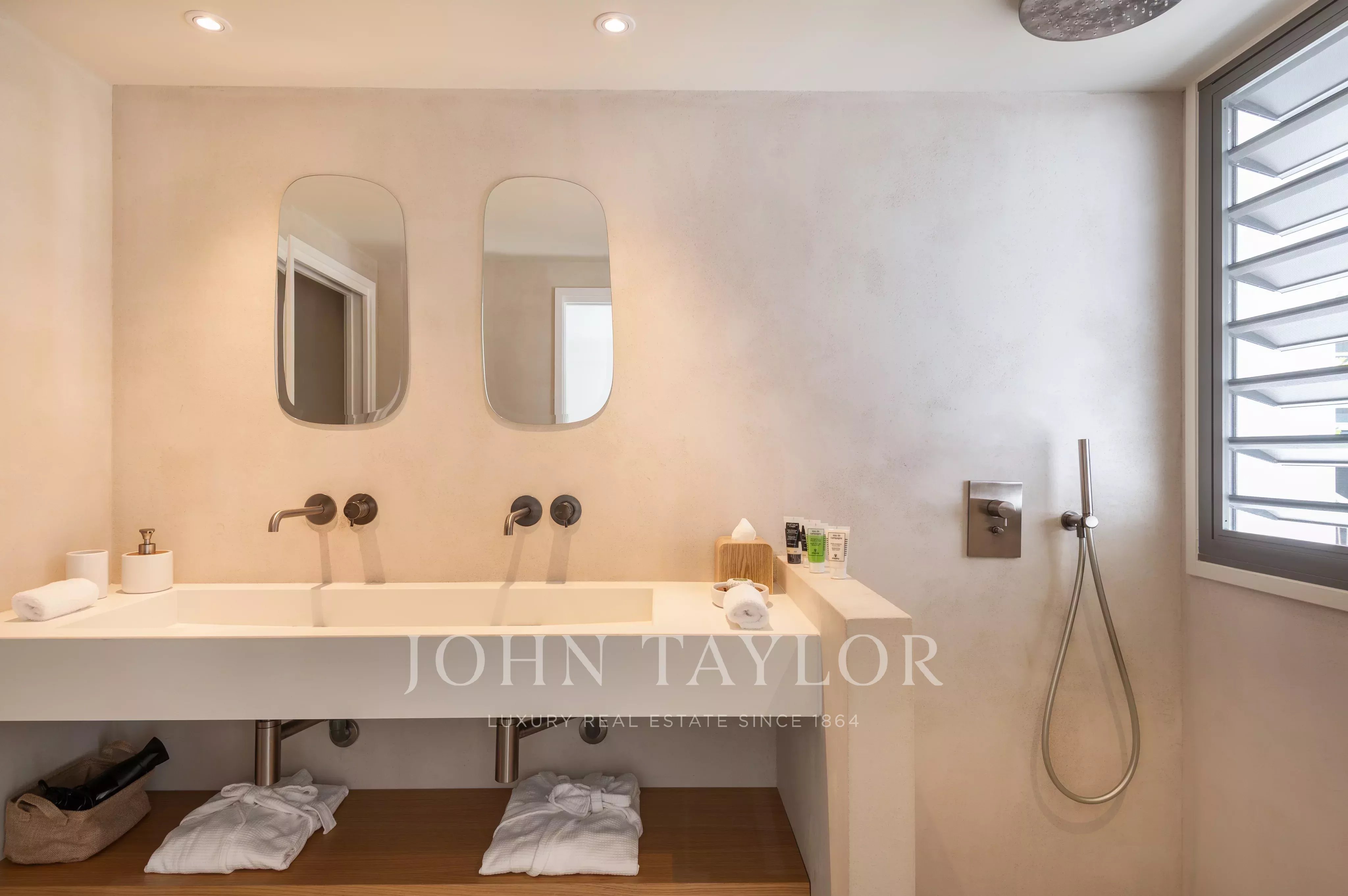 The villa consists of two separate buildings linked by terraces and a heated pool, offering an ideal organization for preserving everyone's privacy. The living room, bright and open to the sea, opens onto an elegantly furnished terrace. The fully-equipped kitchen with central island blends harmoniously into the living space, creating a refined, convivial atmosphere.