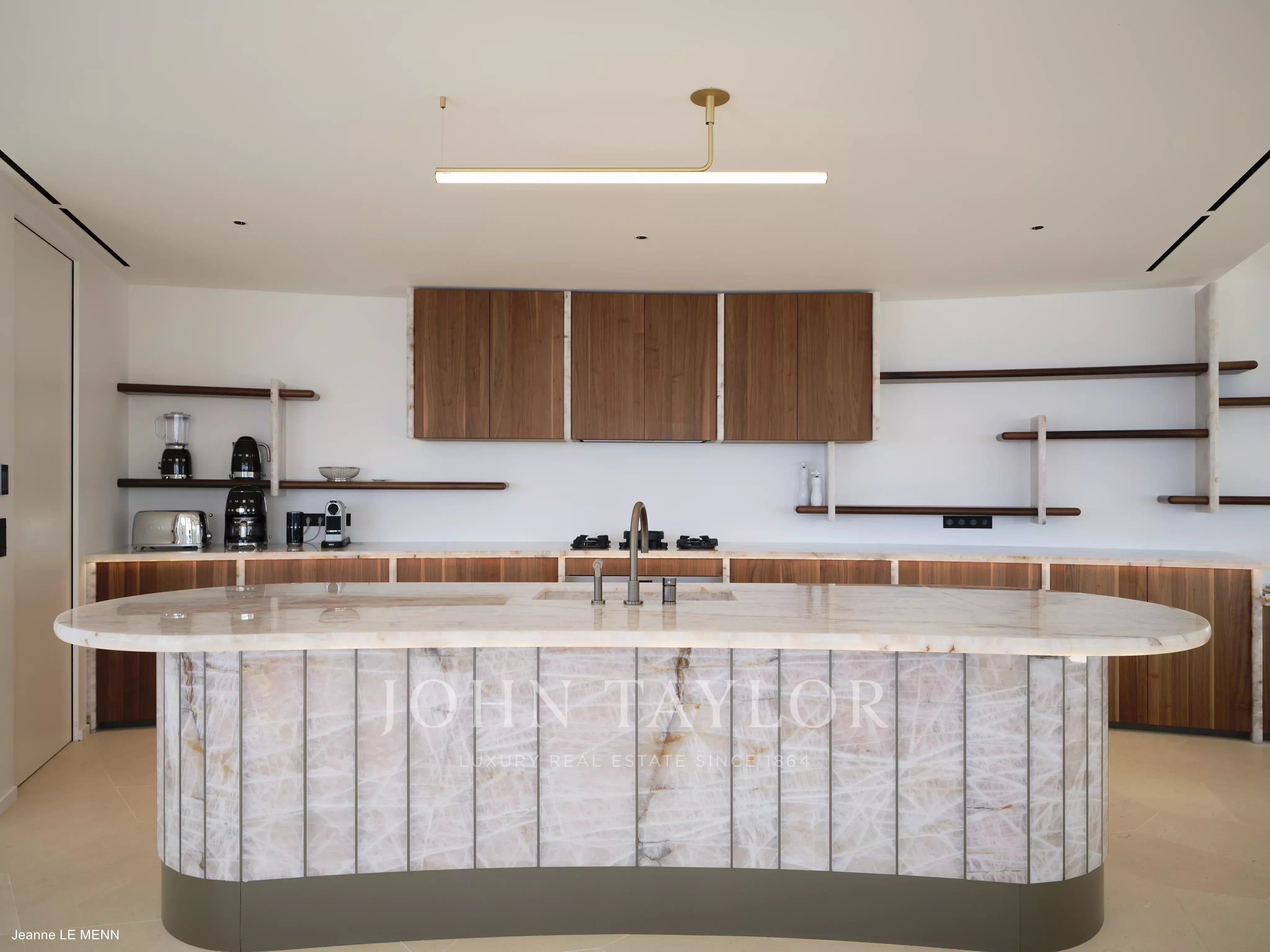 The villa reveals a sumptuous master suite ideally situated at pool level, offering direct access to the terrace and spectacular ocean views. The bright living spaces and fully equipped kitchen open onto vast terraces, creating a perfect harmony between indoors and outdoors for unforgettable moments of relaxation or entertaining.