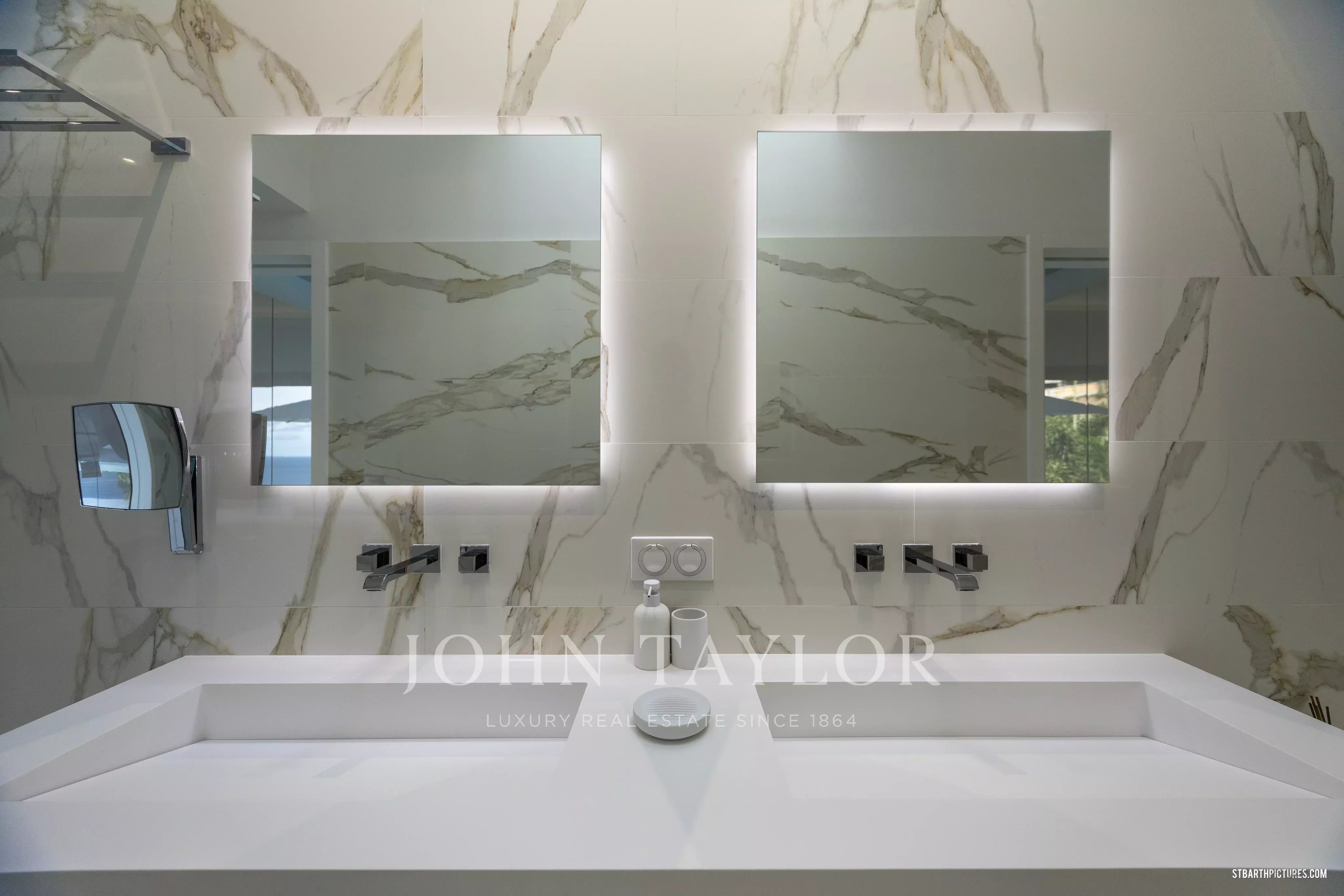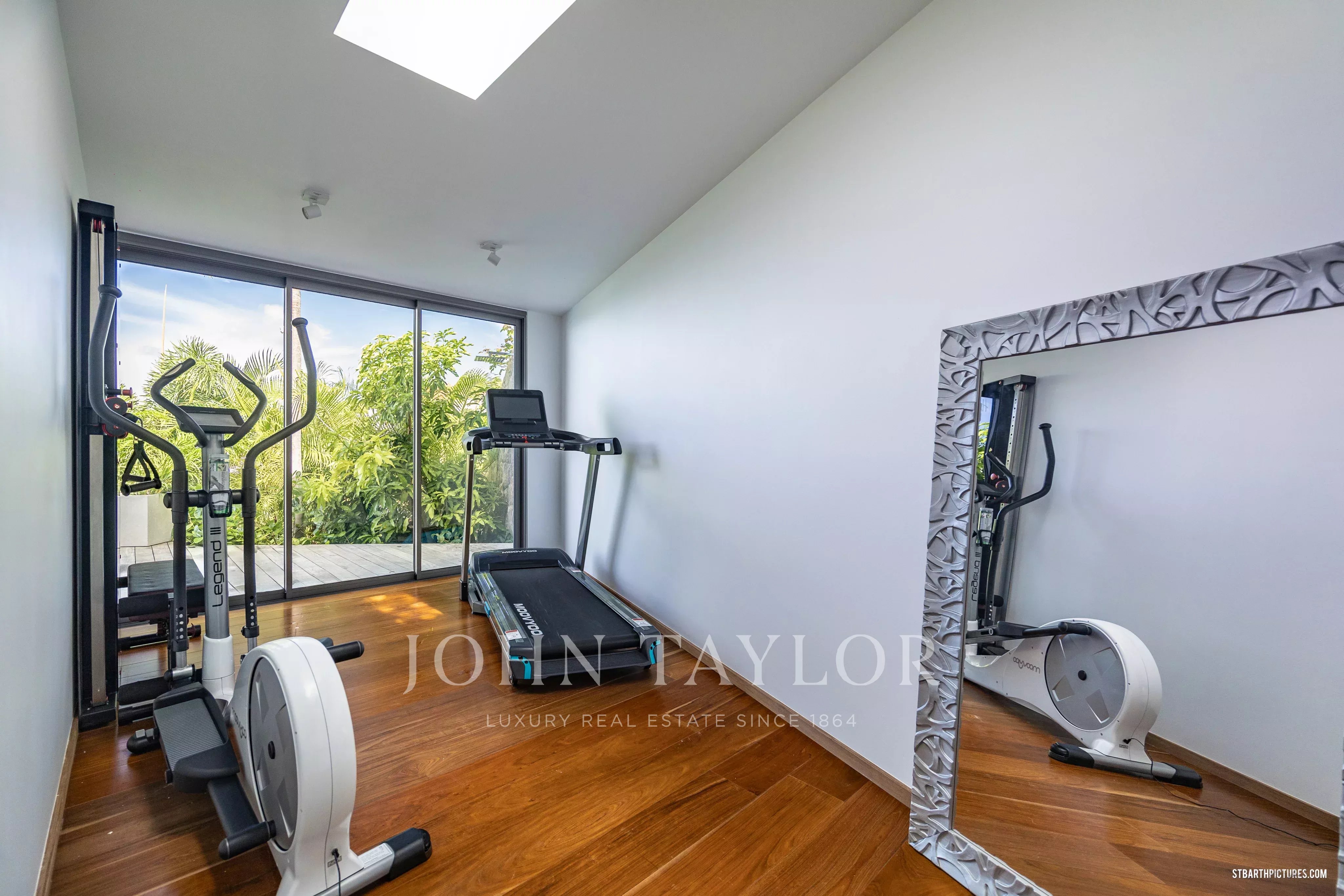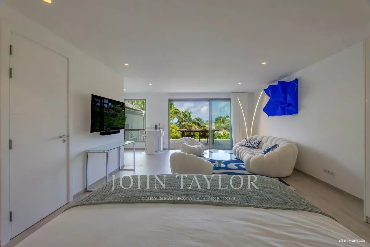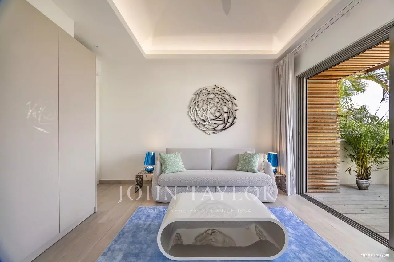 The main living areas are distinguished by their generous volumes and openness to the outdoors. The living room, fully-equipped modern kitchen and dining room are arranged around a vast terrace and elegant swimming pool, the villa's centerpiece. The whole invites refined indoor-outdoor living, typical of upscale Caribbean living.