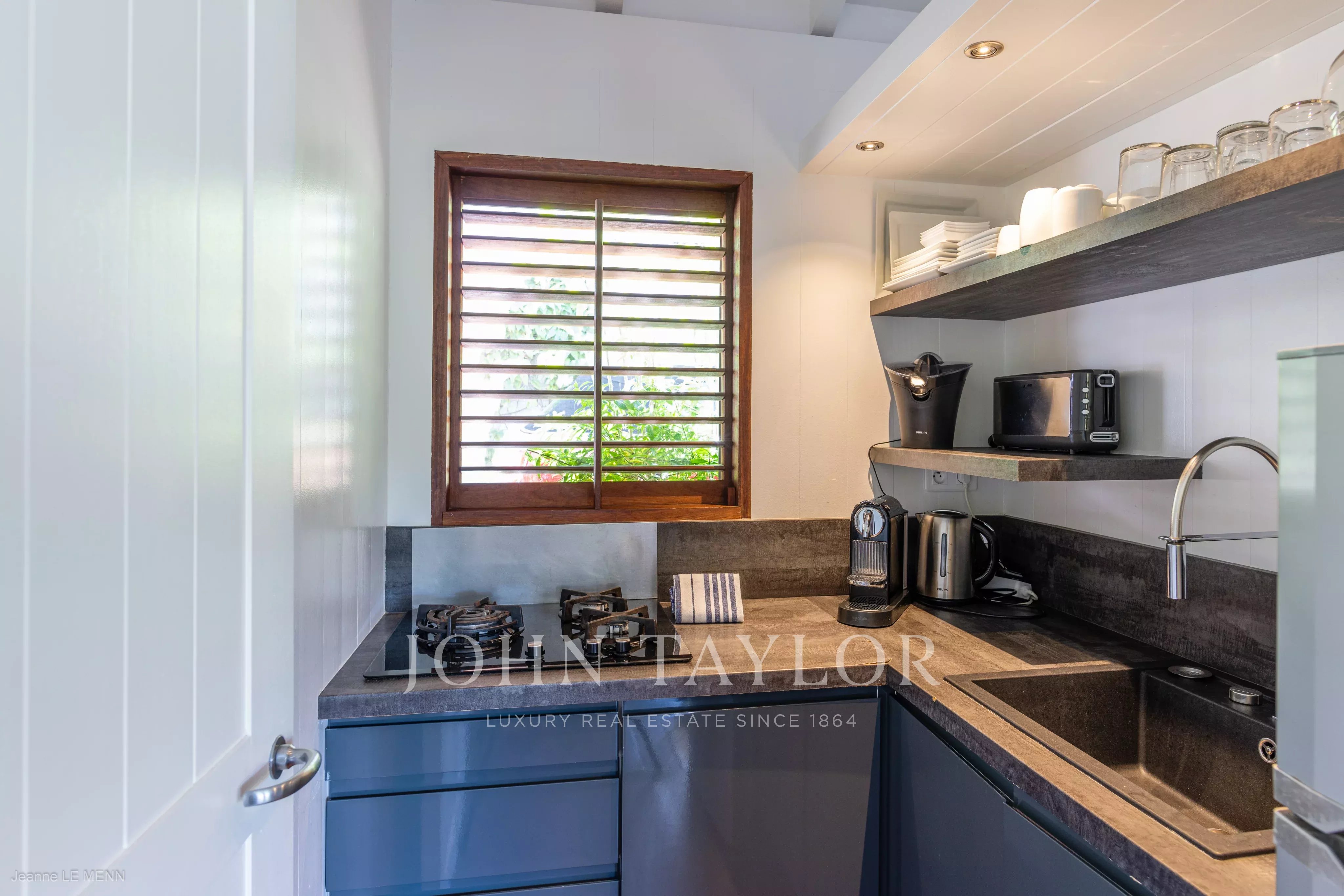 The kitchen, compact yet functional, is fully equipped to meet everyday needs, making the villa as practical as it is inviting.