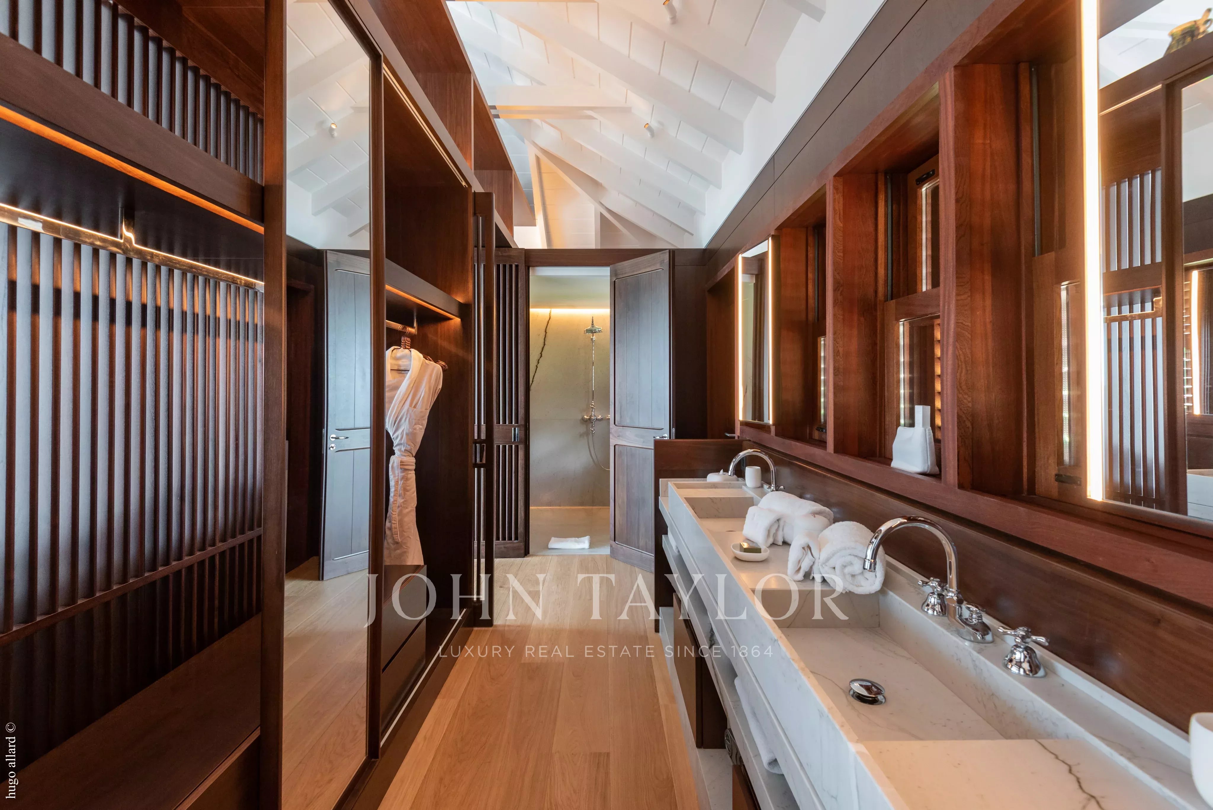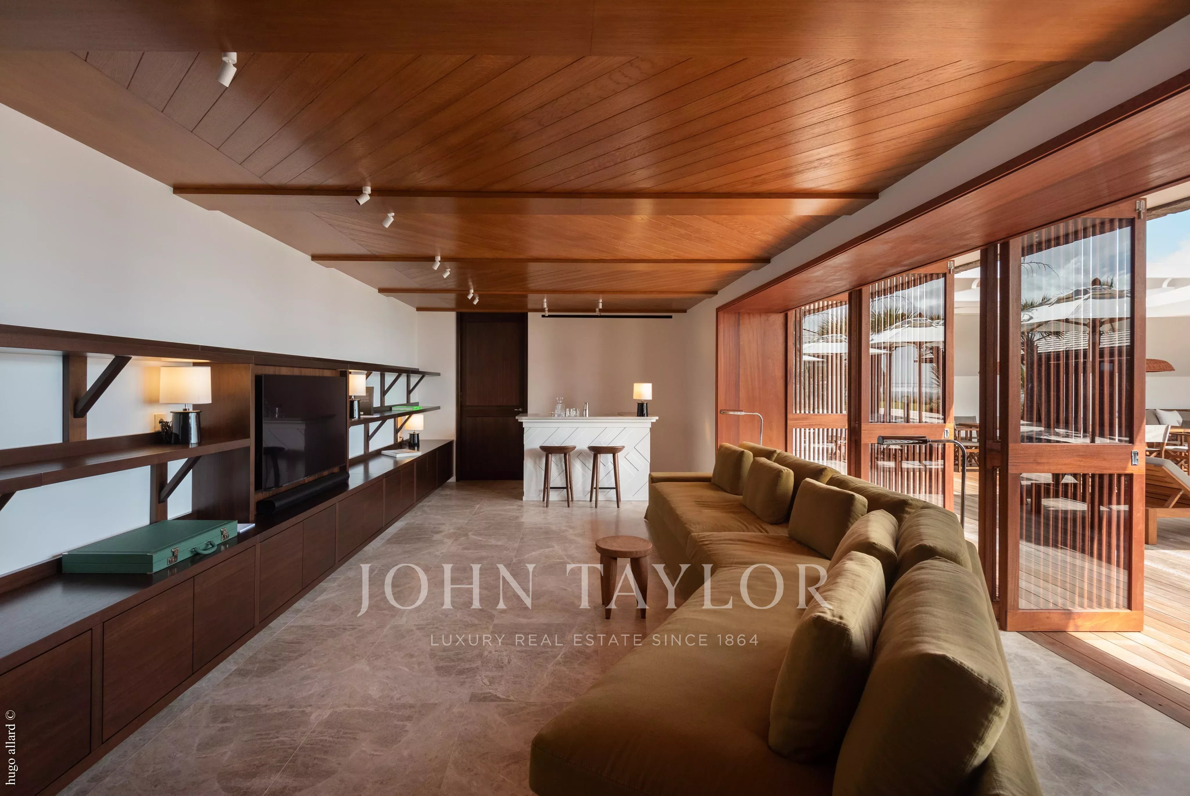 Designed around several independent pavilions centered on a heated infinity pool, the property features open and light-filled living spaces. The elegant lounge, fully equipped kitchen, and relaxation areas blend refined materials with clean, modern lines. Spacious terraces invite guests to unwind or dine outdoors while taking in the stunning sea views.