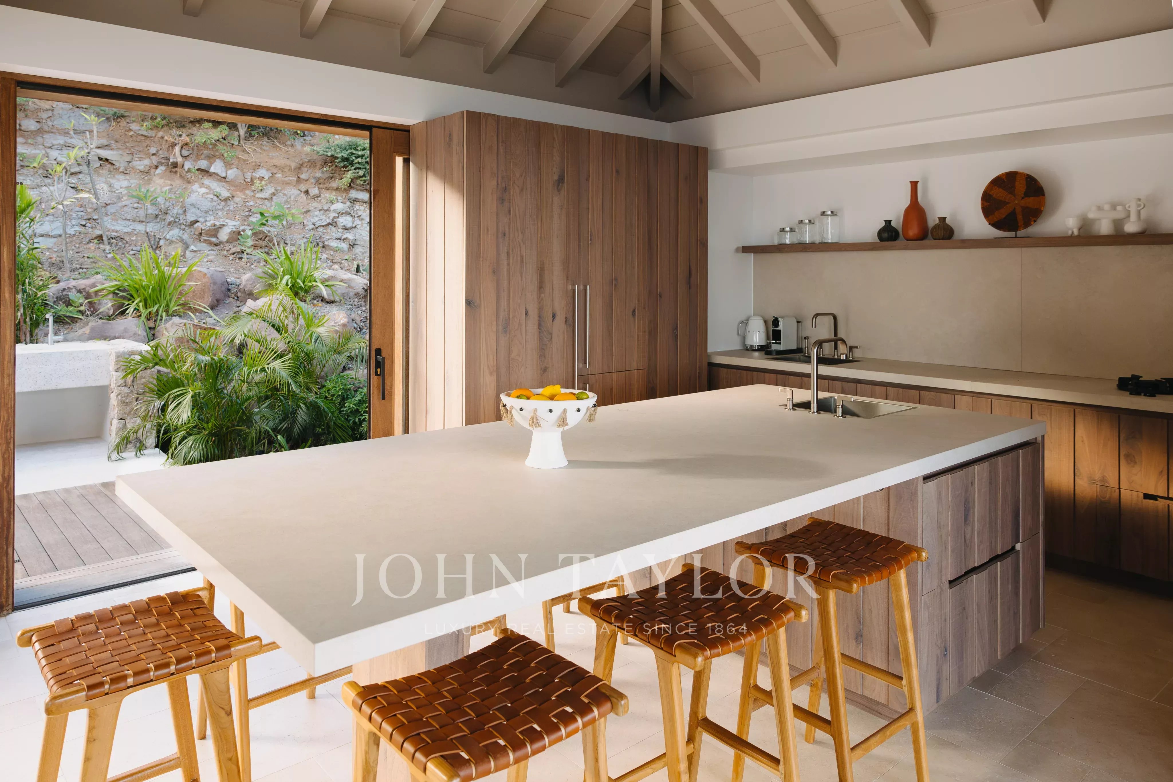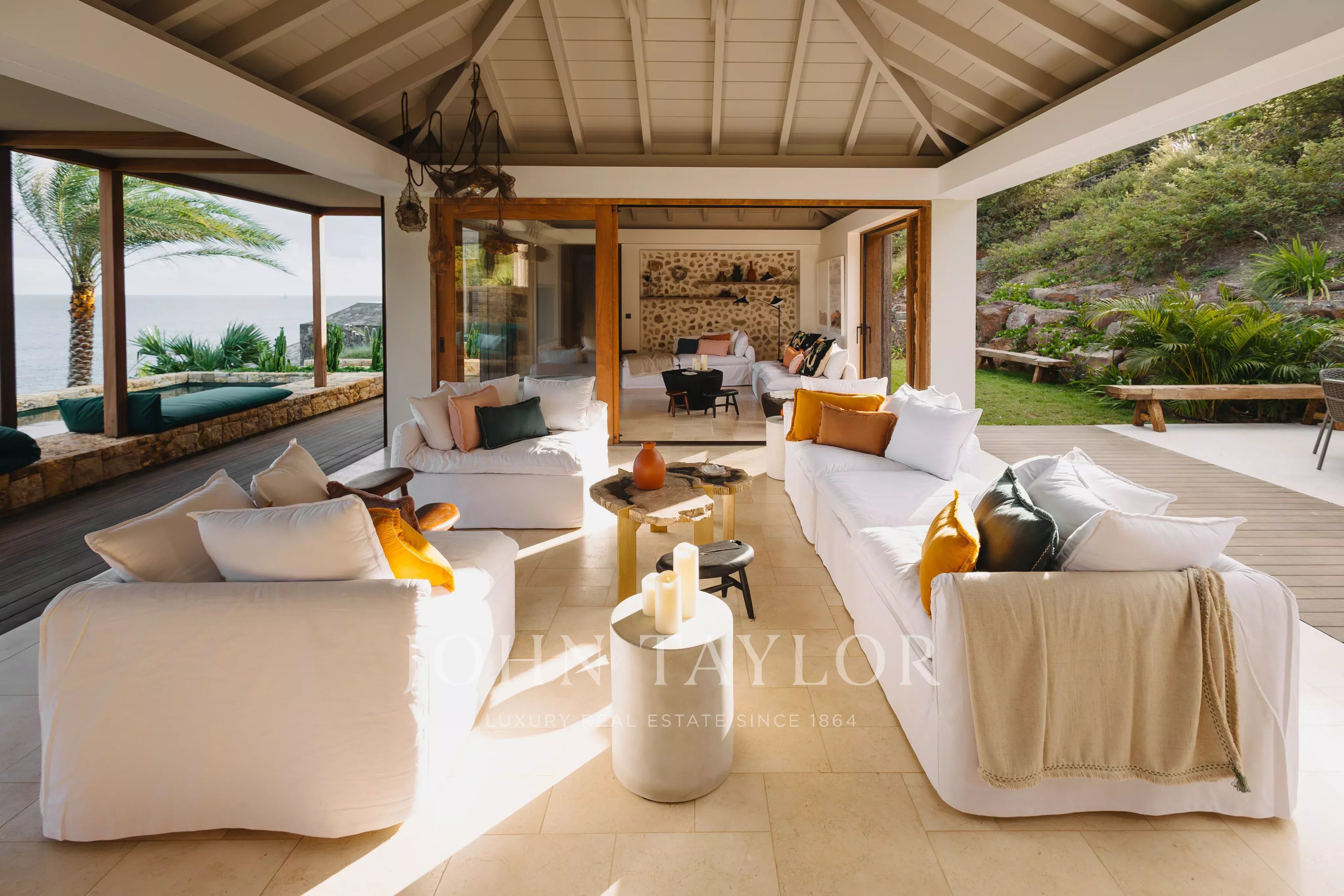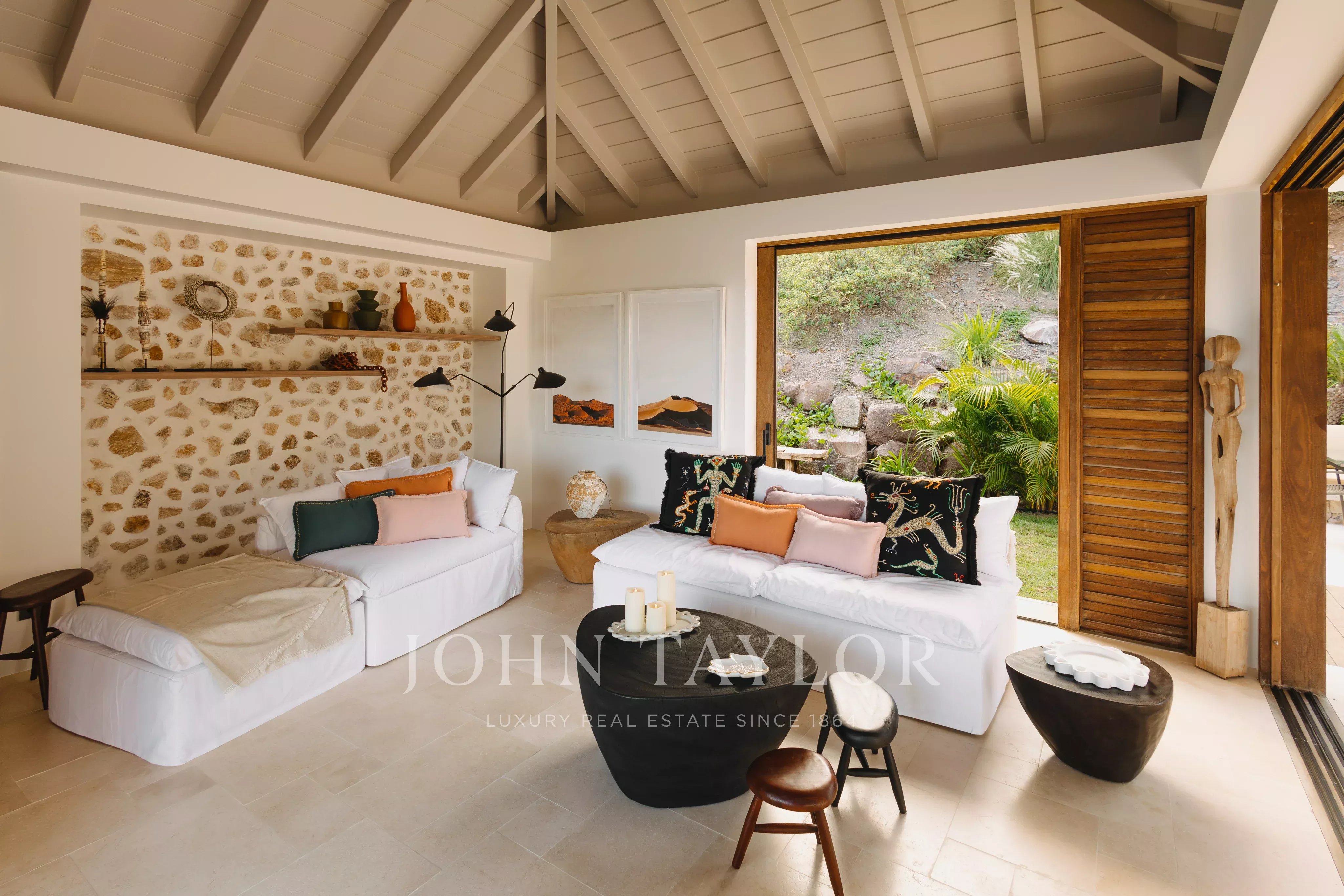 Overlooking the wild landscapes of Toiny, Villa Anima enjoys a spectacular setting between the ocean and lush hills. Its design blends natural materials with refined, elegant lines, creating an atmosphere that feels both contemporary and warm, true to the spirit of Saint-Barth.