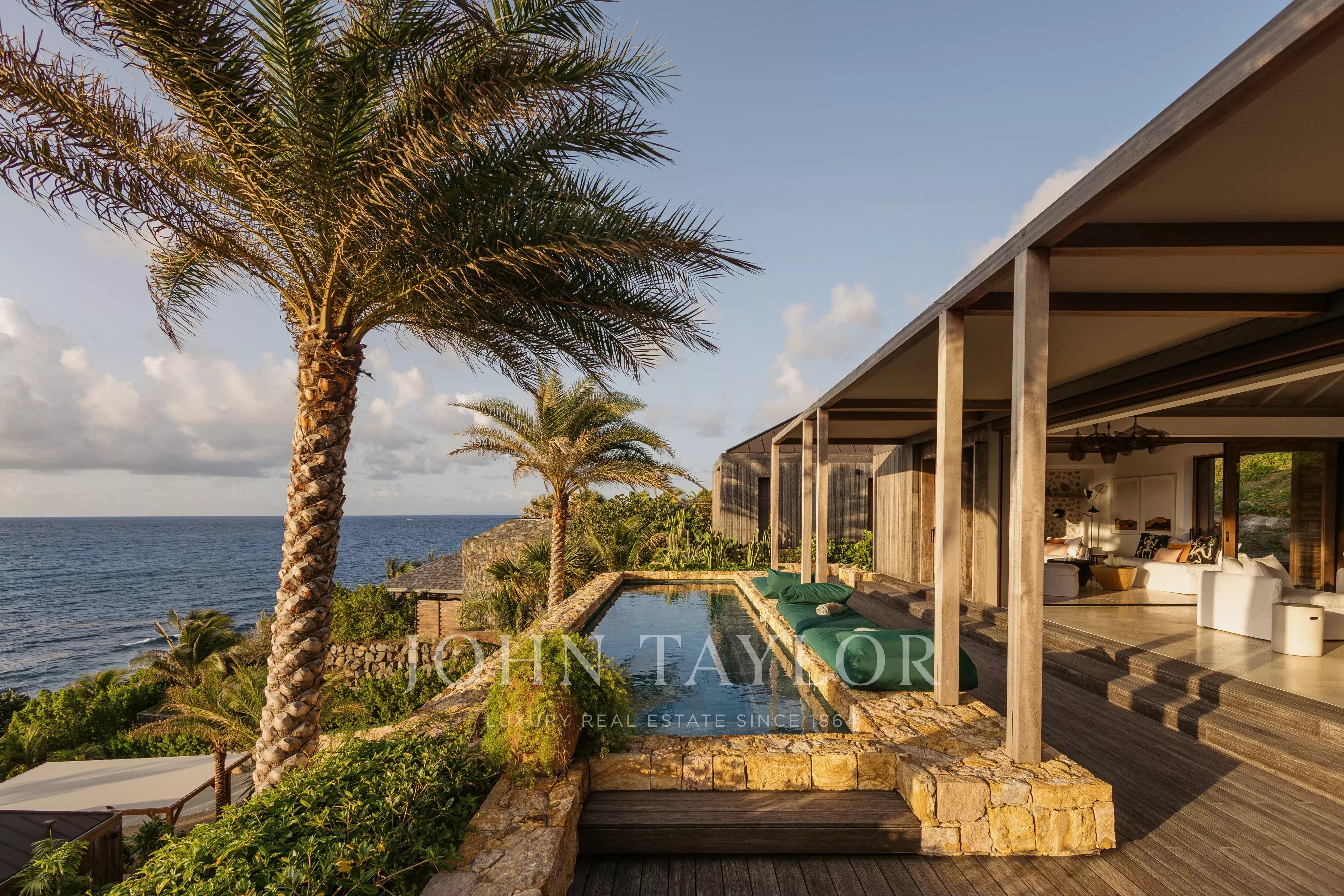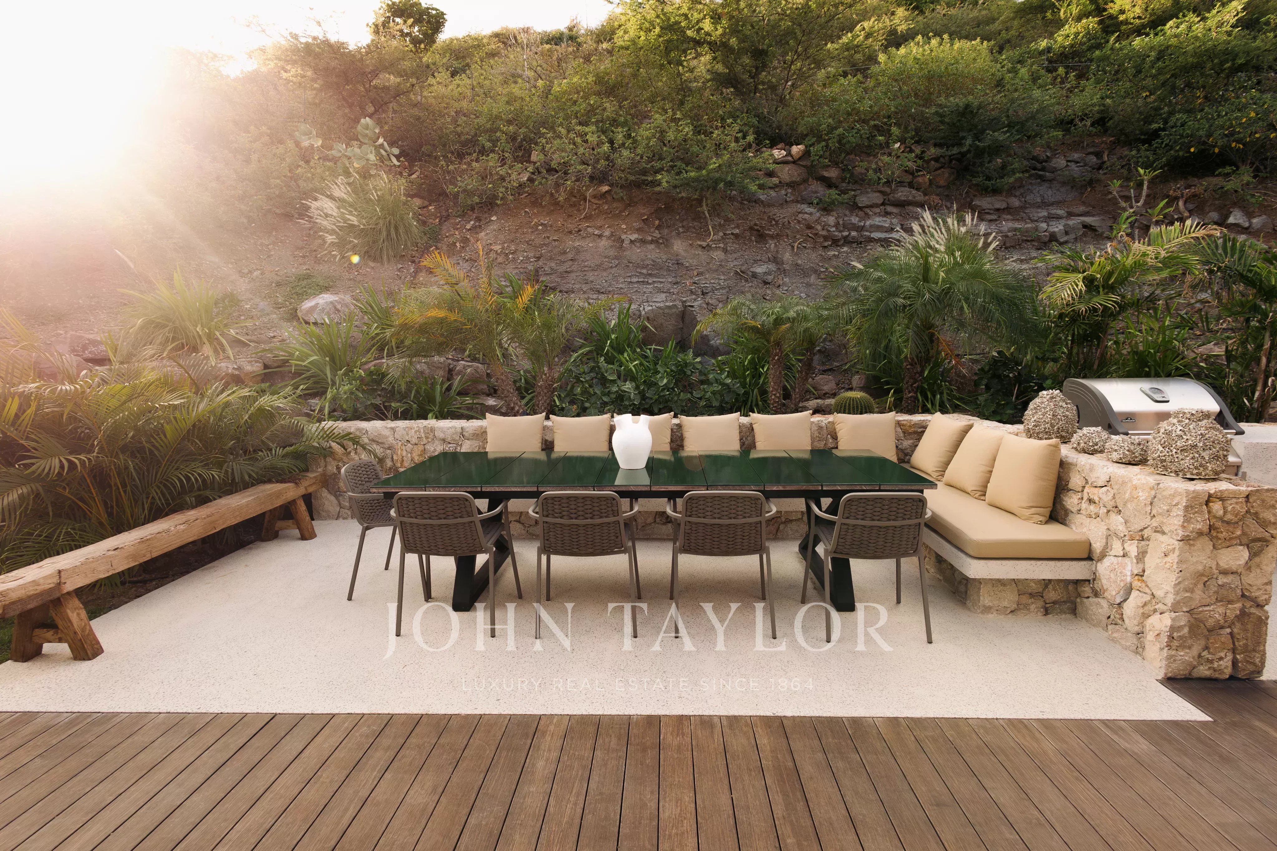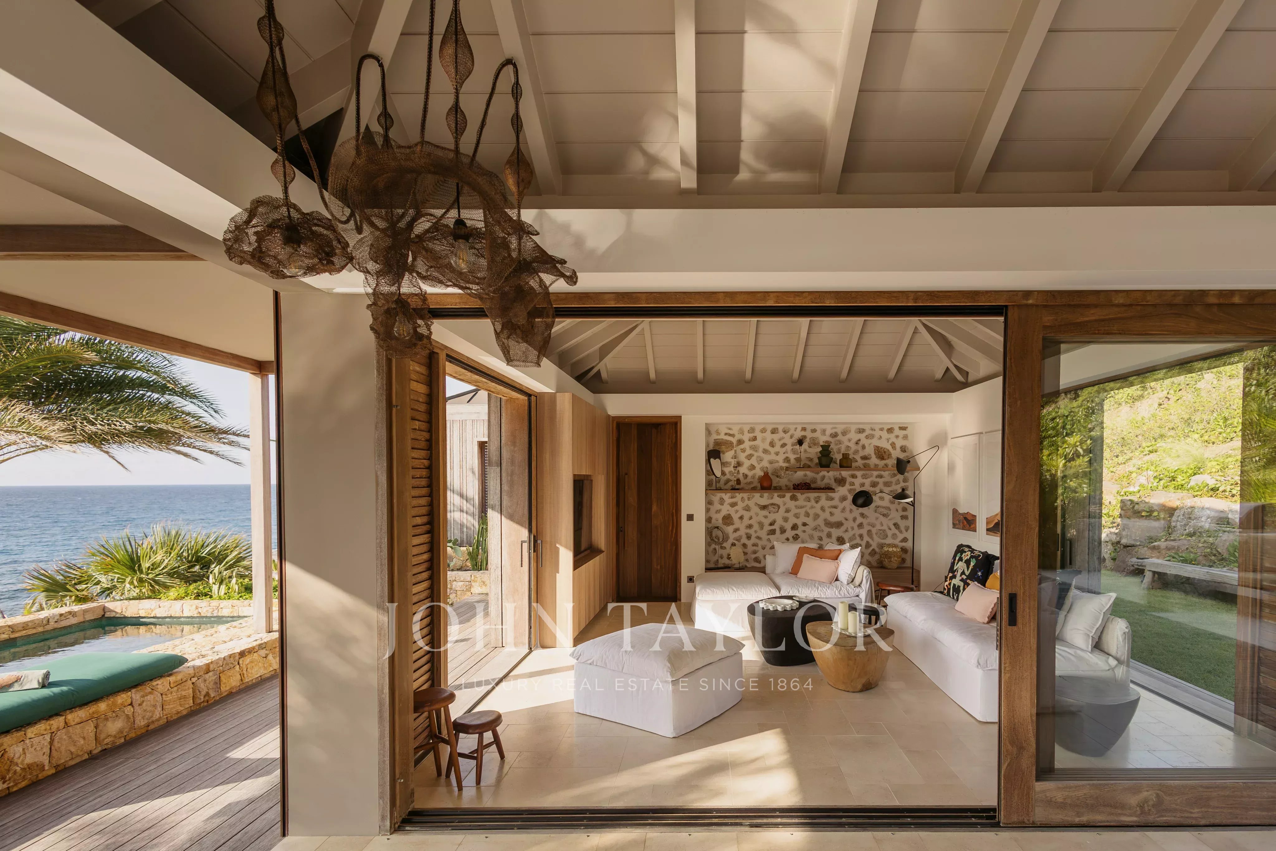 Overlooking the wild landscapes of Toiny, Villa Anima enjoys a spectacular setting between the ocean and lush hills. Its design blends natural materials with refined, elegant lines, creating an atmosphere that feels both contemporary and warm, true to the spirit of Saint-Barth.