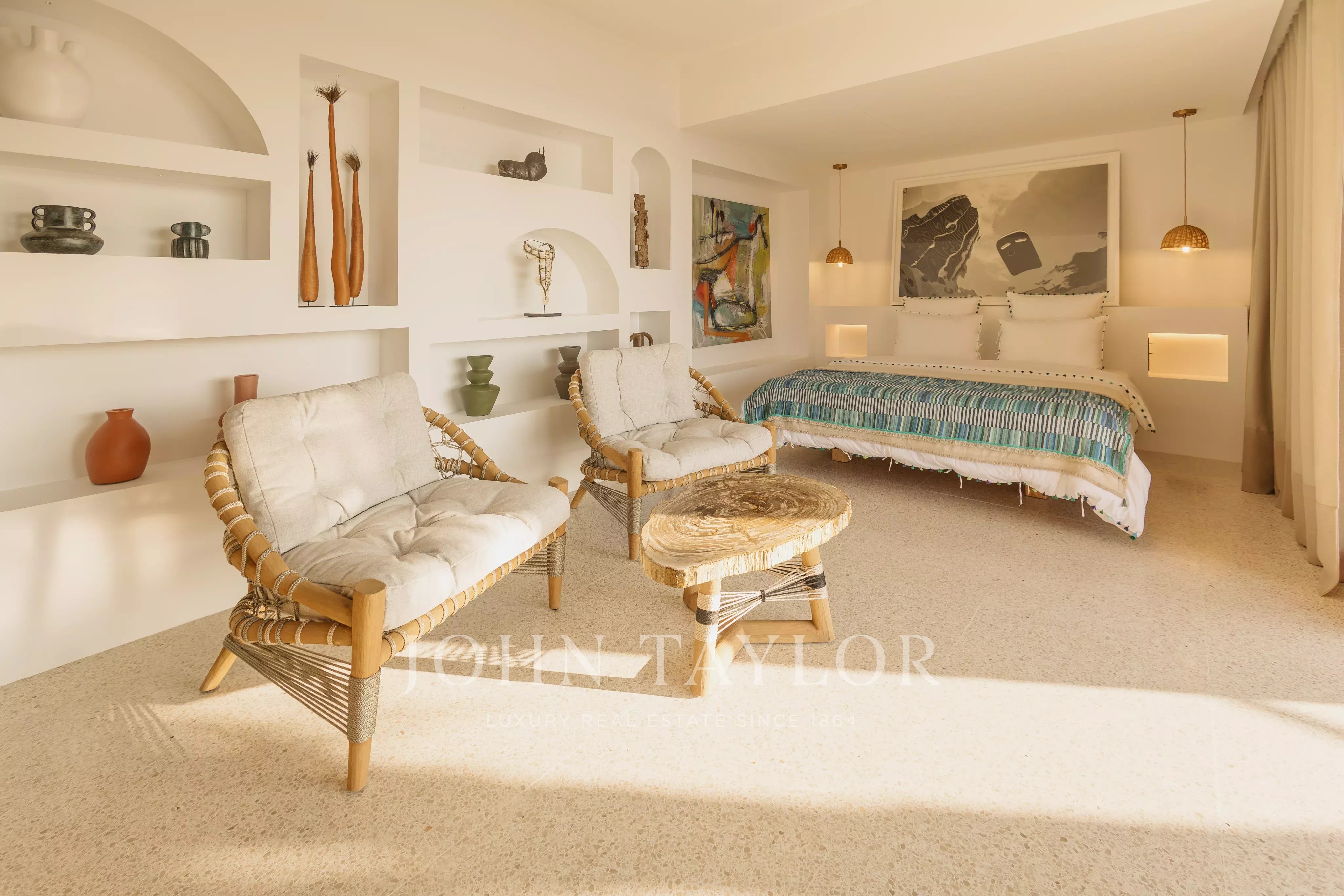 Designed with comfort in mind, the villa features bright, open spaces that flow seamlessly outdoors, with the sea as a constant backdrop. It offers four air-conditioned bedrooms, each with its own ensuite bathroom, ensuring privacy and relaxation for all.
