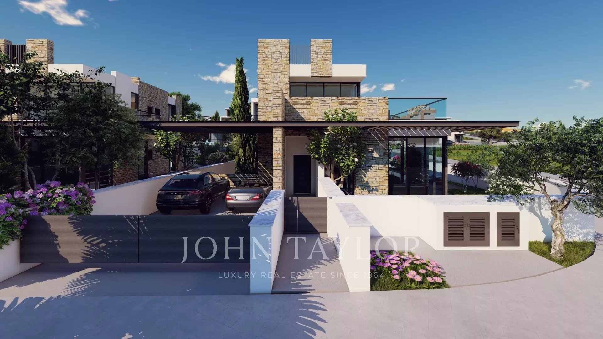 Plot 3A – 5 bedrooms, plot size 884 m², lift included, total covered area 536.7 m² including basement, verandas, and carport, €3,650,000 + VAT.