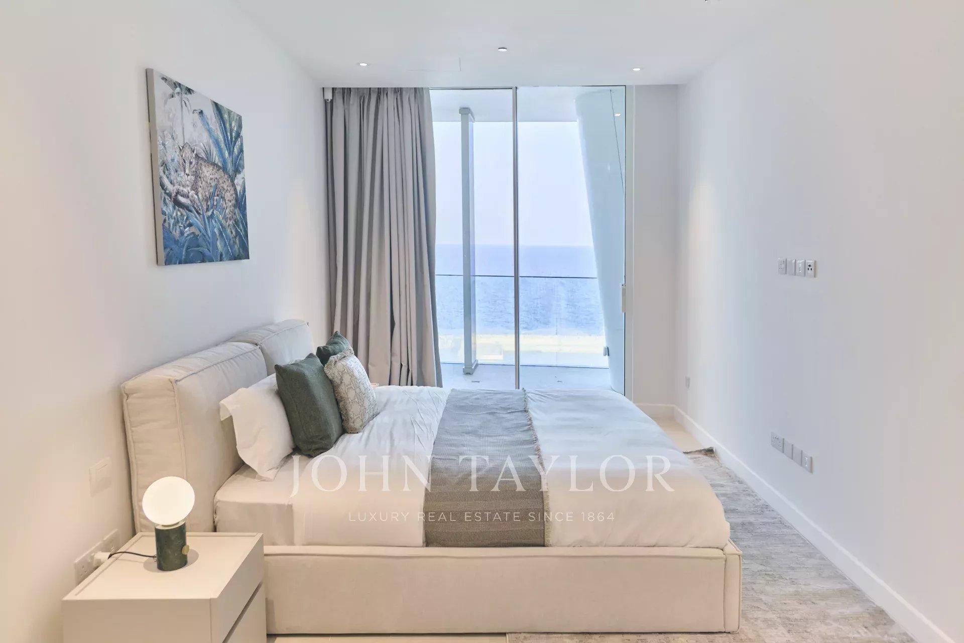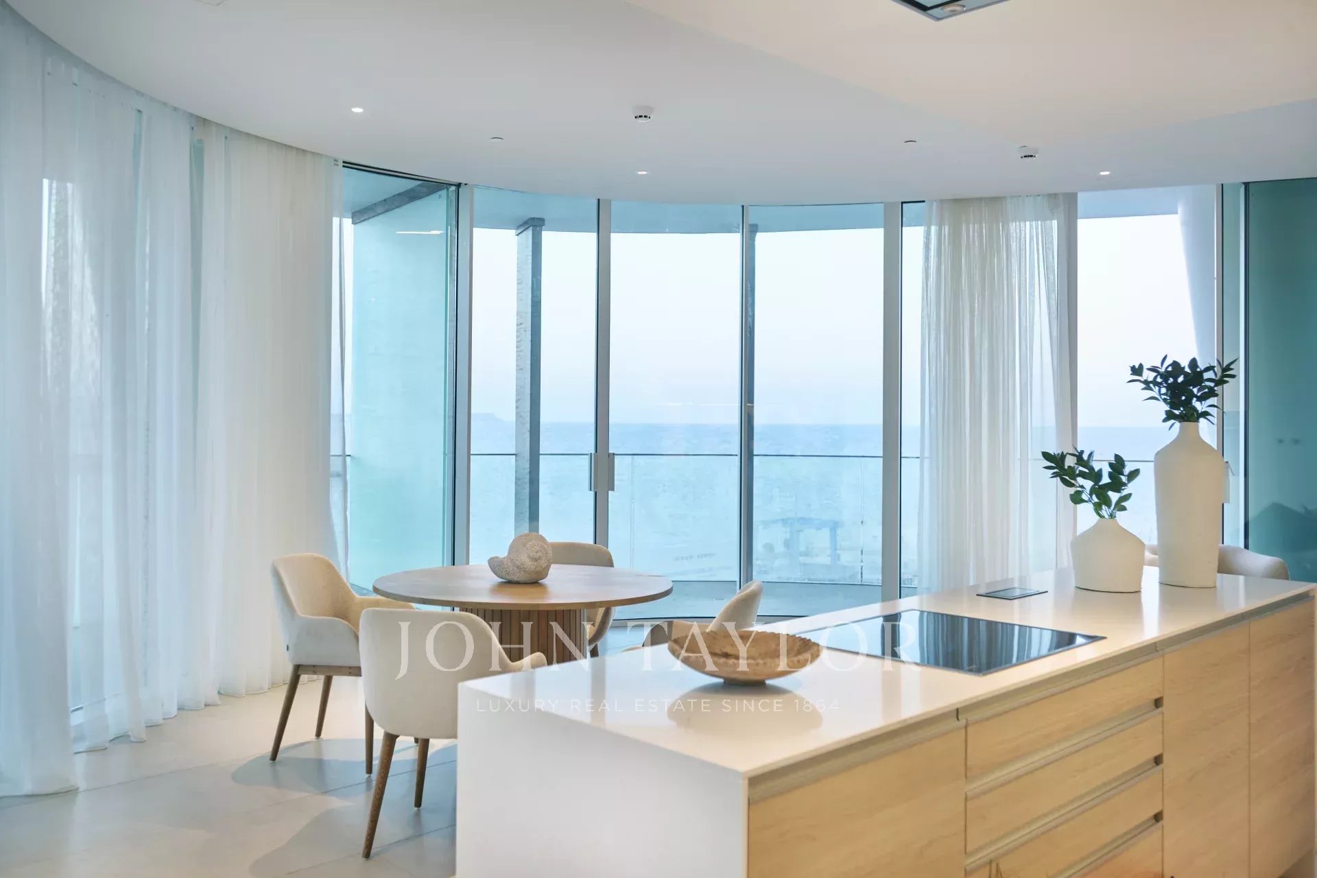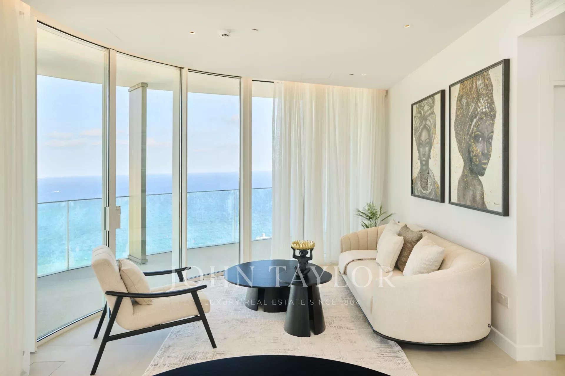 The residence offers 486 square meters of internal living space, complemented by 296 square meters of covered verandas, bringing the total covered area to 782 square meters. The existing layout includes four generously sized bedrooms, an office, a maid’s room, five bathrooms, and a guest WC, with flexibility for redesign and expansion should the second level be acquired. Two private covered parking spaces are included. Full smart-home infrastructure is pre-installed, and the apartment features underfloor heating, soaring ceilings, and floor-to-ceiling glass panels that flood the home with light and provide uninterrupted sea views from every room.