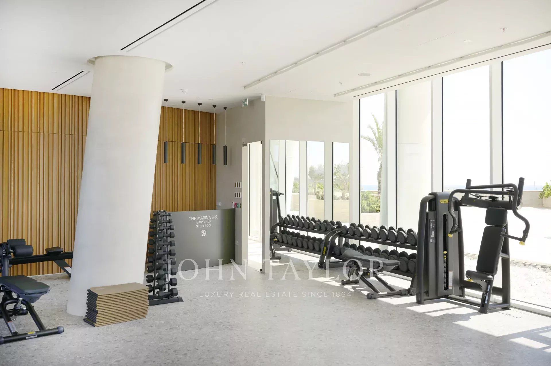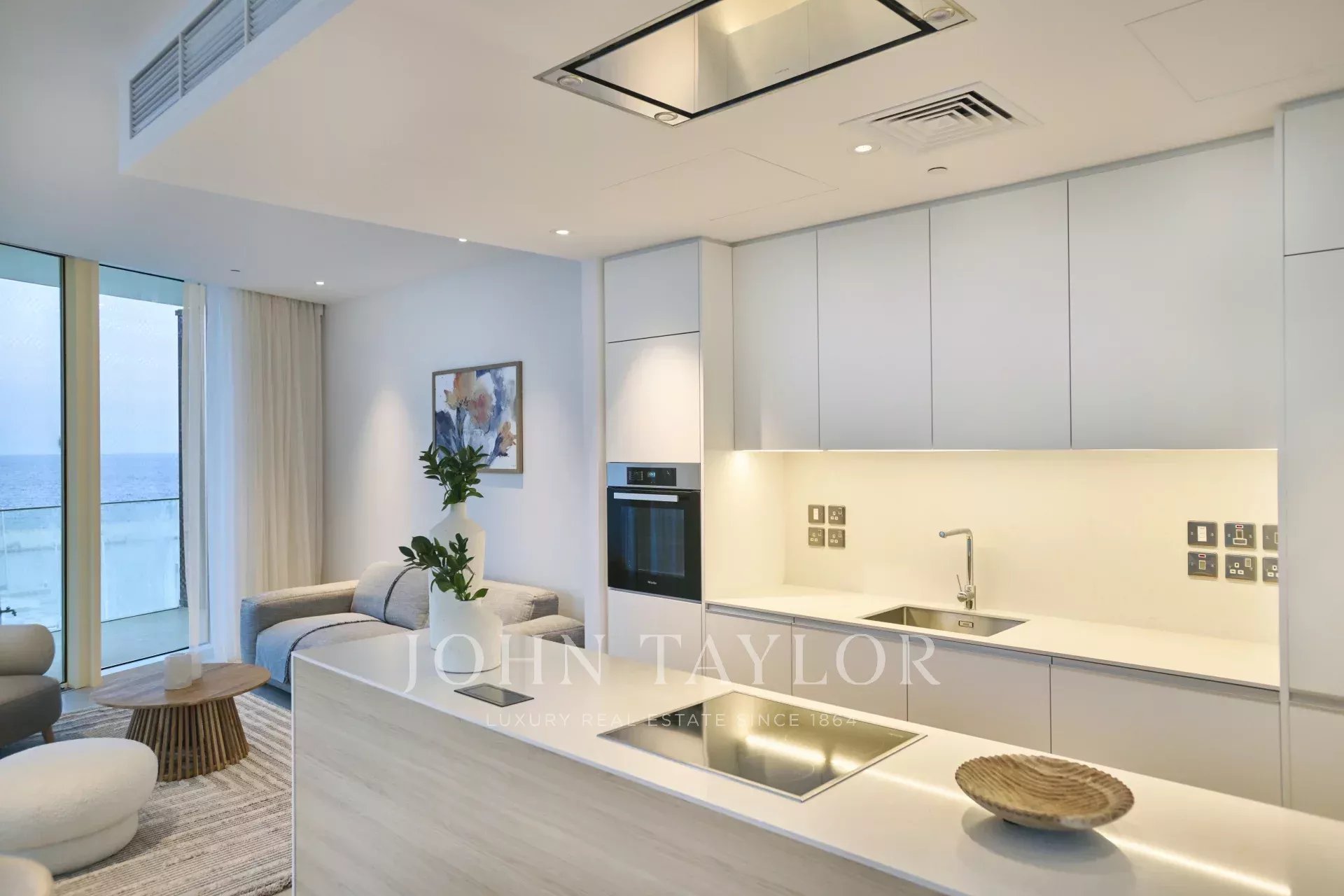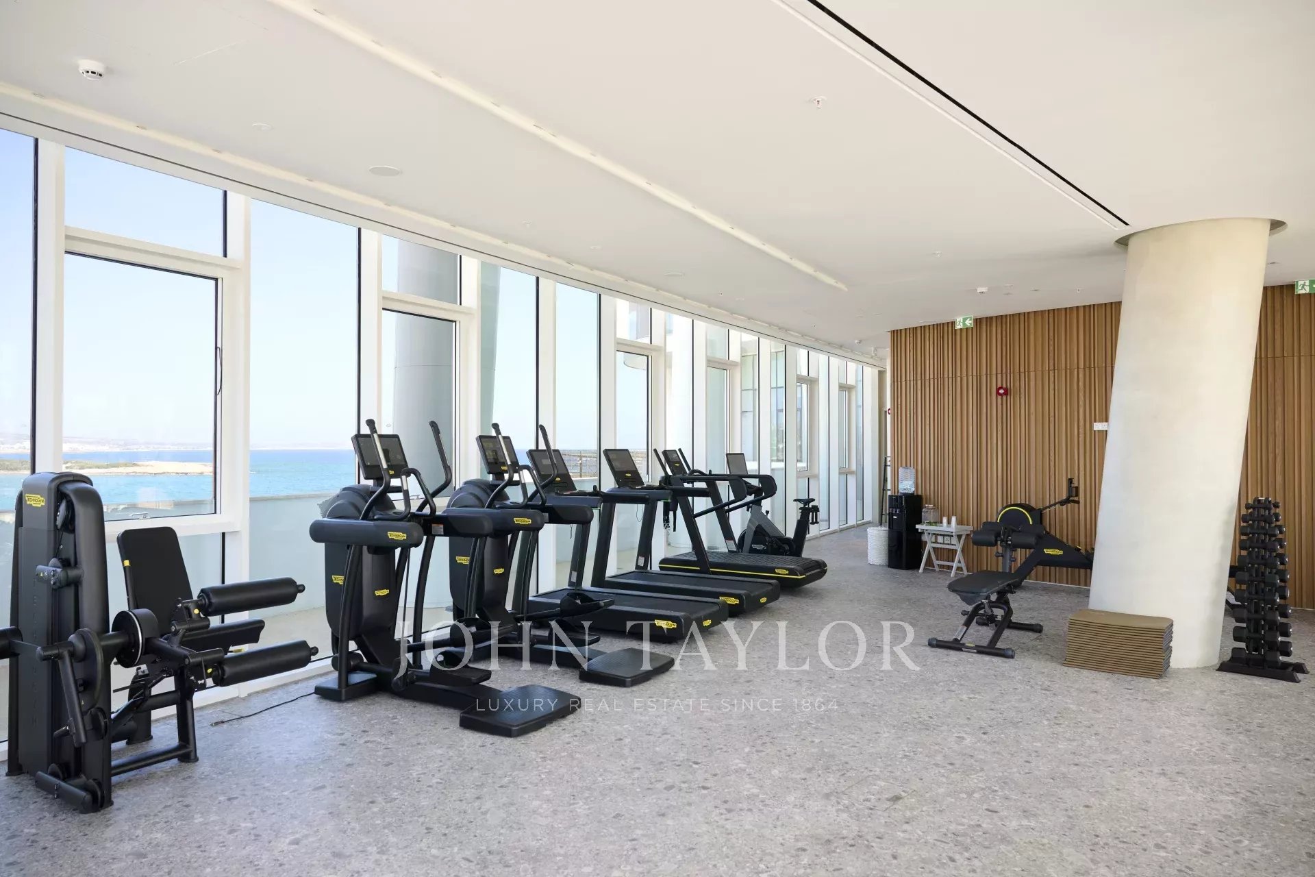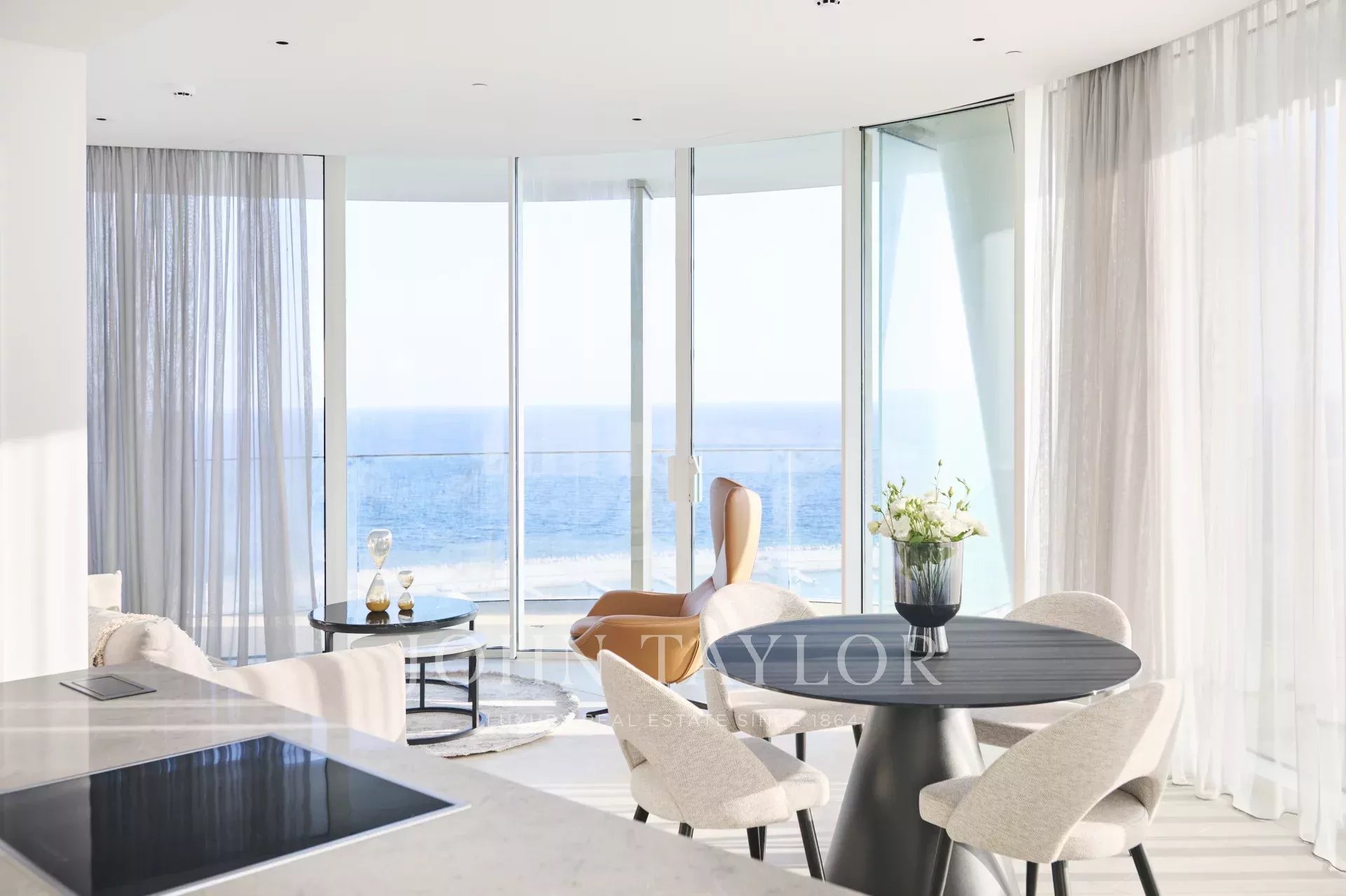 The residence offers 486 square meters of internal living space, complemented by 296 square meters of covered verandas, bringing the total covered area to 782 square meters. The existing layout includes four generously sized bedrooms, an office, a maid’s room, five bathrooms, and a guest WC, with flexibility for redesign and expansion should the second level be acquired. Two private covered parking spaces are included. Full smart-home infrastructure is pre-installed, and the apartment features underfloor heating, soaring ceilings, and floor-to-ceiling glass panels that flood the home with light and provide uninterrupted sea views from every room.