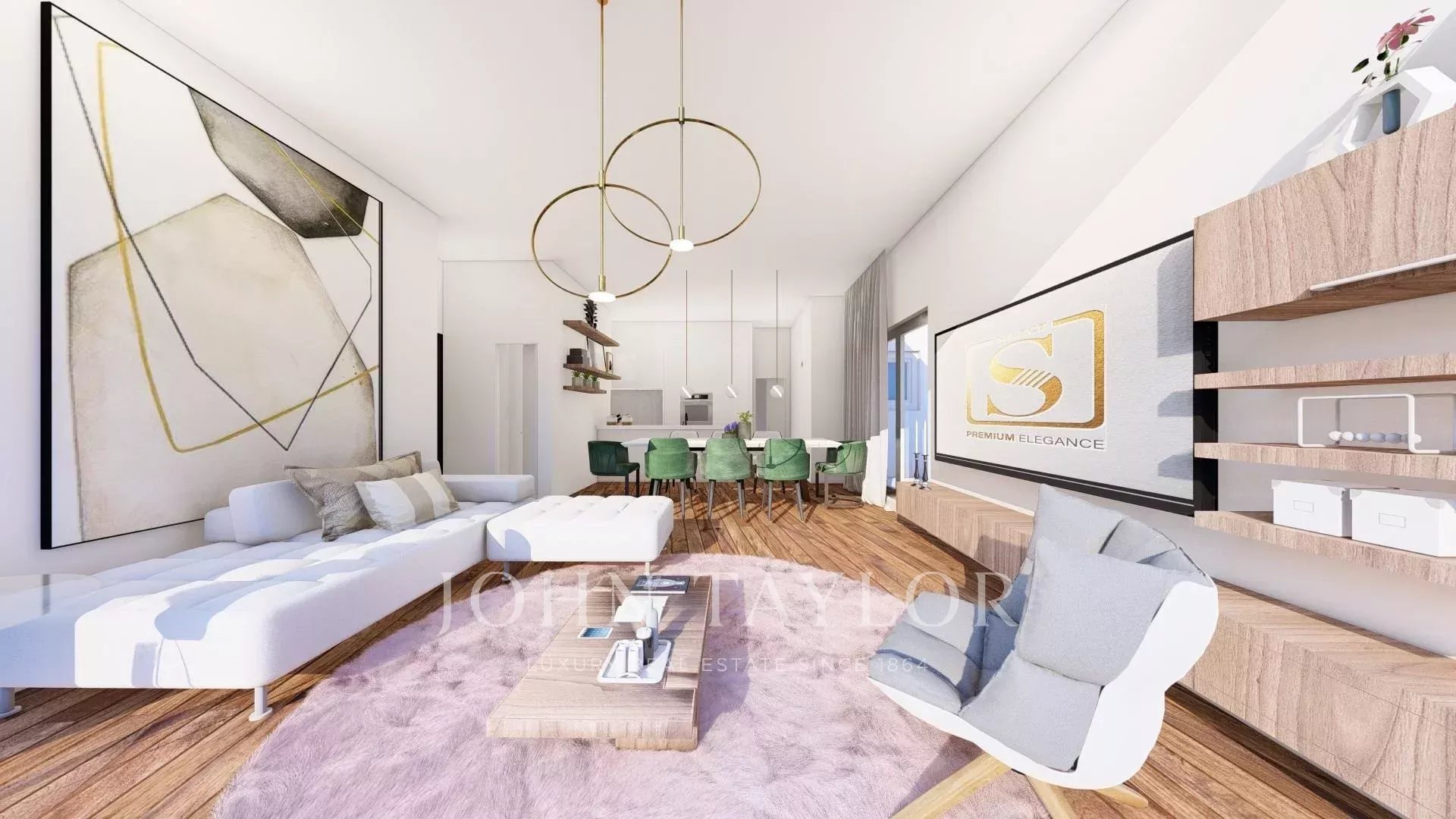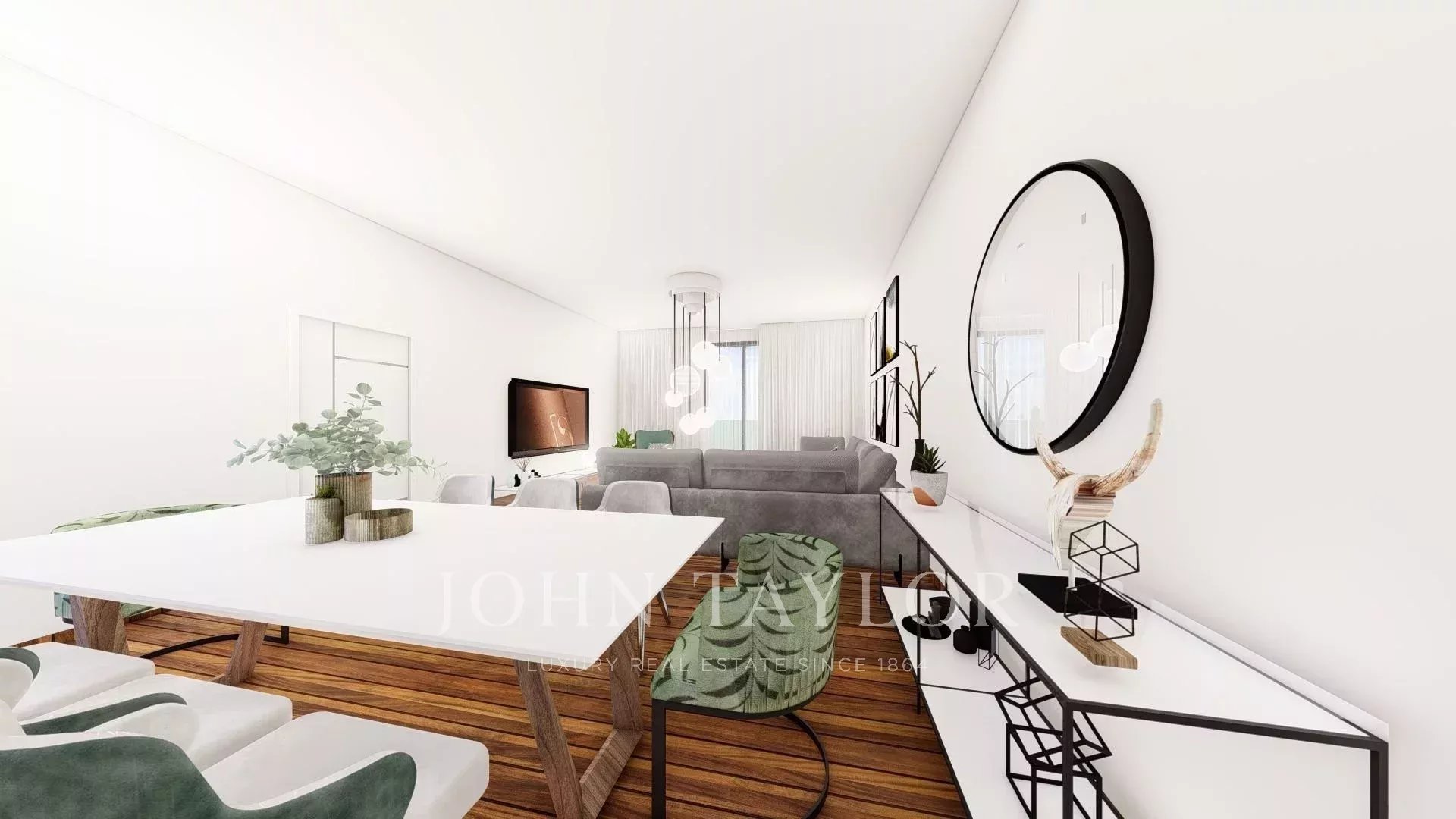 Interiors are finished to a high standard with premium flooring, modern fittings, and elegant details. Provisions for underfloor heating and advanced air-conditioning systems ensure year-round comfort. The building is designed with sustainability in mind and achieves an energy efficiency rating of Class A.