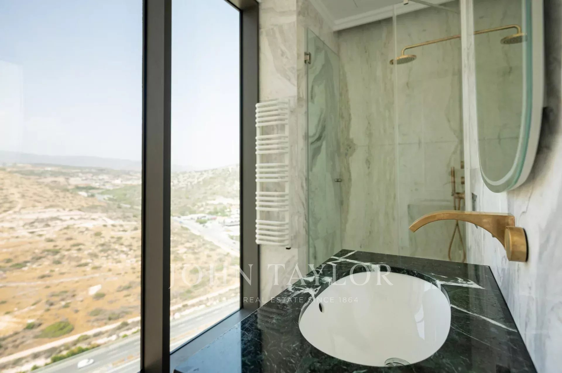 The penthouse is appointed to the highest European standards, featuring VRV Daikin climate control, Villeroy & Boch sanitary ware, fully equipped Miele kitchens, and a KNX smart home system for total control of lighting, climate, and security. Marble and travertine exterior insulation provide exceptional soundproofing and thermal efficiency, complemented by internal and external brick walls without plasterboard. A state-of-the-art supply and exhaust ventilation system with heat exchangers—unique in Cyprus—works in harmony with Siemens underfloor heating and Daikin VRV cooling to ensure year-round comfort.