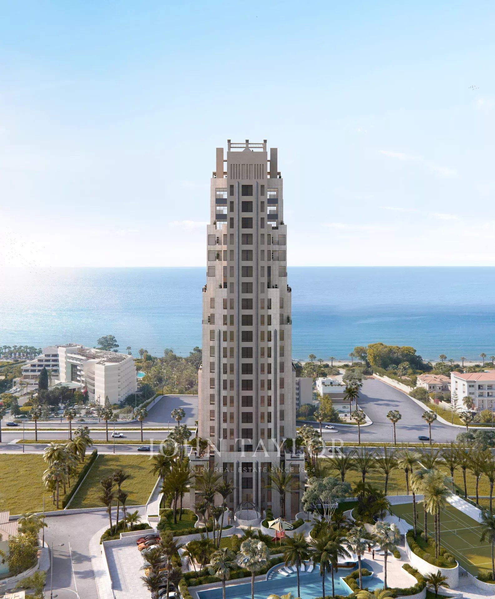 Located in the prestigious eastern seafront district of Limassol, directly adjacent to five-star resorts and fine dining venues, the residence enjoys immediate access to the promenade and is only minutes from the marina. The architecture reflects bold Art Deco inspiration, highlighted by a naturally polished travertine façade and a dynamic lighting concept by Osram, a first for the country. Designed by a renowned UK architectural studio and surrounded by lush landscaping curated by Boon Brown, the development features a private piazza that enhances its club-style atmosphere.