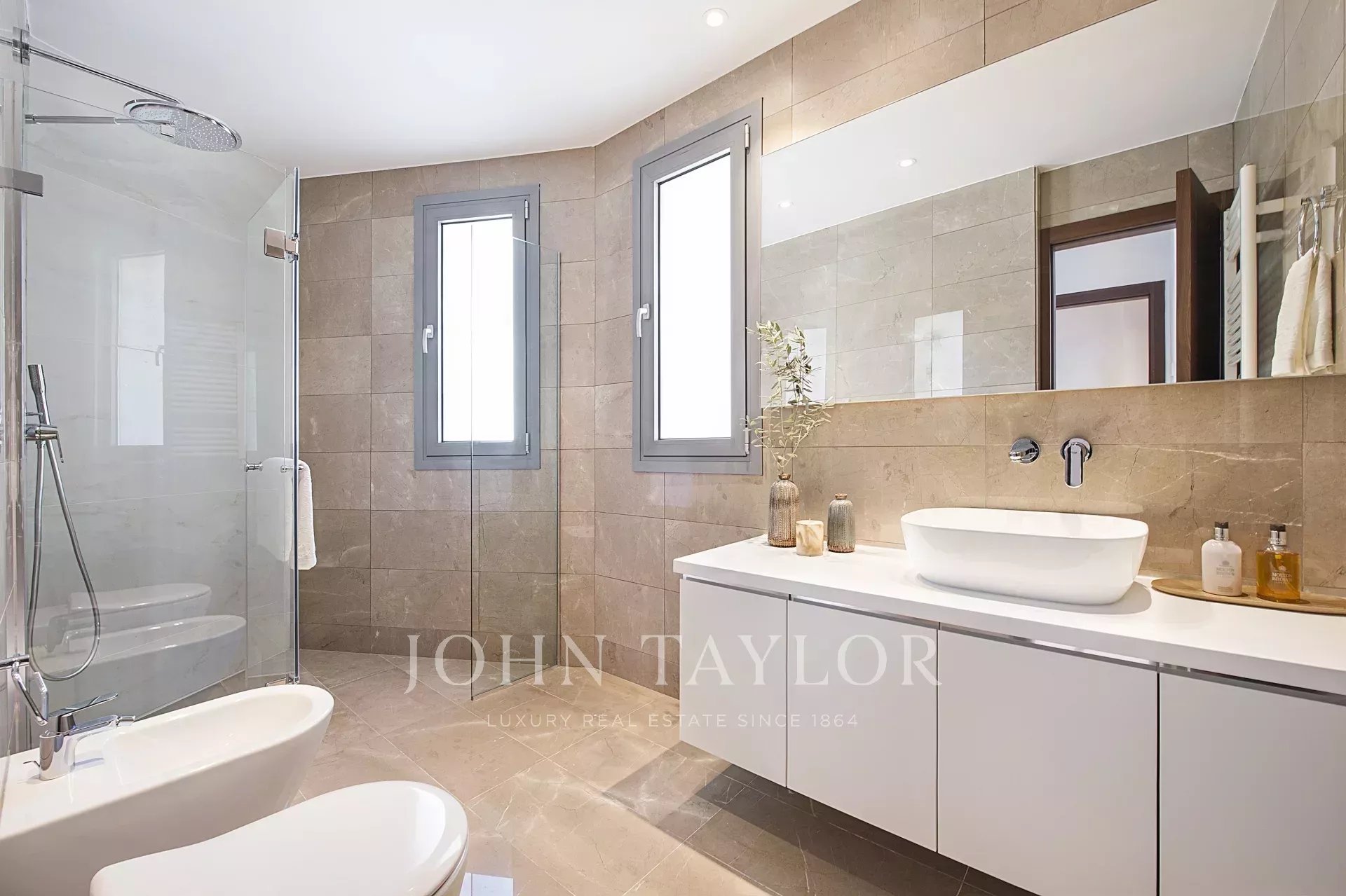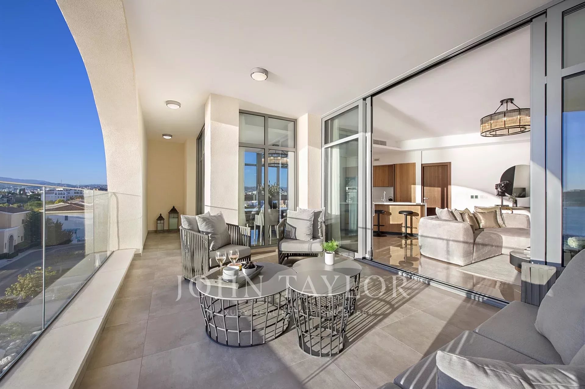 Finished to the highest standards, the residence features elegant marble flooring, underfloor heating, double-glazed windows with electric shutters, bespoke imported kitchens with Corian countertops and integrated appliances, and tastefully designed marble-clad bathrooms.
