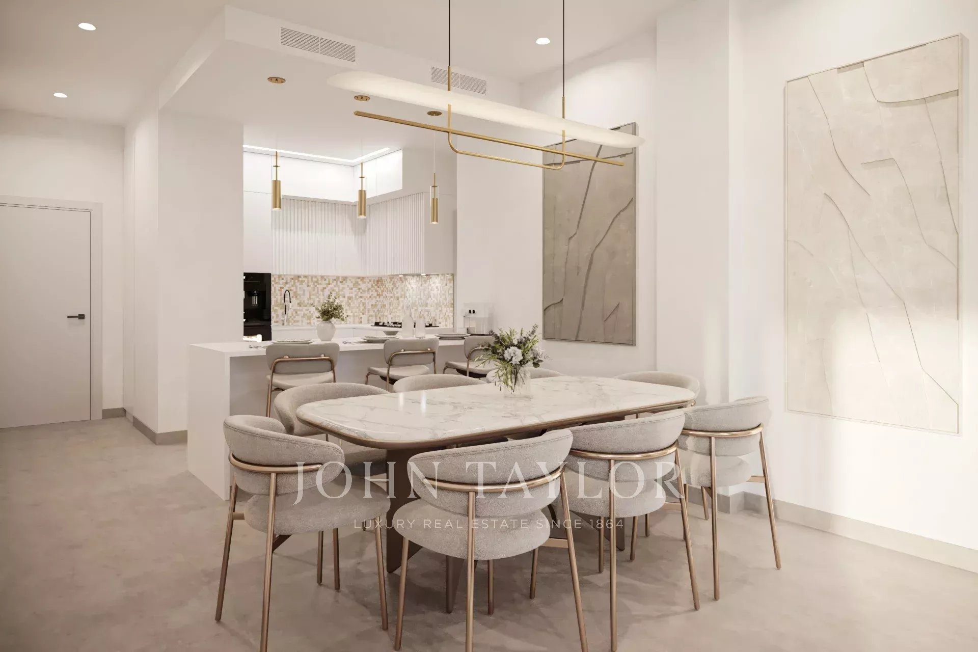 Each apartment is crafted with meticulous attention to detail. Three-meter ceilings create bright, airy interiors, while water-based underfloor heating ensures year-round comfort. Spacious verandas extend the living areas outdoors, and every home comes with covered parking and a private storage room. A shared rooftop garden with panoramic views offers an inviting communal retreat.