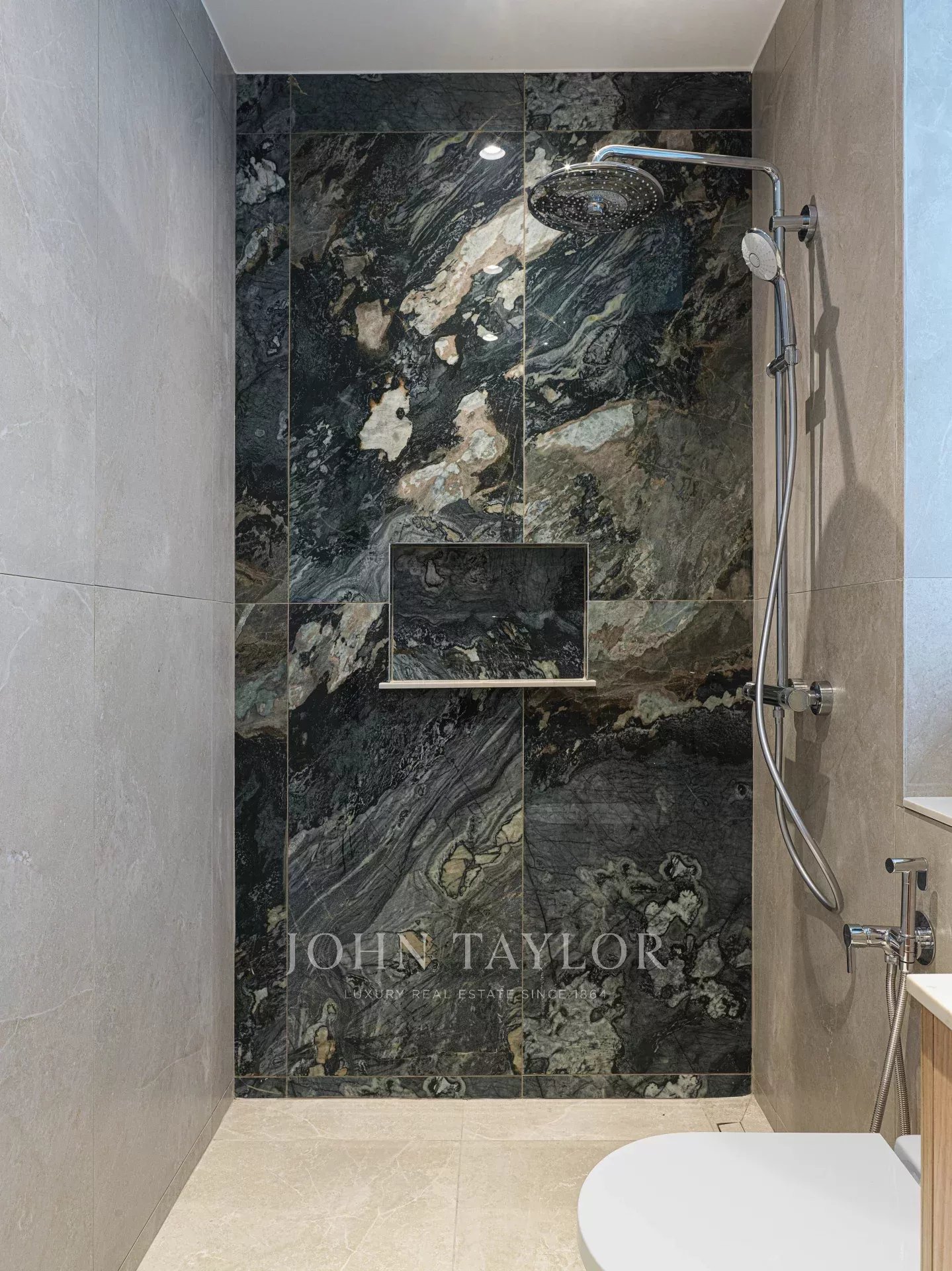 The development offers a range of thoughtfully designed apartments to maximize natural light, with spacious interiors, large verandas, and high-quality specifications. Private parking and storage are included with each home. Penthouse residences crown the building, offering panoramic views and expansive roof terraces with private swimming pools. Residents can enjoy common swimming and children's pools, a playground, and a gym.