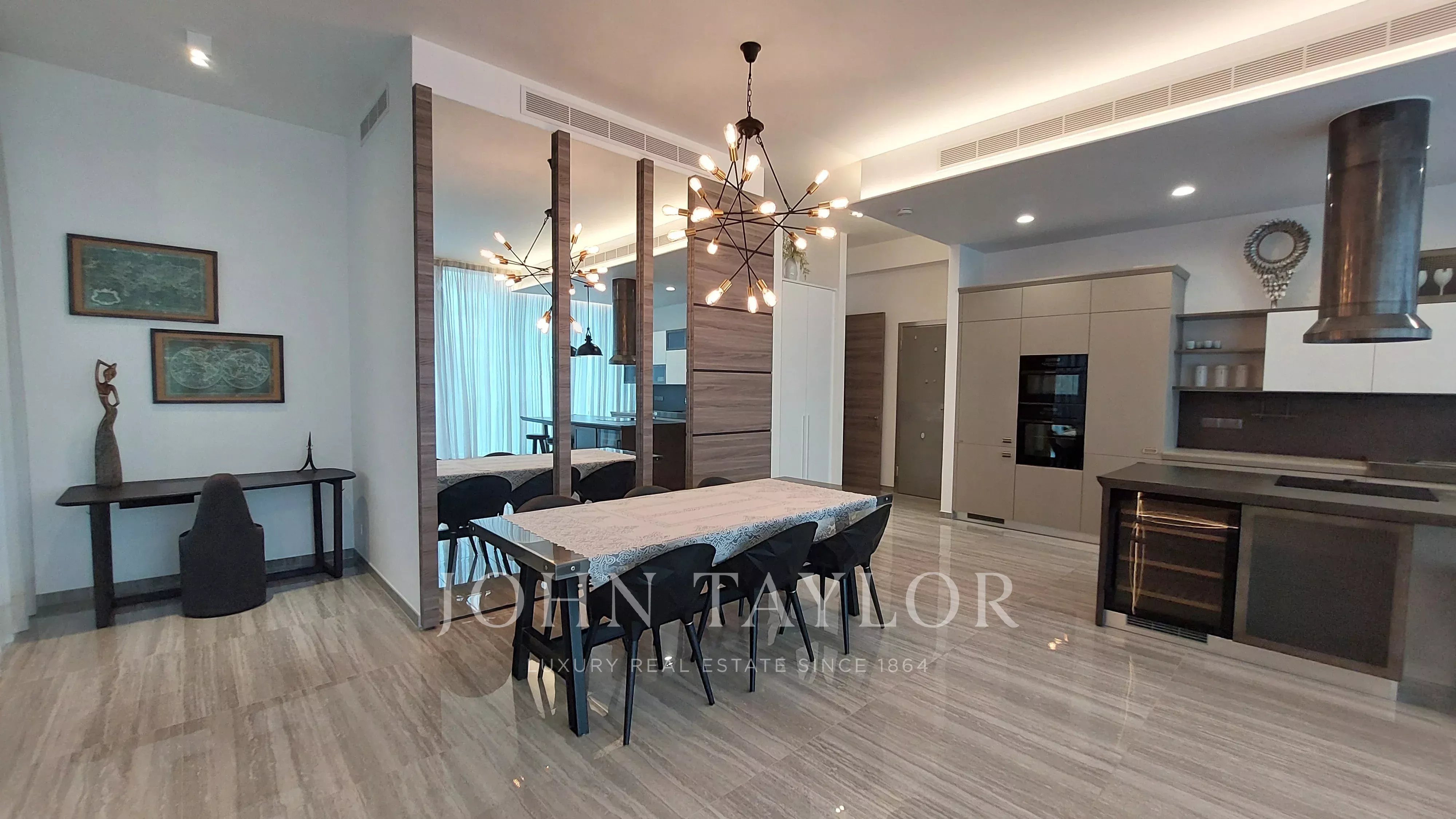 The apartment embodies a high standard of design and craftsmanship, featuring carefully selected materials and finishes from premier European brands. It comes equipped with underfloor heating, an advanced VRV air-conditioning system with concealed units, Scavolini kitchens and bathroom fittings, Atlas Concorde tiles, a secure fire-rated entrance door, and frameless internal doors for a clean architectural look.