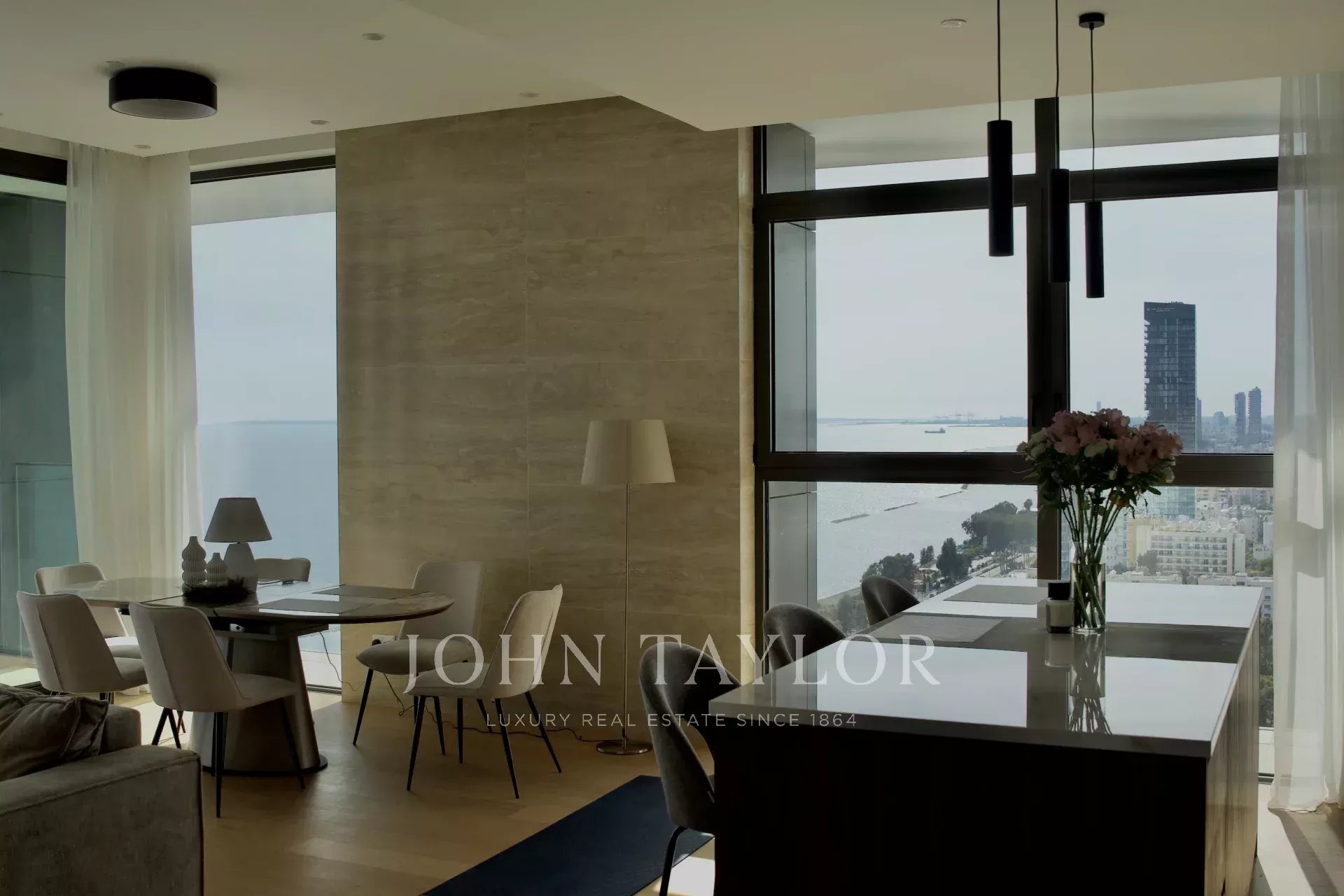 This exquisite 3-bedroom apartment is located on the 23rd floor of one of Limassol's most prestigious residential landmarks, offering a truly elevated coastal lifestyle. With breathtaking panoramic sea views and a west-facing orientation, the residence captures golden sunsets over the Mediterranean, filling the interiors with natural light and warmth.