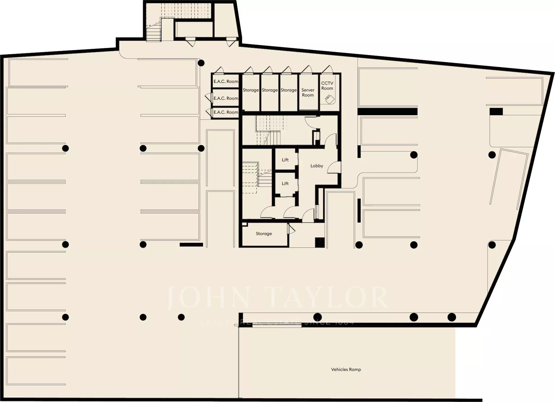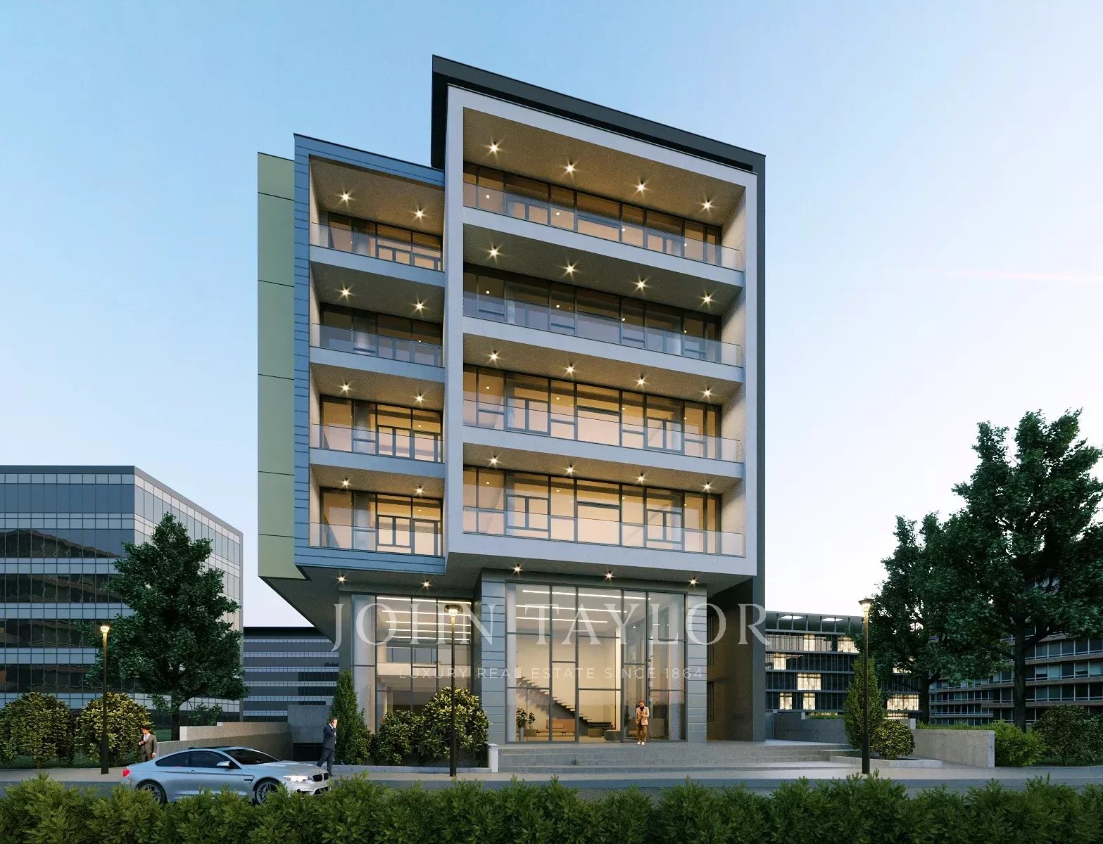 Residents and professionals enjoy a stylish reception area, dedicated office entrance, underground parking, private storage facilities, and a prominent commercial profile within the complex.