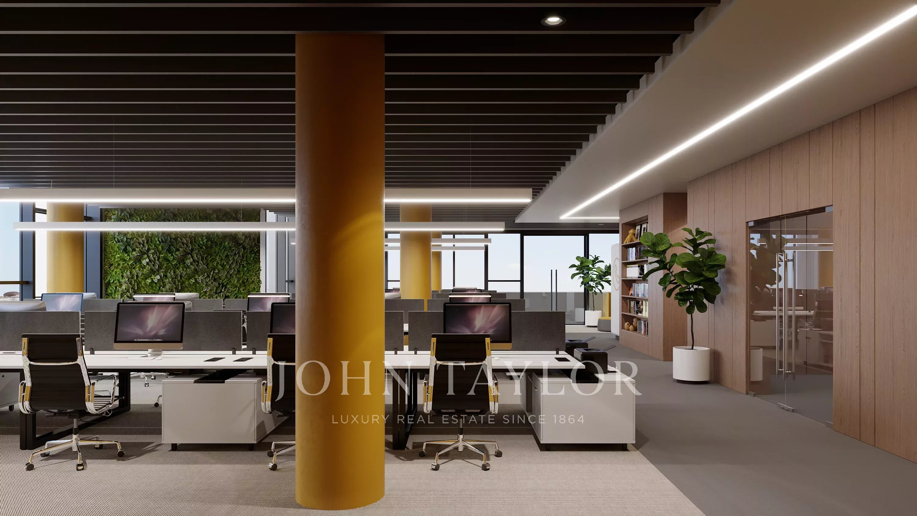 The layout provides a spacious and flexible workspace with large terraces, promoting a comfortable and efficient working environment tailored to modern business needs.