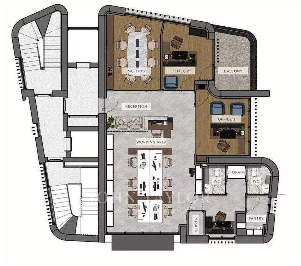 – Private verandas for each office