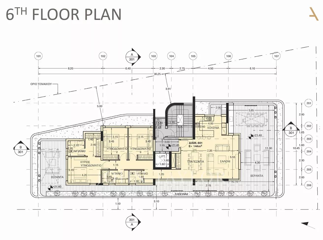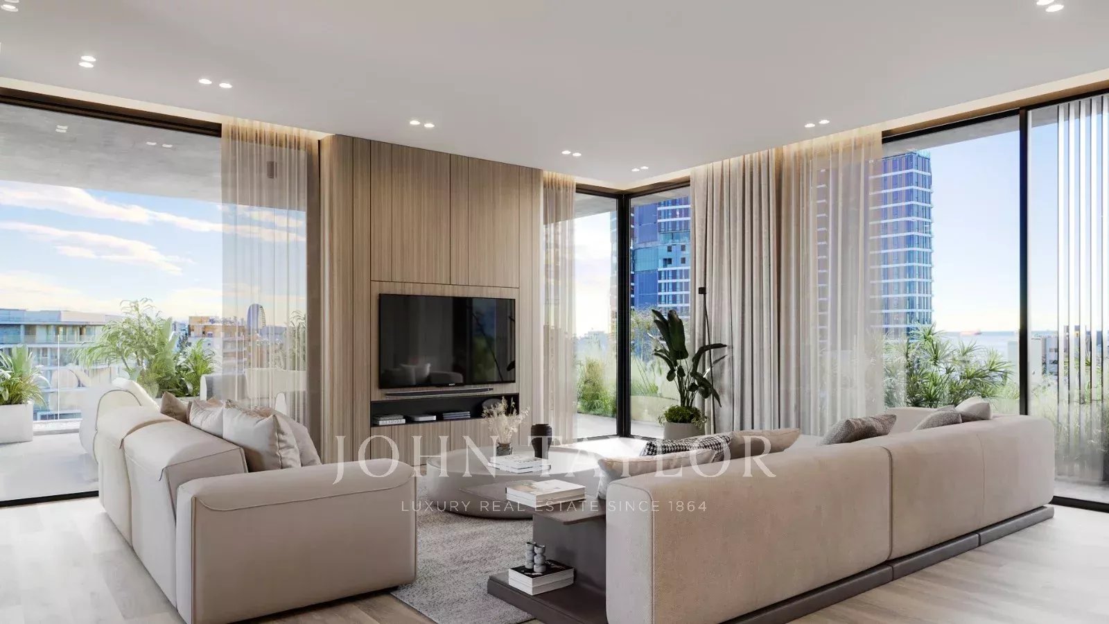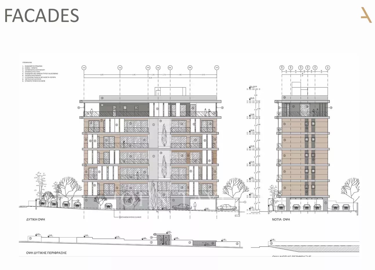 This new residential development is located in the Neapolis area of Limassol, in a prime position immediately adjacent to iconic high-rise towers of Limassol and only 100 meters from the seafront. The building consists of six floors with ten two-bedroom apartments and one three-bedroom penthouse. The total built area is 1,600 m², of which 1,069 m² is livable space.