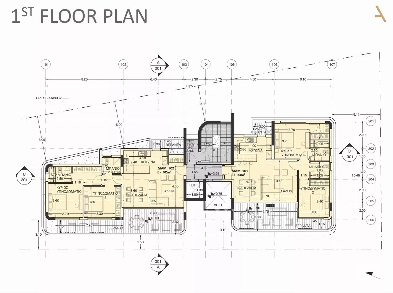 301 - 2 bedrooms, internal area 92 m2, covered veranda - 31 m2