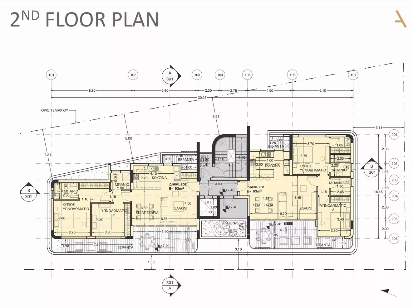 201 - 2 bedrooms, internal area 92 m2, covered veranda - 31 m2
