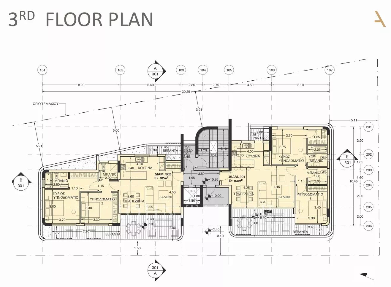 302 - 2 bedrooms, internal area 93 m2, covered veranda - 24 m2