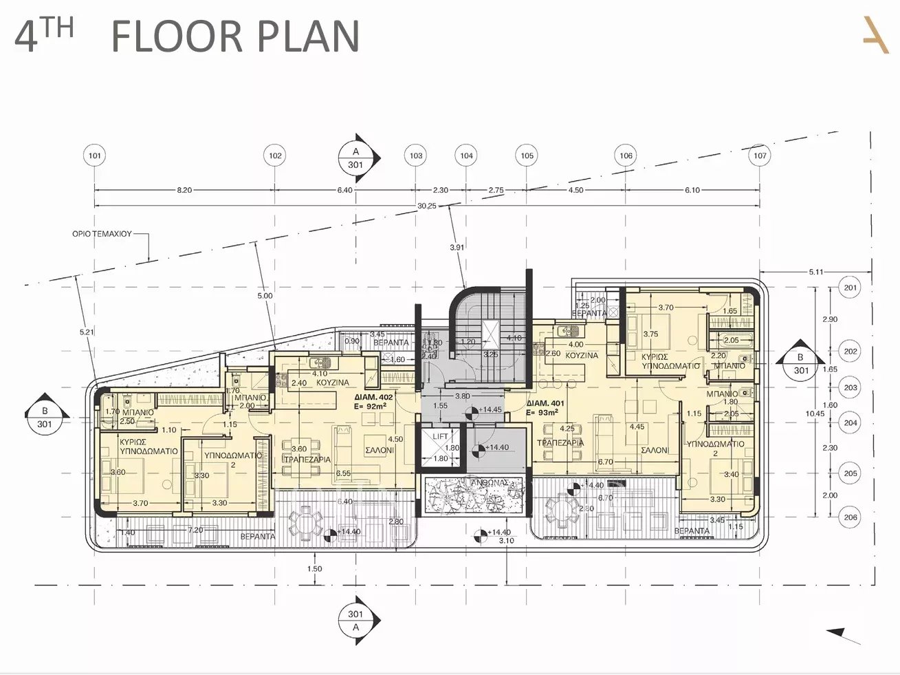 402 - 2 bedrooms, internal area 93 m2, covered veranda - 24 m2