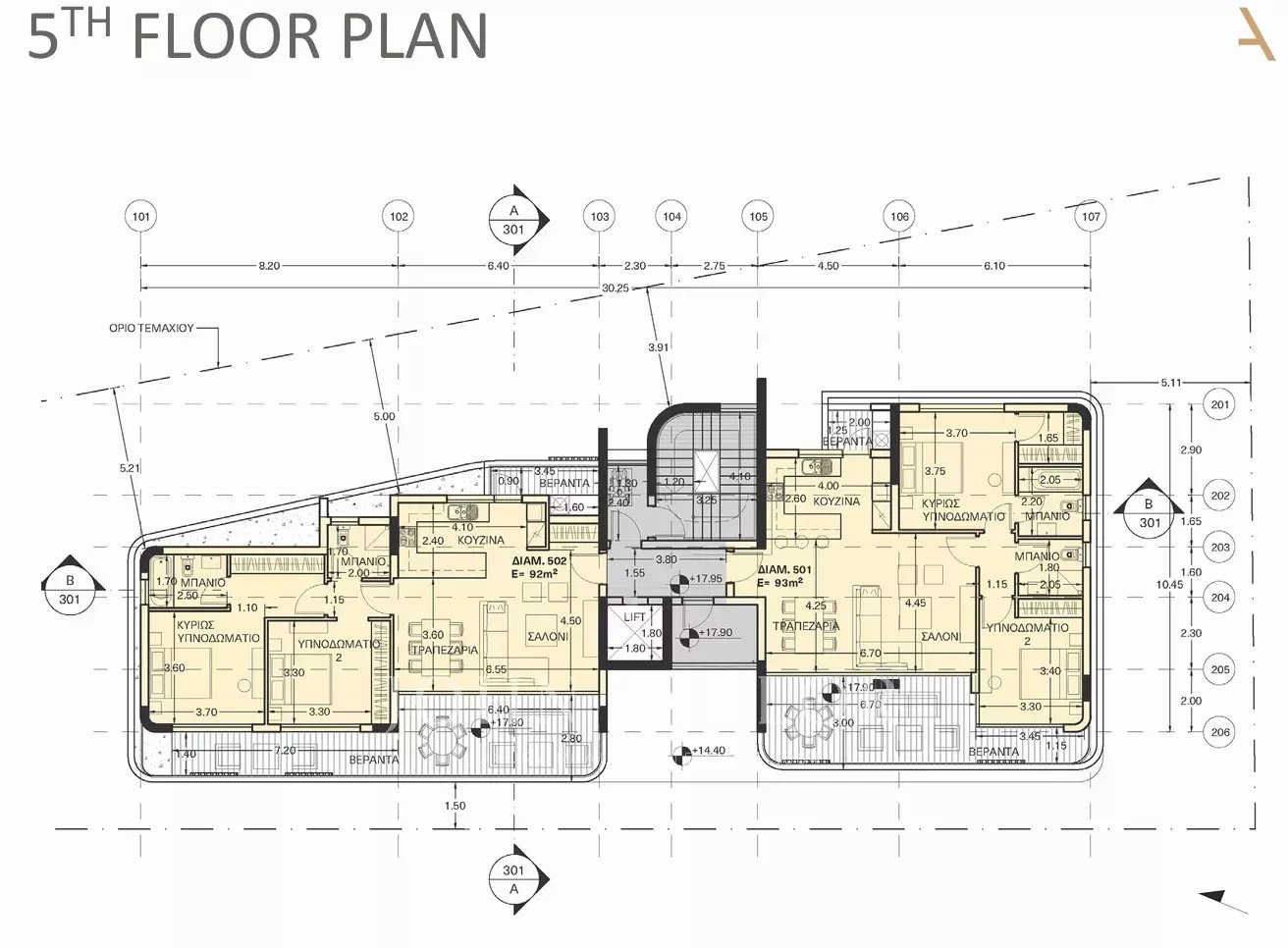 501 - 2 bedrooms, internal area 92 m2, covered veranda - 31 m2