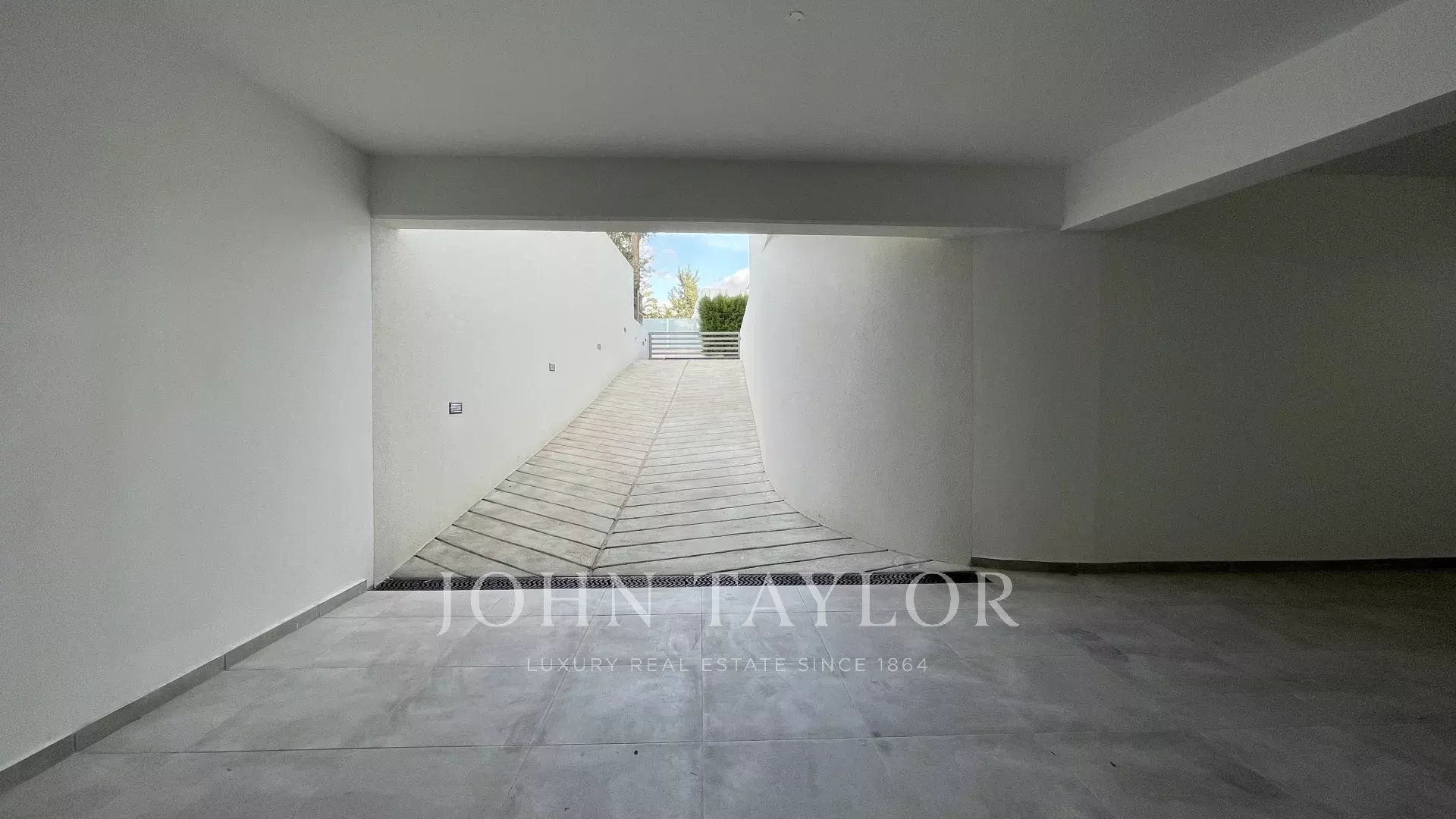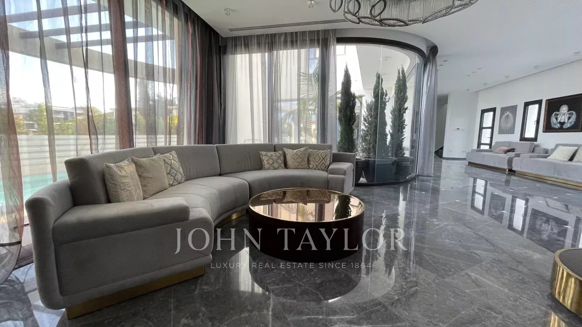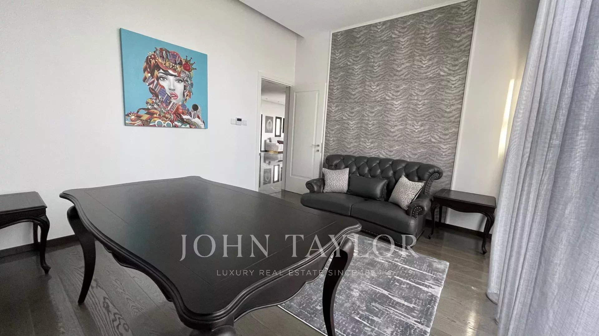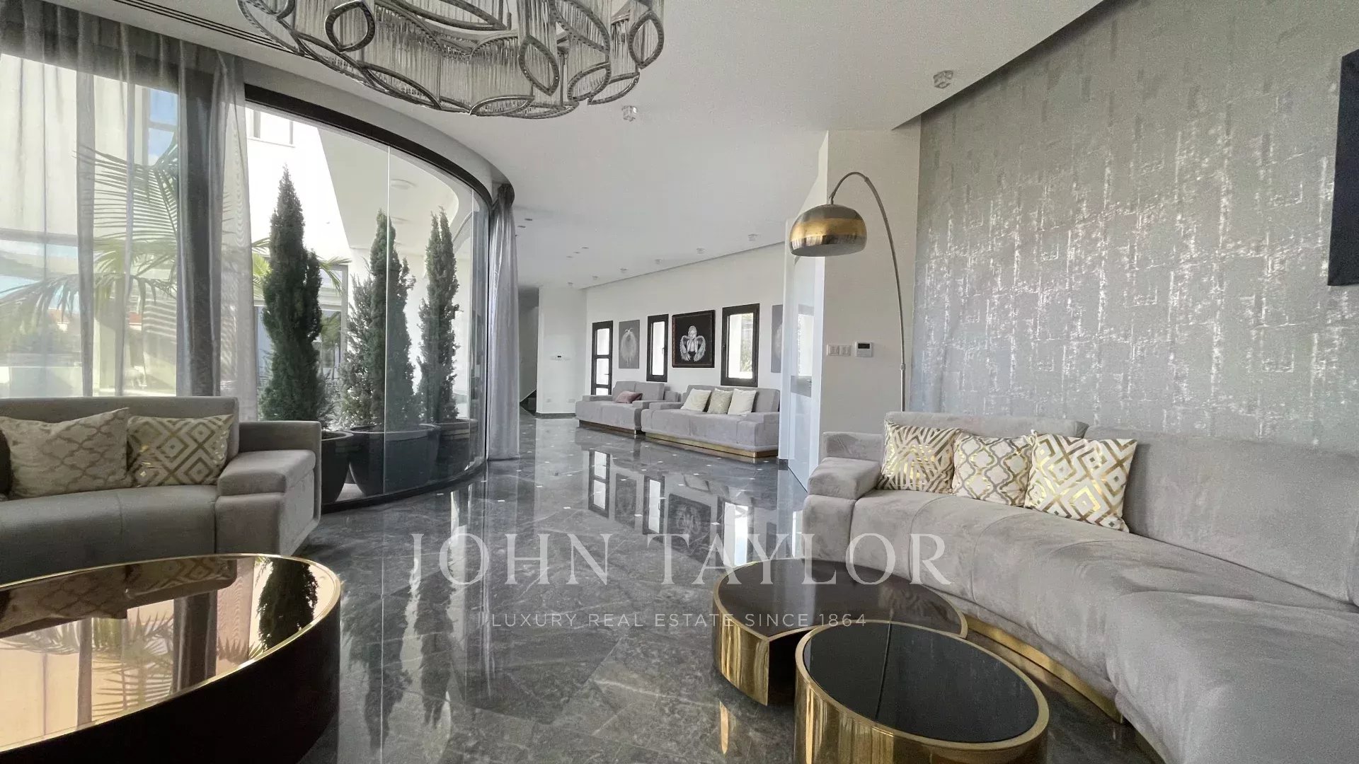 With a covered area of 594.2 m² and 120.2 m² of open terraces, the villa provides generous spaces for living and entertaining. Features include a smart home management system, underfloor water heating, VRV air conditioning, and an Otis elevator serving all levels. An underground parking area accommodates four cars, while a private pool with sun terrace and a spacious roof garden with barbecue area invite relaxation in complete privacy.
