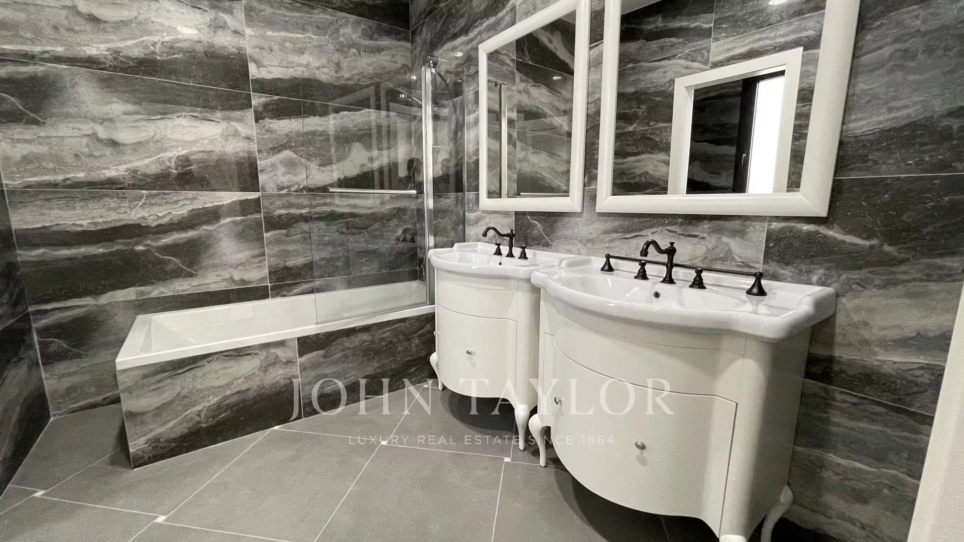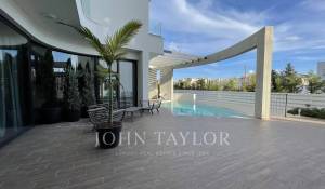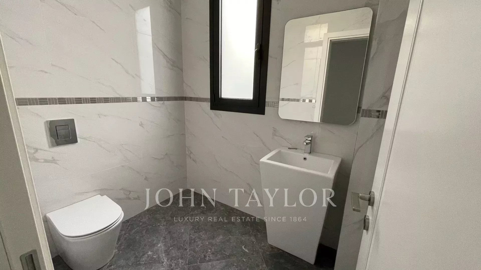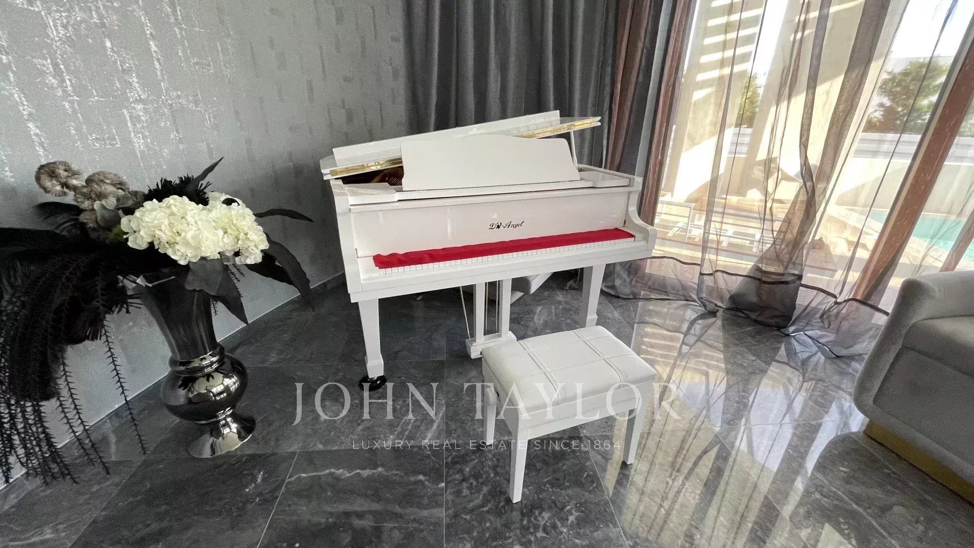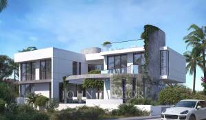 With a covered area of 594.2 m² and 120.2 m² of open terraces, the villa provides generous spaces for living and entertaining. Features include a smart home management system, underfloor water heating, VRV air conditioning, and an Otis elevator serving all levels. An underground parking area accommodates four cars, while a private pool with sun terrace and a spacious roof garden with barbecue area invite relaxation in complete privacy.