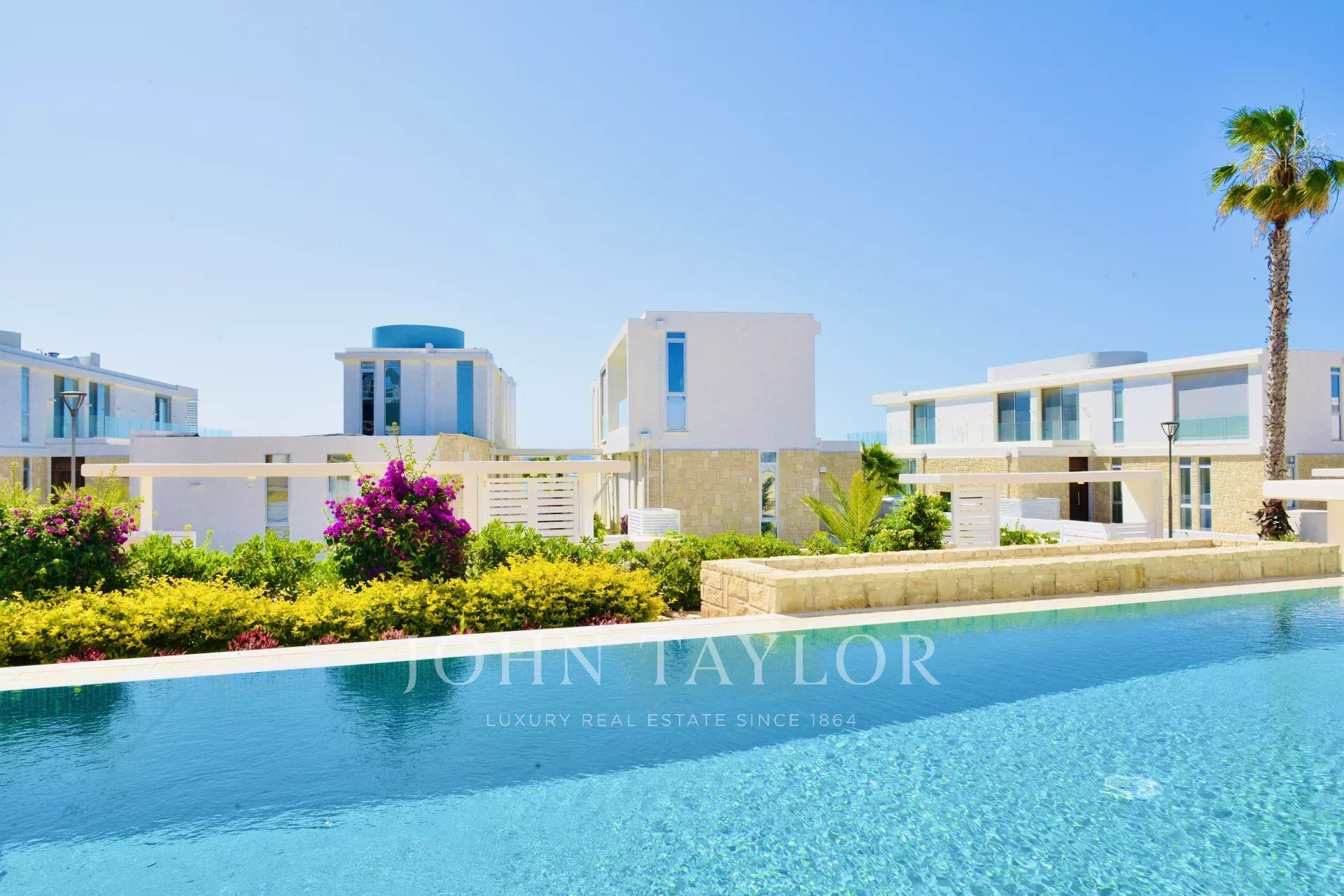 Nestled just moments from the crystalline shores of Coral Bay, this exceptional 5-bedroom residence redefines seafront living in Cyprus. Surrounded by landscaped gardens and located within a prestigious gated enclave, the villa offers total privacy, breathtaking views, and the effortless elegance of modern Mediterranean design.
