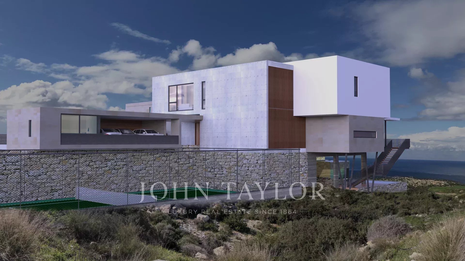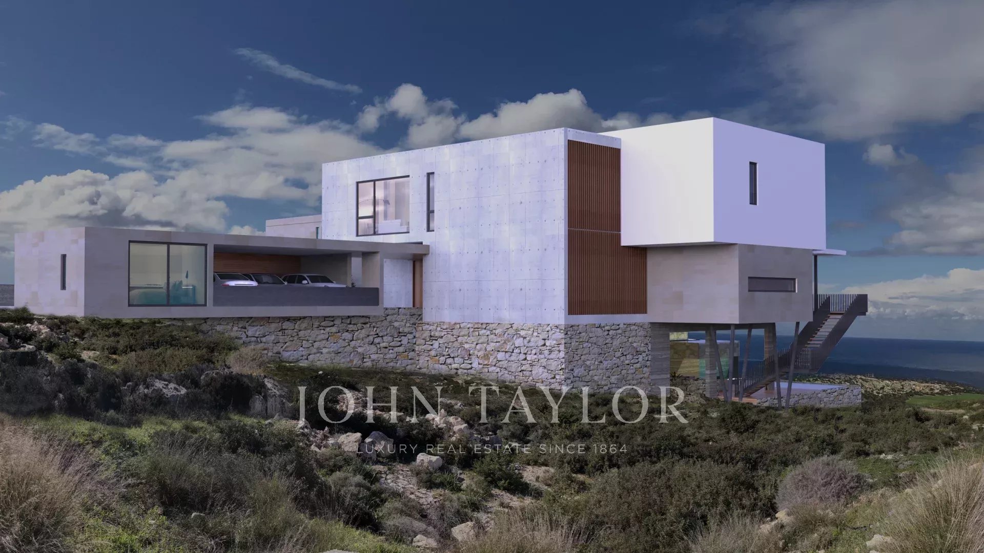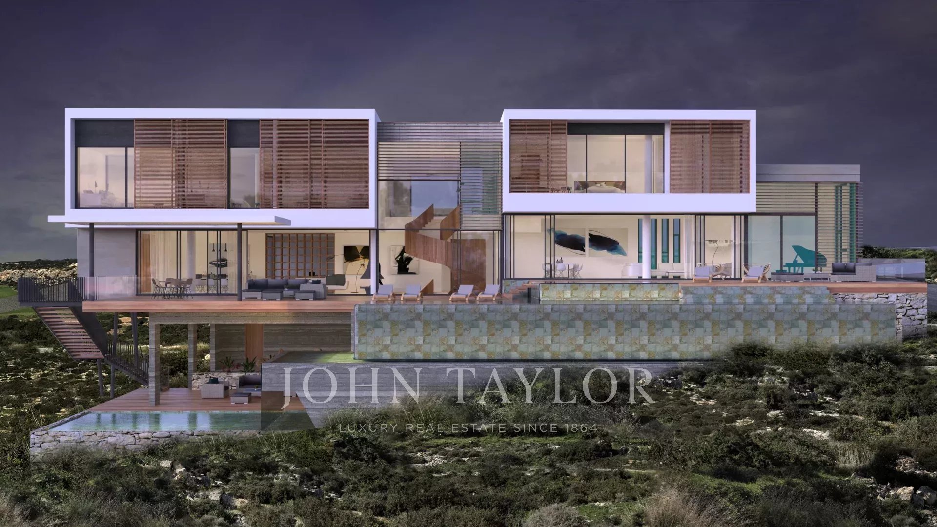 Set on an expansive 2,319 m² plot on the hillsides of Peyia, this extraordinary residence offers panoramic views of the Pafos coastline and represents one of the most prestigious addresses in the area. Combining Mediterranean elegance with uncompromising modern comfort, it has been designed for refined indoor–outdoor living with sun-flooded interiors, vast verandas, landscaped gardens and both a main swimming pool and a decorative pool.