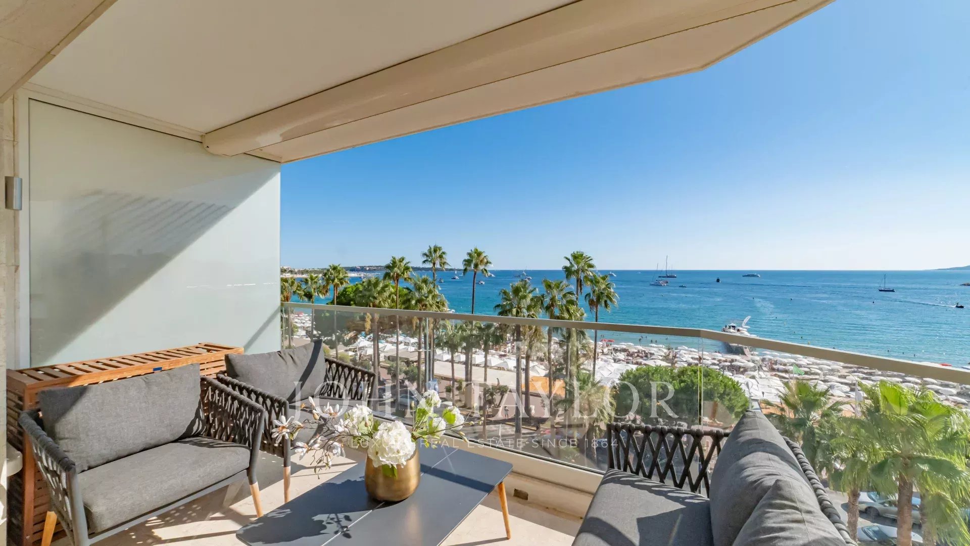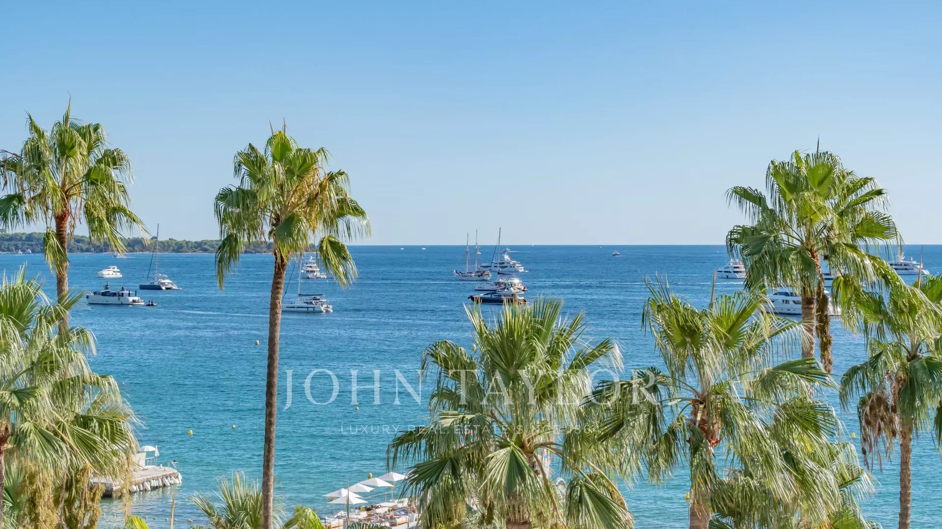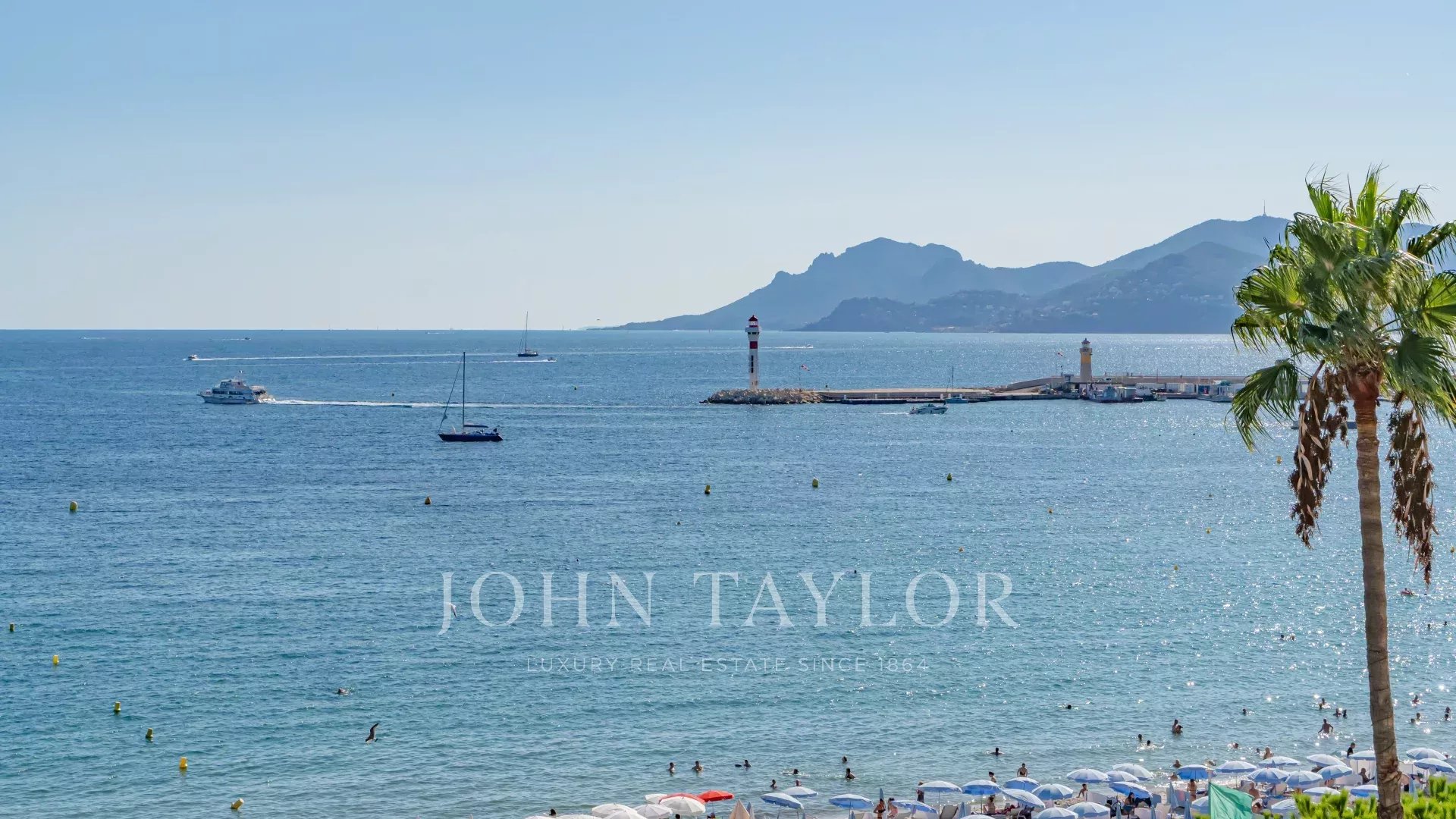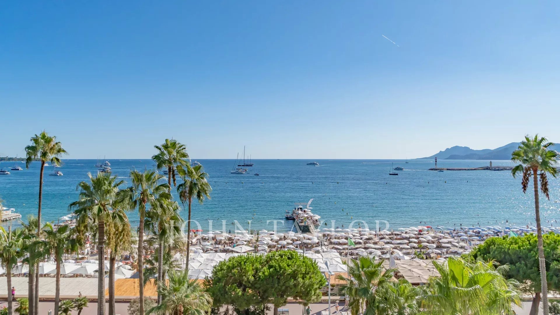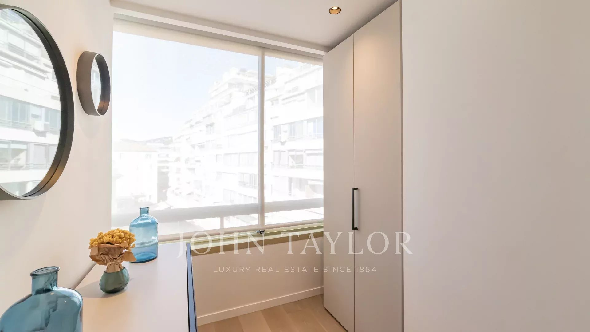 Attractive air-conditioned apartment located in the heart of the Croisette on the 5th floor of a luxury residence, enjoying a magnificent panoramic view of the Bay of Cannes, its beaches, the Palace of Festivals and the Esterel.