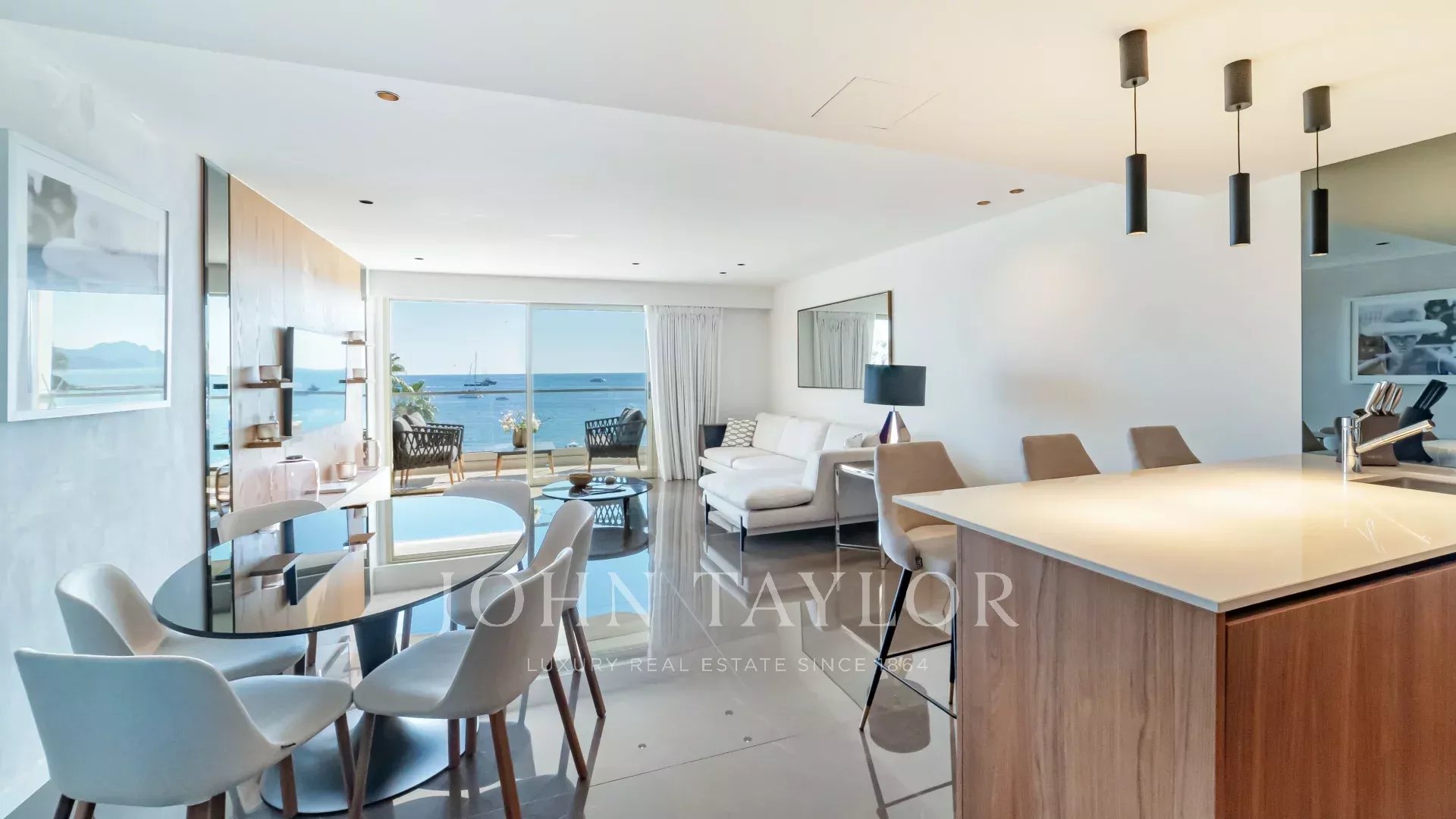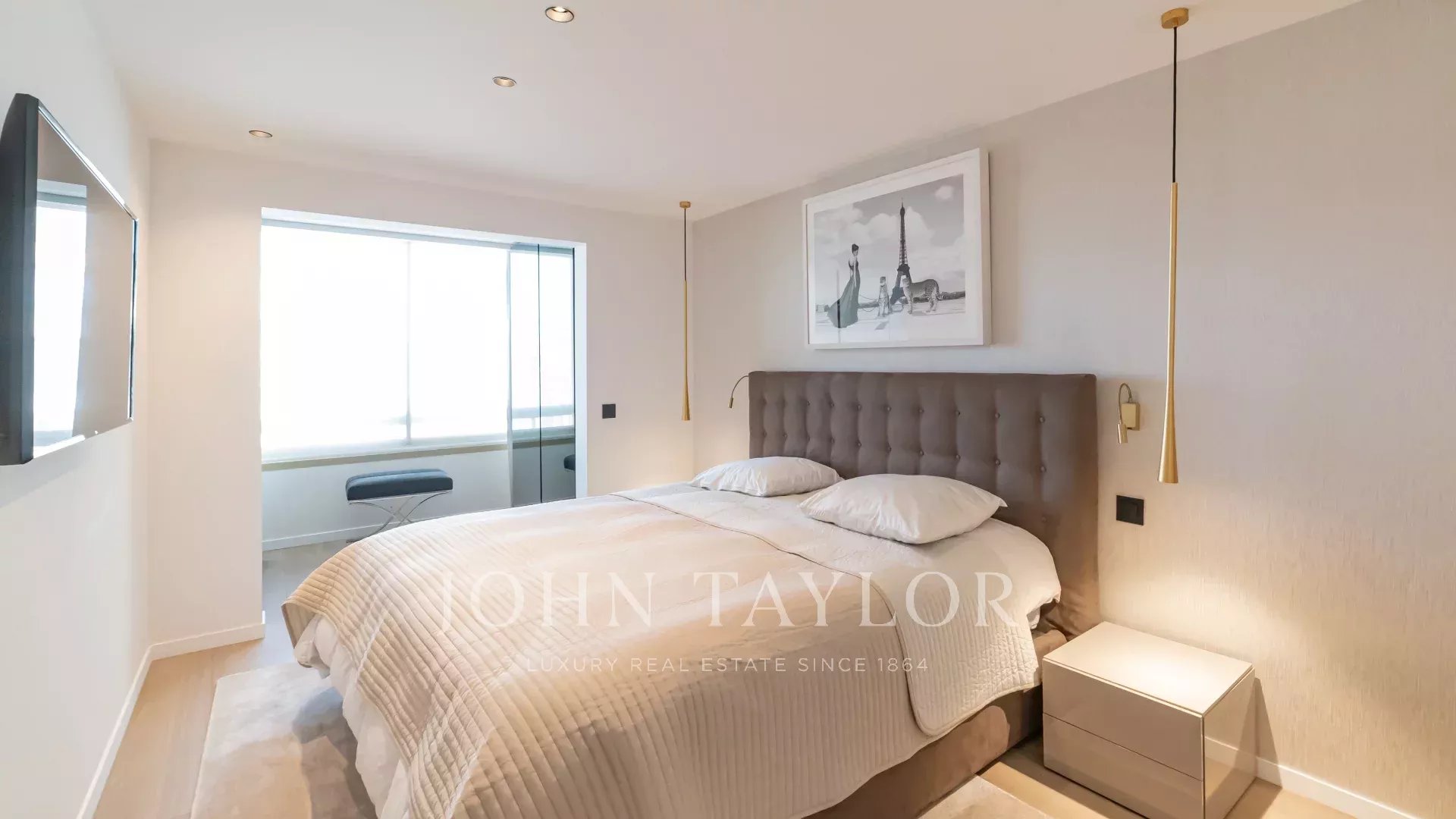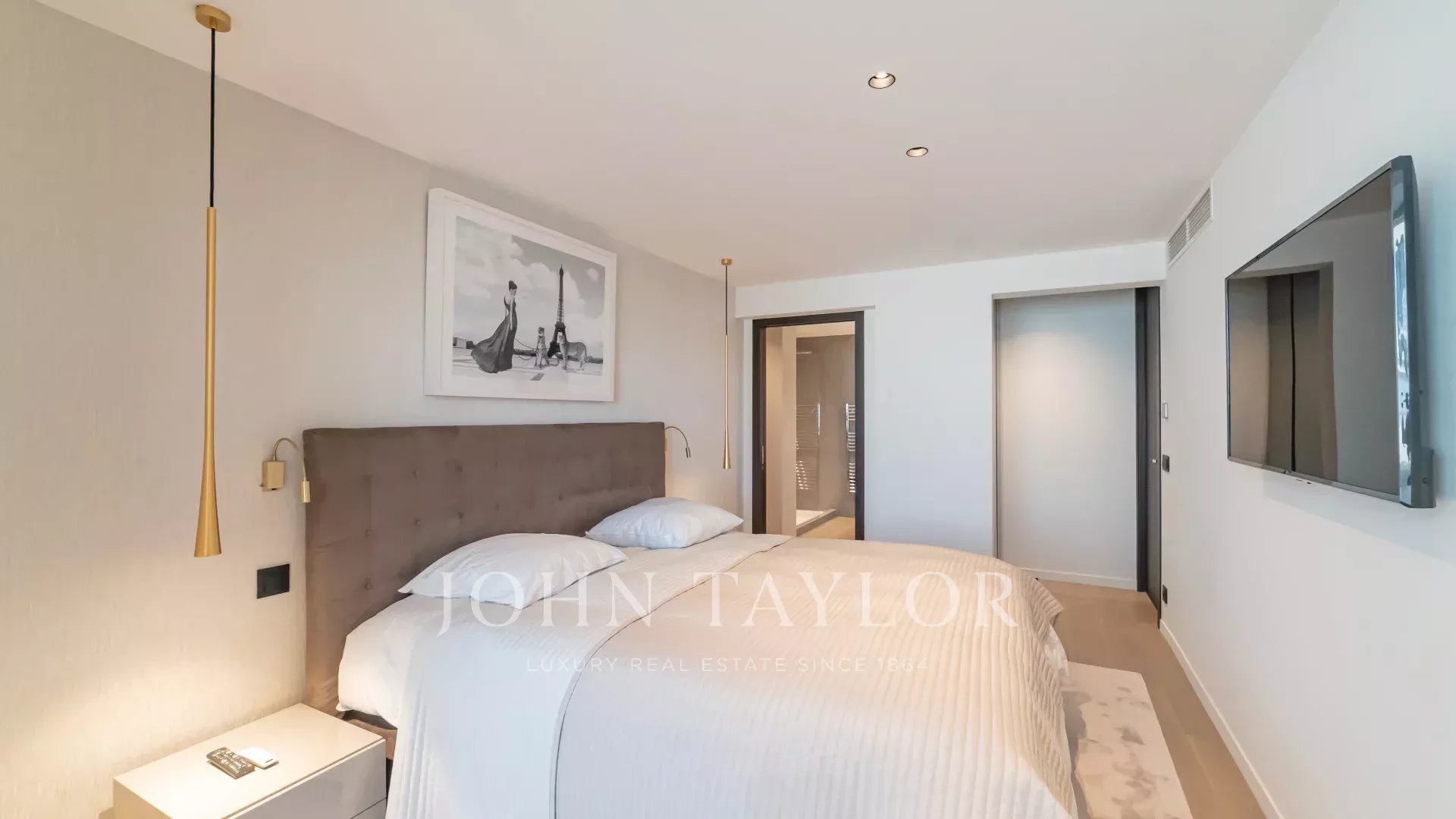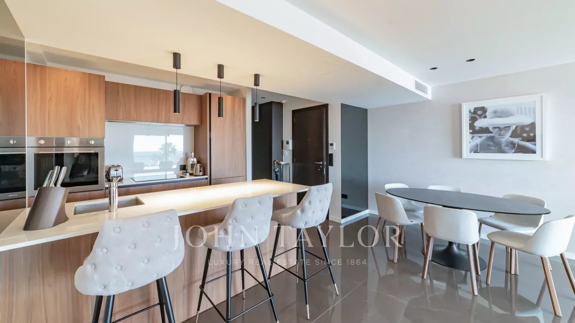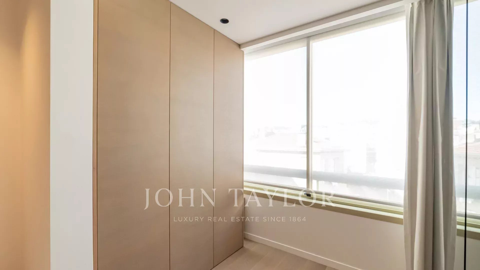 Attractive air-conditioned apartment located in the heart of the Croisette on the 5th floor of a luxury residence, enjoying a magnificent panoramic view of the Bay of Cannes, its beaches, the Palace of Festivals and the Esterel.